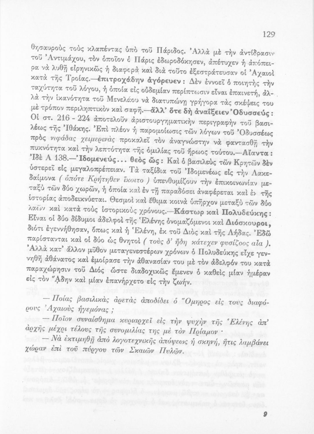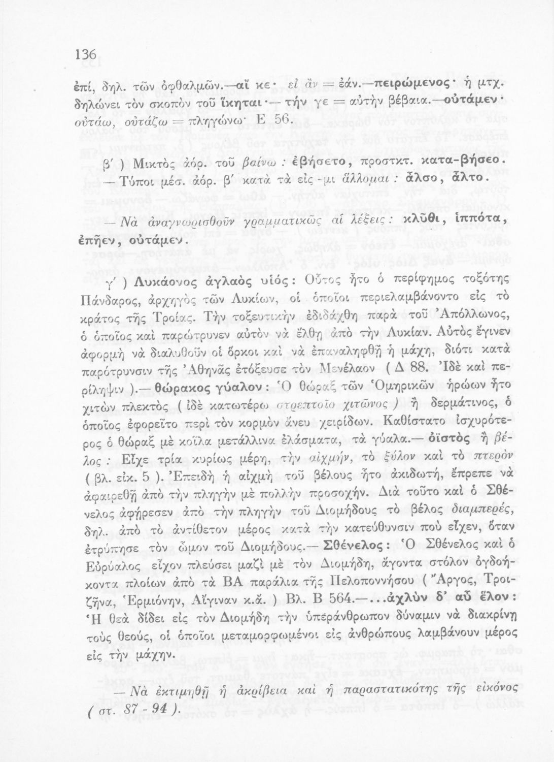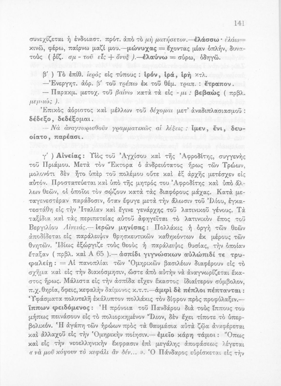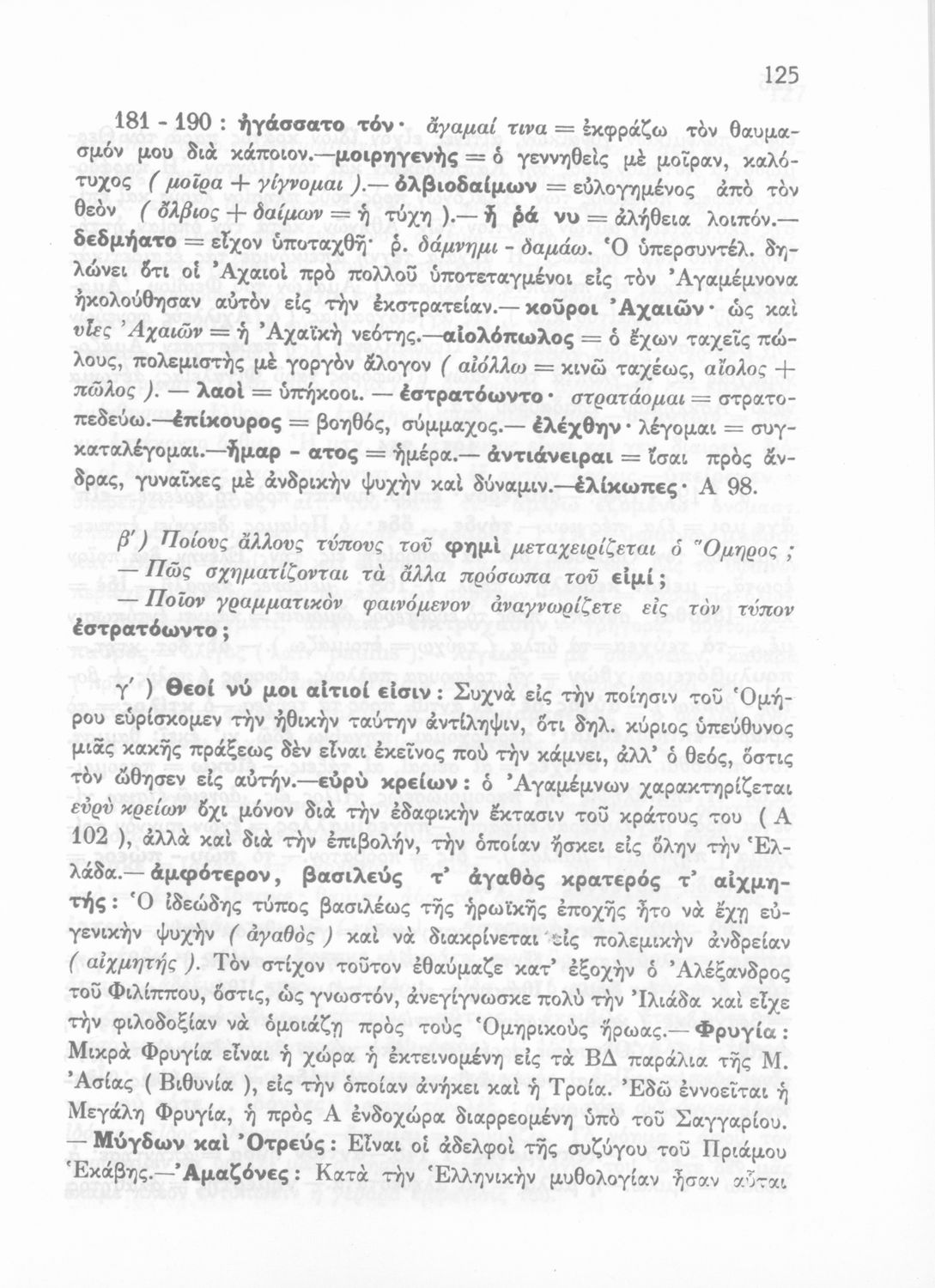 Σχολικό εγχειρίδιο Αρχαίων Ελληνικών. Το βιβλίο περιλαμβάνει εισαγωγικό σημείωμα σχετικά με το περιεχόμενο της Ιλιάδας του Ομήρου και την εποχή στην οποία αναφέρεται ο μύθος. Σε πρωτότυπο κείμενο περιλαμβάνονται αποσπάσματα από τις Ραψωδίες της Ιλιάδας Α, Γ, Ε, Ζ, Ι, Ω. Περιλαμβάνονται ερμηνευτικές σημειώσεις (σημασιολογικές, γραμματικές, πραγματολογικές) και παράρτημα εικόνων και χαρτών.