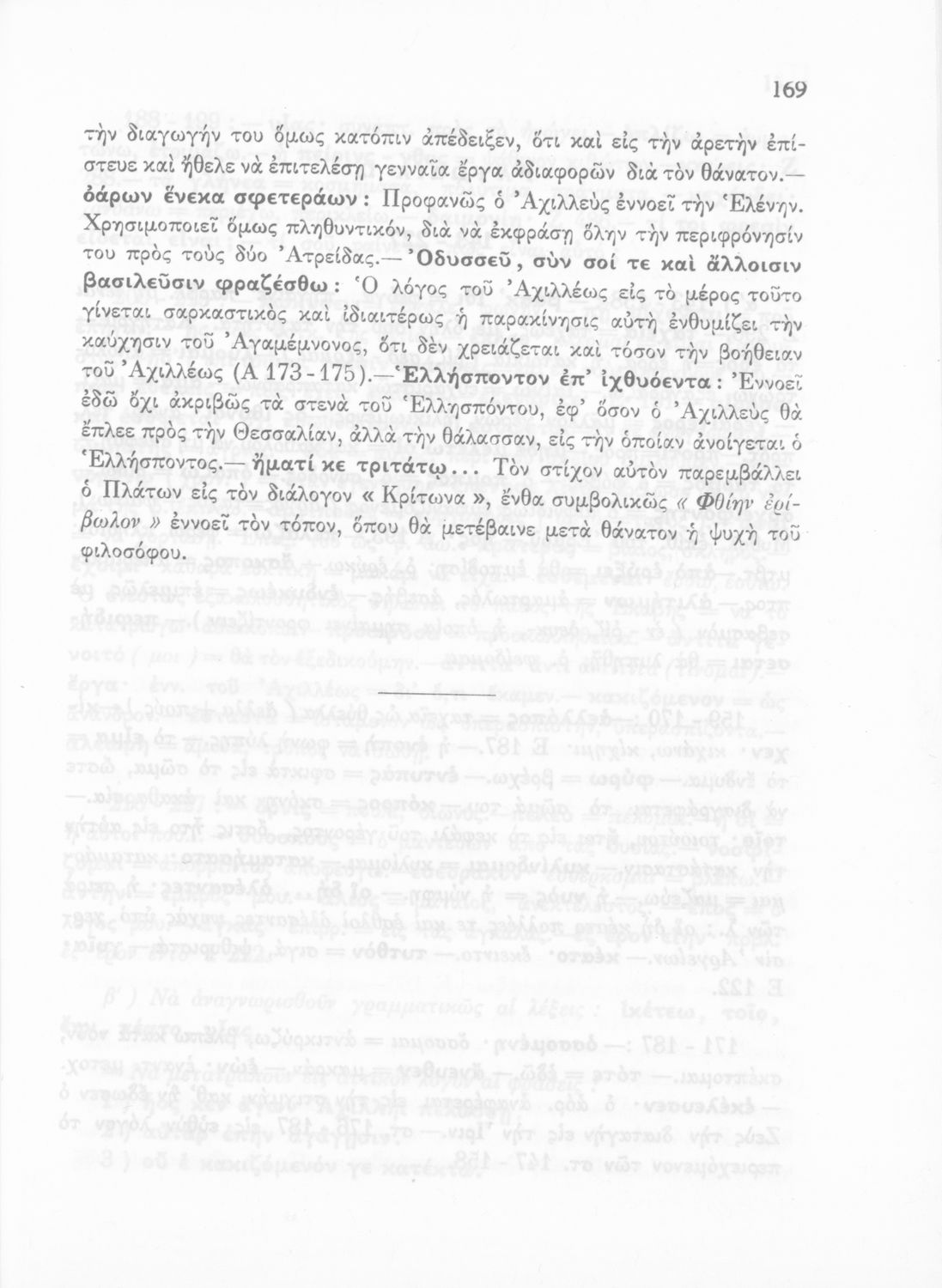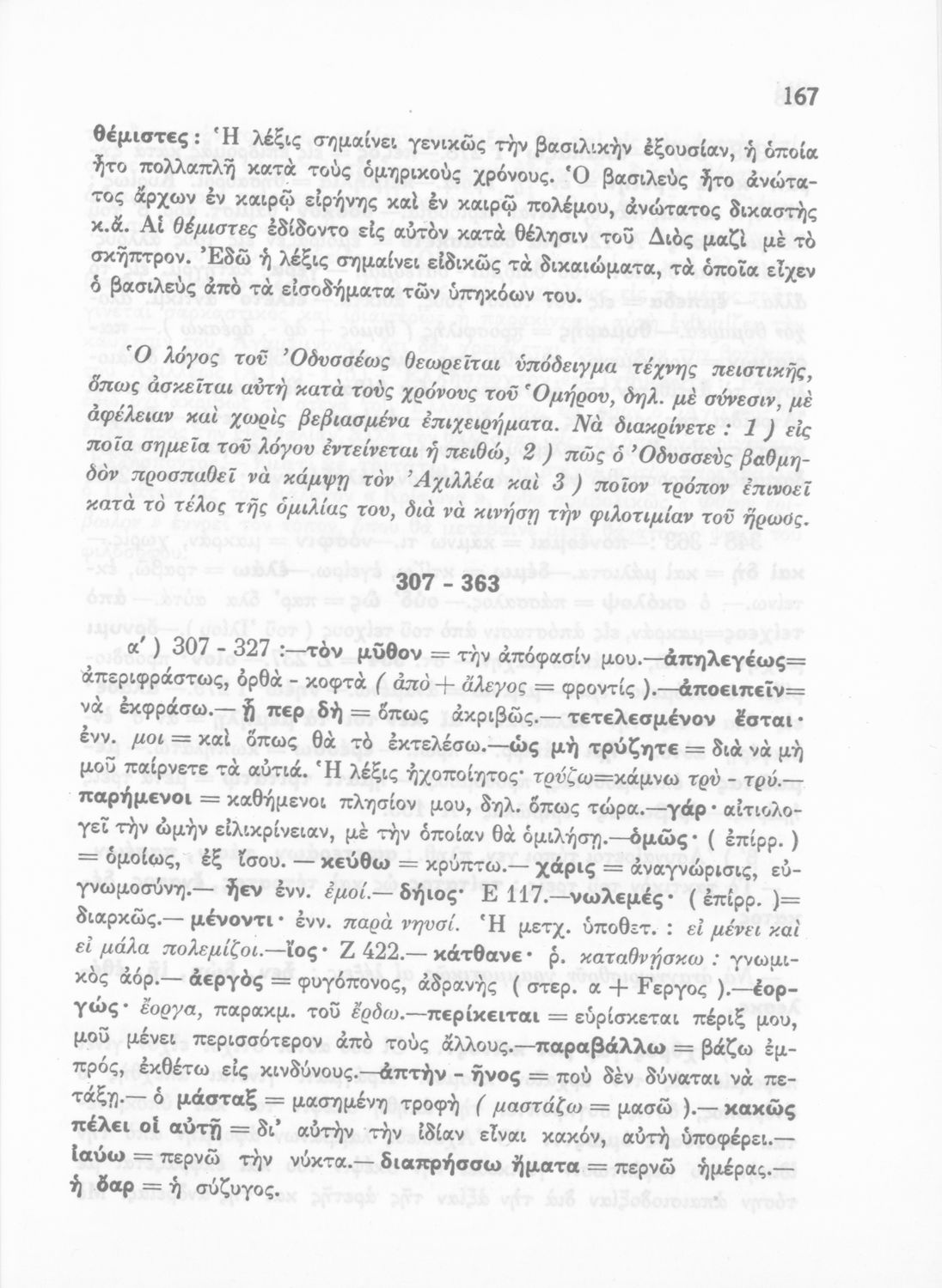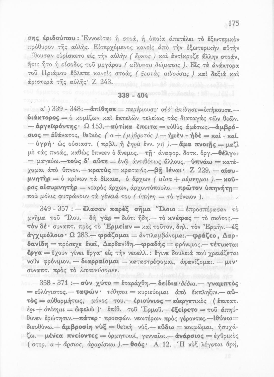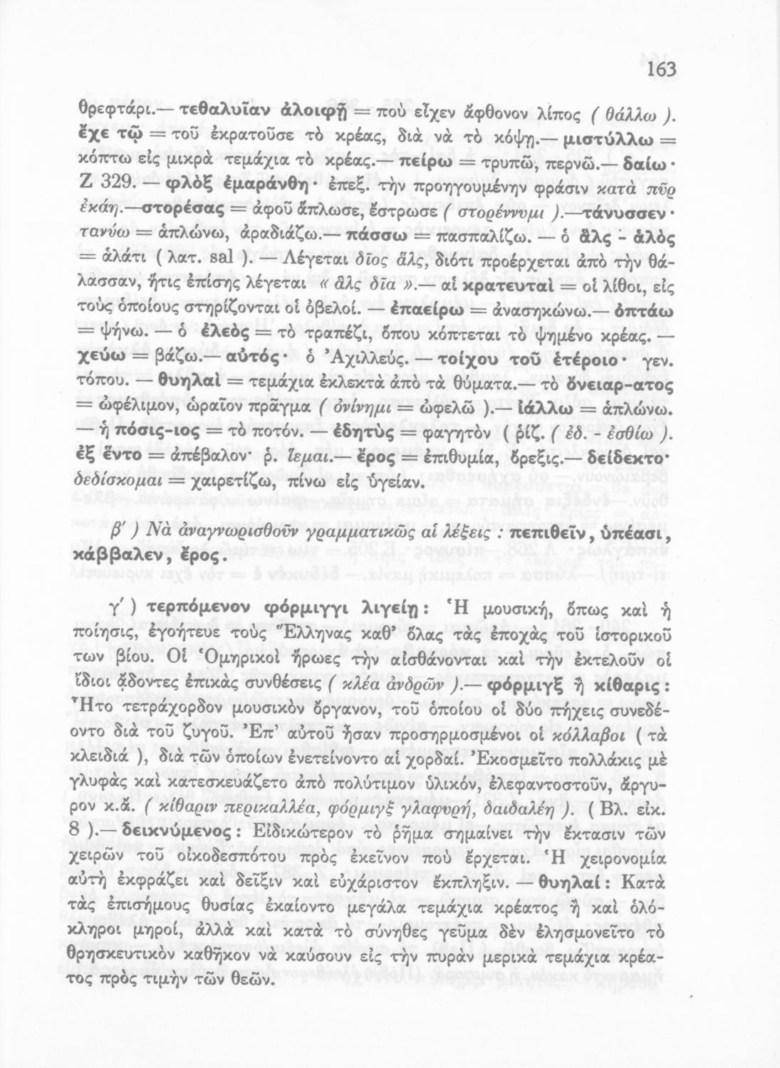 Μαθητικό βοήθημα του Ελληνικού Σχολείου, των Παρθεναγωγείων και του Γυμνασίου για το μάθημα των Αρχαίων Ελληνικών. Περιέχει τις ραψωδίες Ο, Π, Ρ, Σ, Τ, Χ, ψ, Ω από το πρωτότυπο με σχόλια και ερμηνευτικές ...