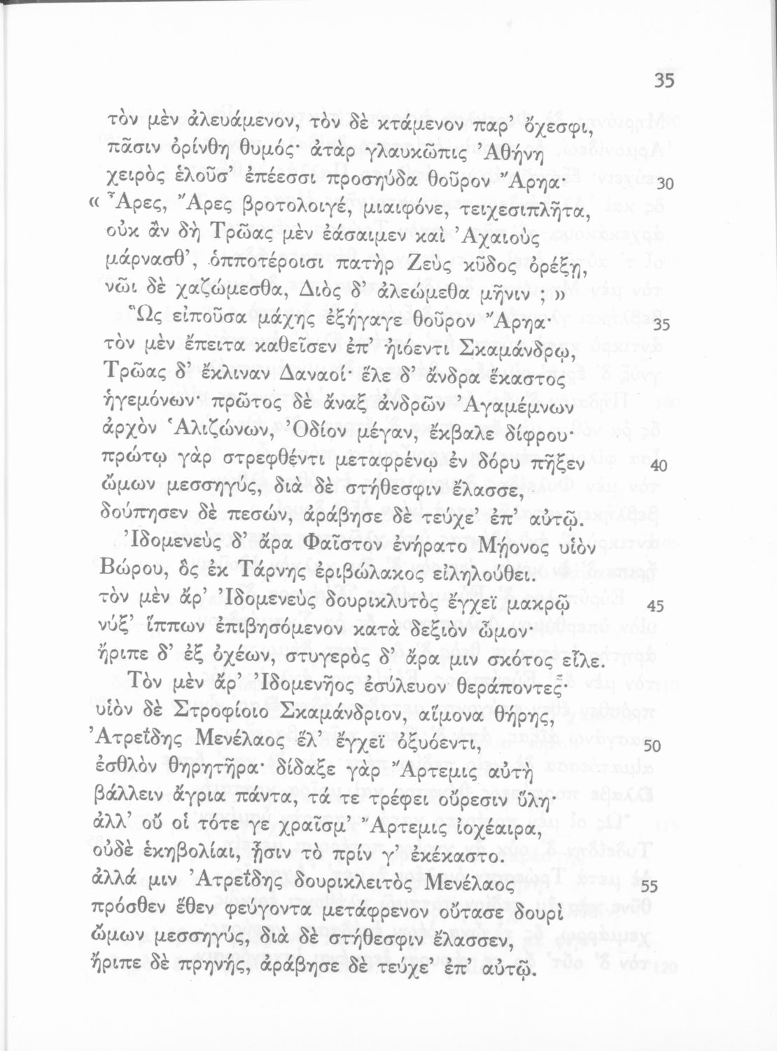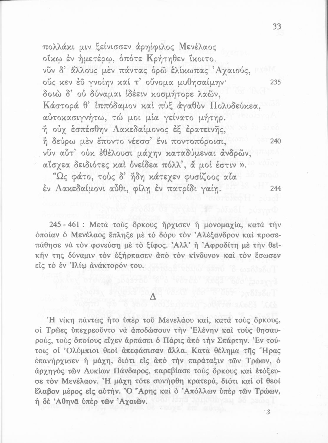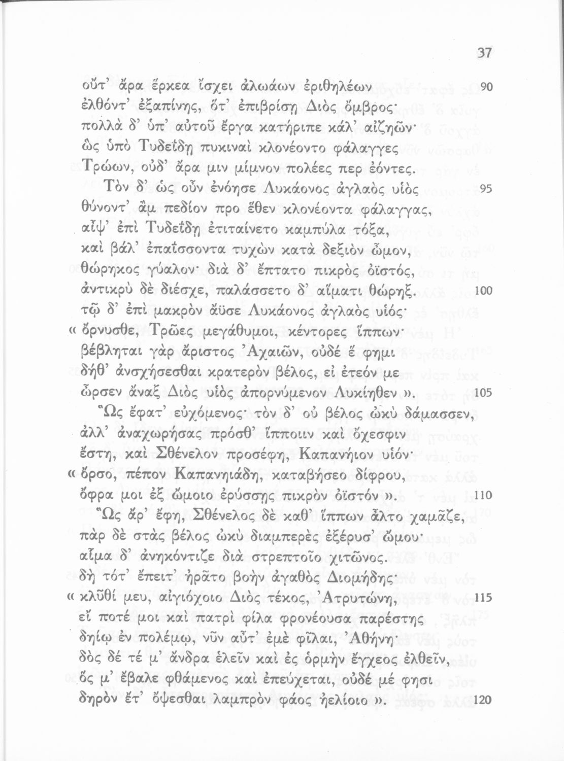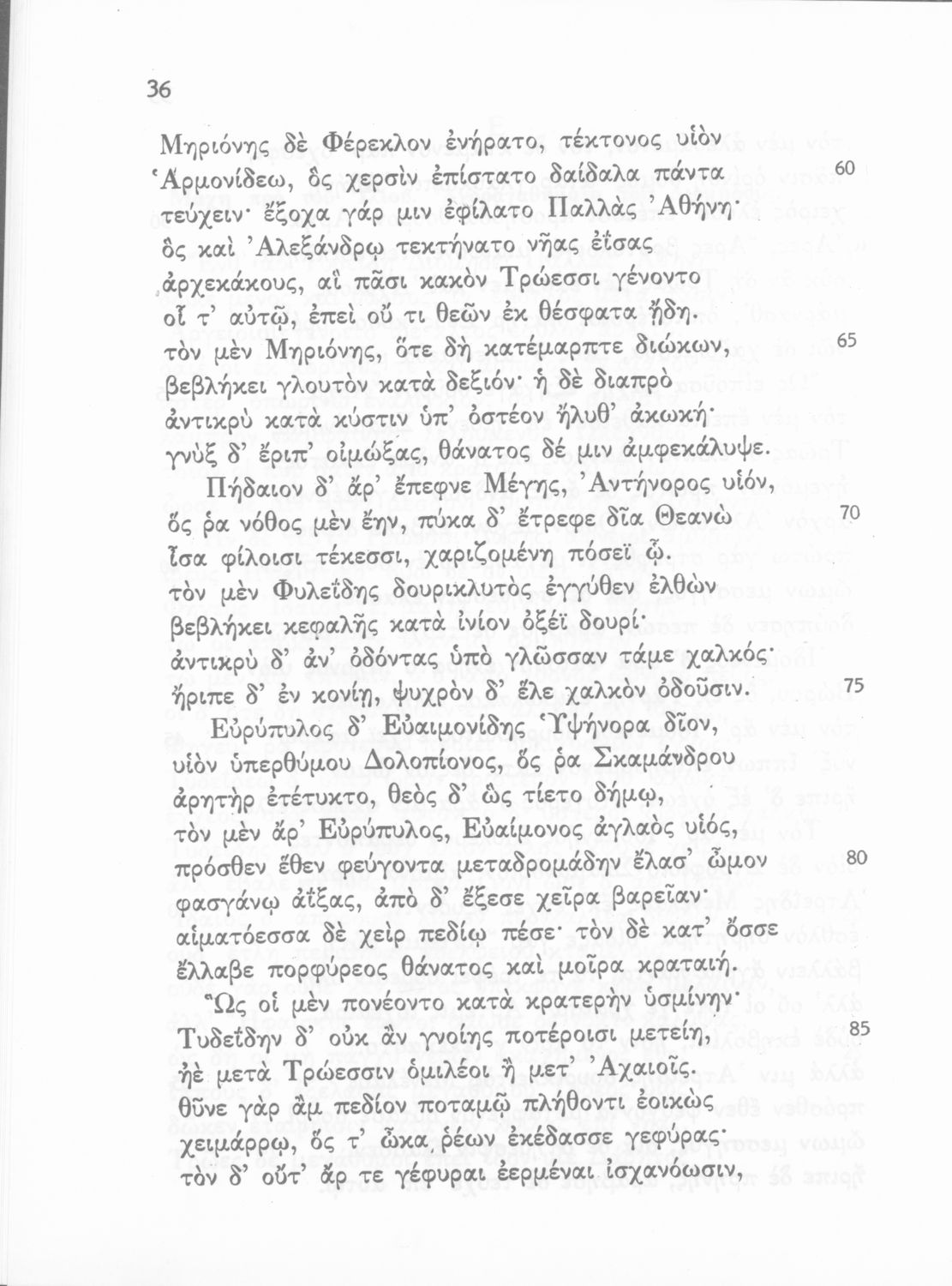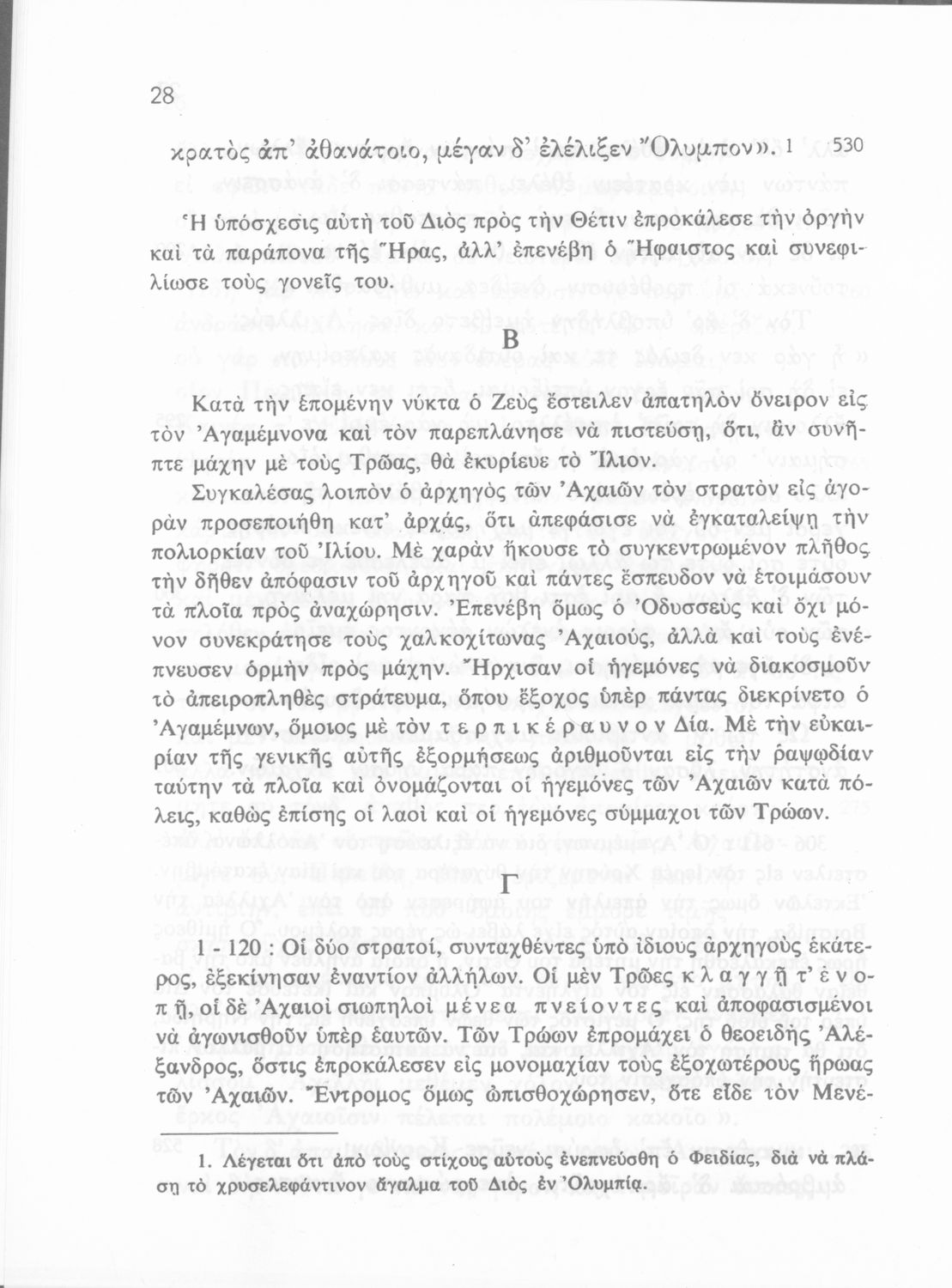 Σχολικό εγχειρίδιο Αρχαίων Ελληνικών. Το βιβλίο περιλαμβάνει εισαγωγικό σημείωμα σχετικά με το περιεχόμενο της Ιλιάδας του Ομήρου και την εποχή στην οποία αναφέρεται ο μύθος. Σε πρωτότυπο κείμενο περιλαμβάνονται αποσπάσματα από τις Ραψωδίες της Ιλιάδας Α, Γ, Ε, Ζ, Ι, Ω. Περιλαμβάνονται ερμηνευτικές σημειώσεις (σημασιολογικές, γραμματικές, πραγματολογικές) και παράρτημα εικόνων και χαρτών.