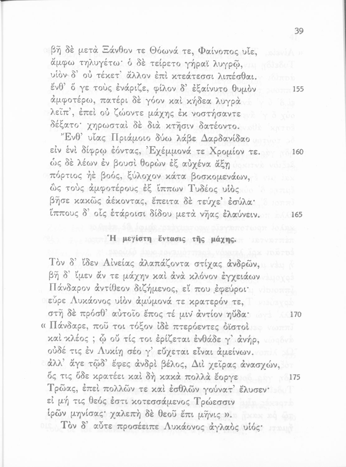 Σχολικό εγχειρίδιο Ε' Γυμνασίου για το μάθημα των Αρχαίων Ελληνικών. Περιλαμβάνει αποσπάσματα από ραψωδίες της Ιλιάδας, ερμηνευτικά και πραγματολογικά σχόλια και λεξιλογικές παρατηρήσεις.