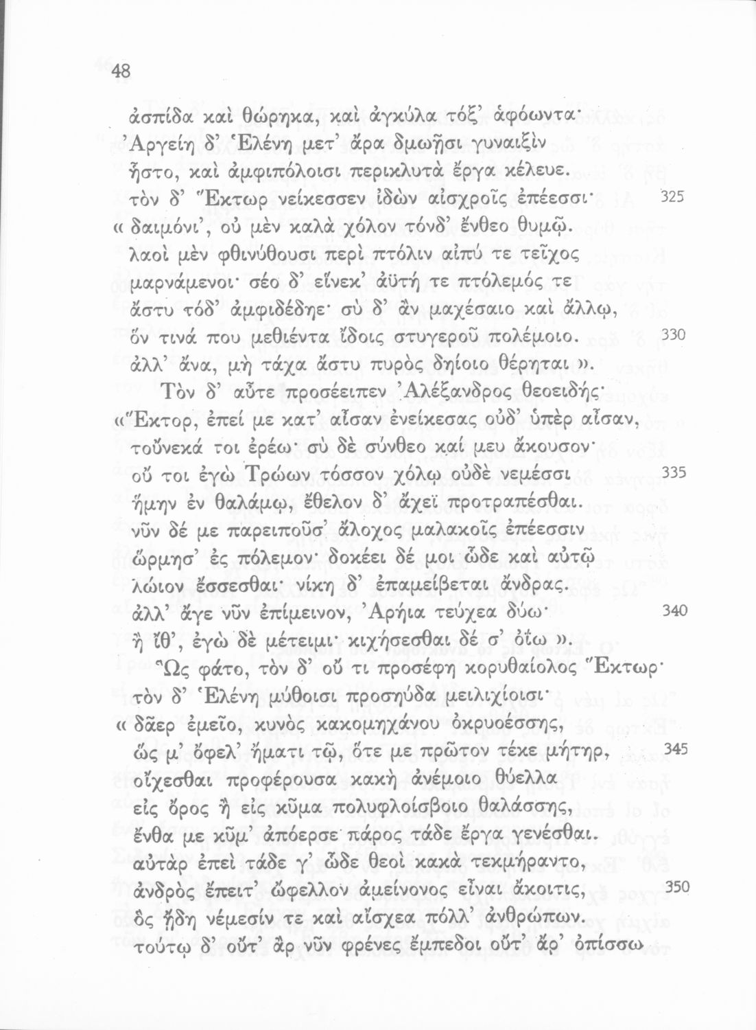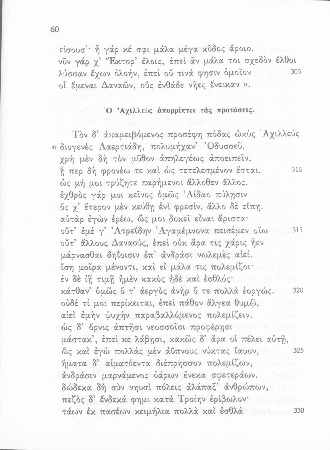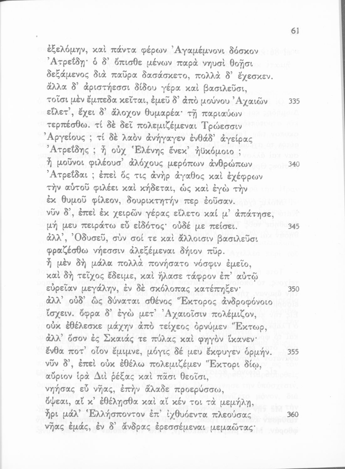 Σχολικό εγχειρίδιο Αρχαίων Ελληνικών. Το βιβλίο περιλαμβάνει εισαγωγικό σημείωμα σχετικά με το περιεχόμενο της Ιλιάδας του Ομήρου και την εποχή στην οποία αναφέρεται ο μύθος. Σε πρωτότυπο κείμενο περιλαμβάνονται αποσπάσματα από τις Ραψωδίες της Ιλιάδας Α, Γ, Ε, Ζ, Ι, Ω. Περιλαμβάνονται ερμηνευτικές σημειώσεις (σημασιολογικές, γραμματικές, πραγματολογικές) και παράρτημα εικόνων και χαρτών.