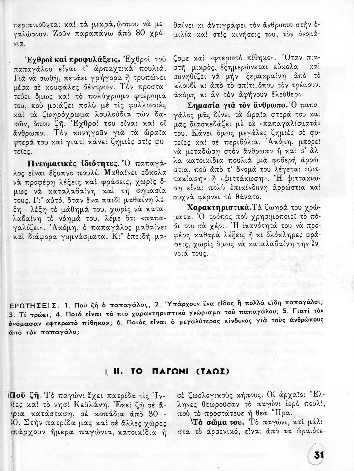 Αναγνωστικό Ε΄ Δημοτικού που αποτελείται από πεζά γραμμένα σε καθαρεύουσα και ποιήματα σε δημοτική εμπνευσμένα από την οικογένεια, τη θρησκεία, την μυθολογία και ιστορία, την υγιεινή, την πατρίδα, την ελληνική