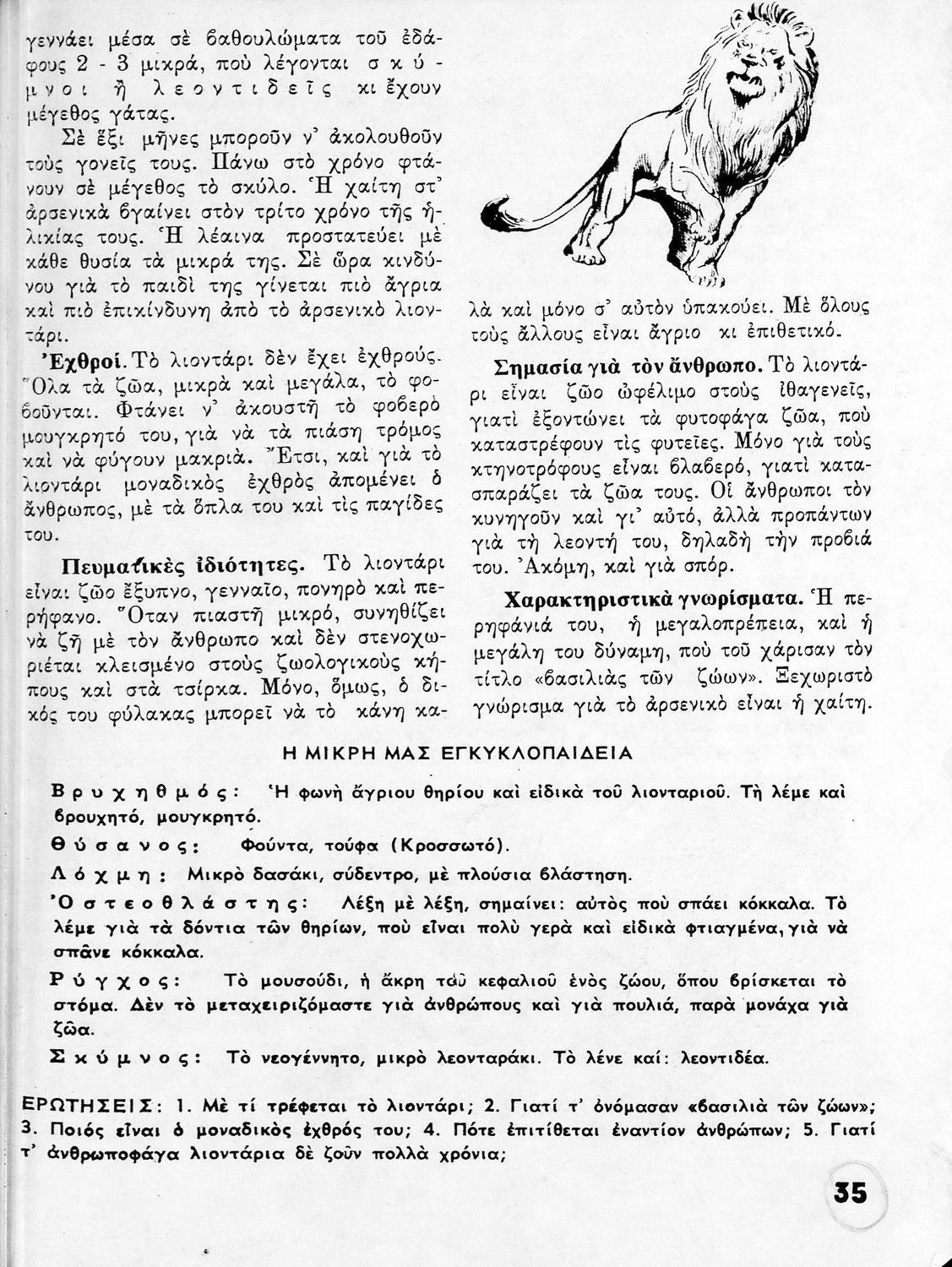 Μαθητικό βοήθημα της Ε΄ και ΣΤ΄ Δημοτικού για το μάθημα της Φυσικής Ιστορίας στο Δημοτικό. Περιέχει πληροφορίες για τη φυτολογία και τη ζωολογία. Το βιβλίο έχει εικόνες, οι οποίες διευκολύνουν τη διδασκαλία. Ο