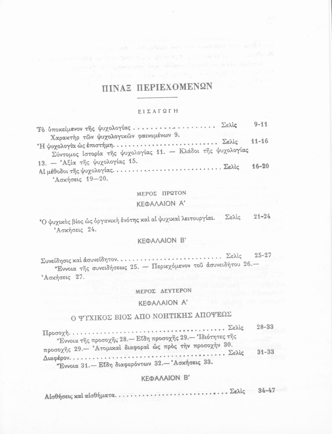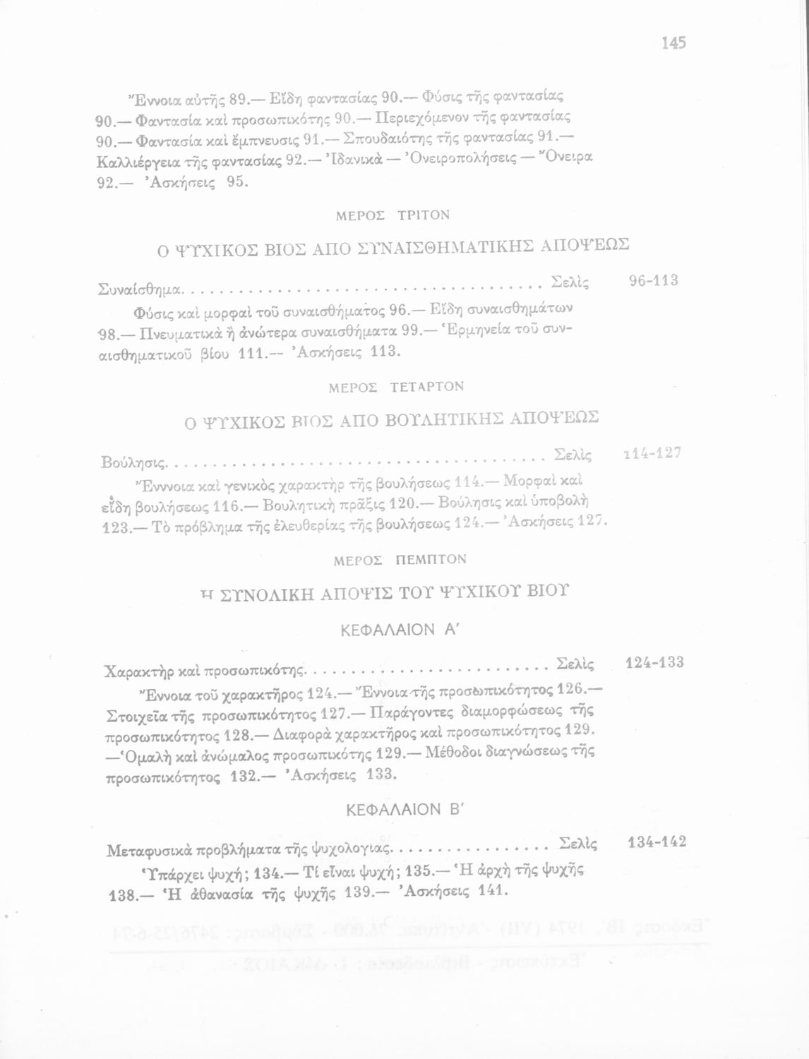 Σχολικό εγχειρίδιο Ψυχολογίας για την Ε΄ Γυμνασίου που περιλαμβάνει θεωρία και ασκήσεις και εξετάζει τον ψυχικό βίο από νοητική, συναισθηματική και βουλητική άποψη.