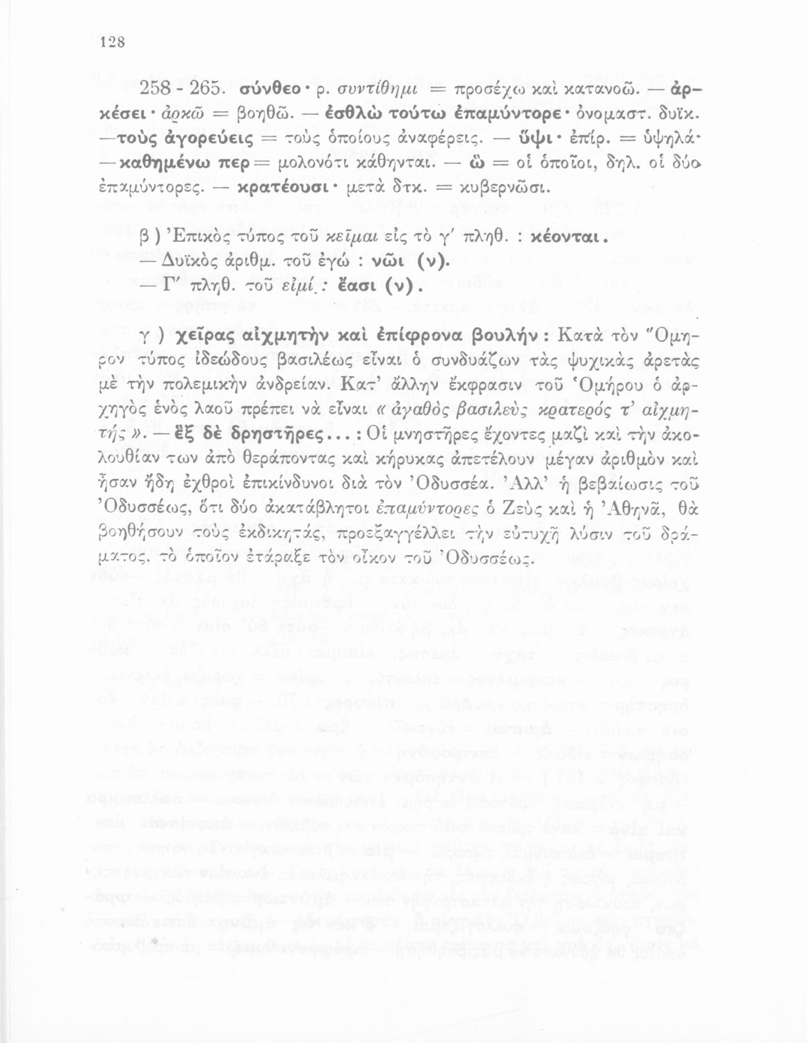 Σχολικό εγχειρίδιο Αρχαίων Ελληνικών Γυμνασίου που περιλαμβάνει μετάφραση της Οδύσσειας και λεξιλόγιο.
