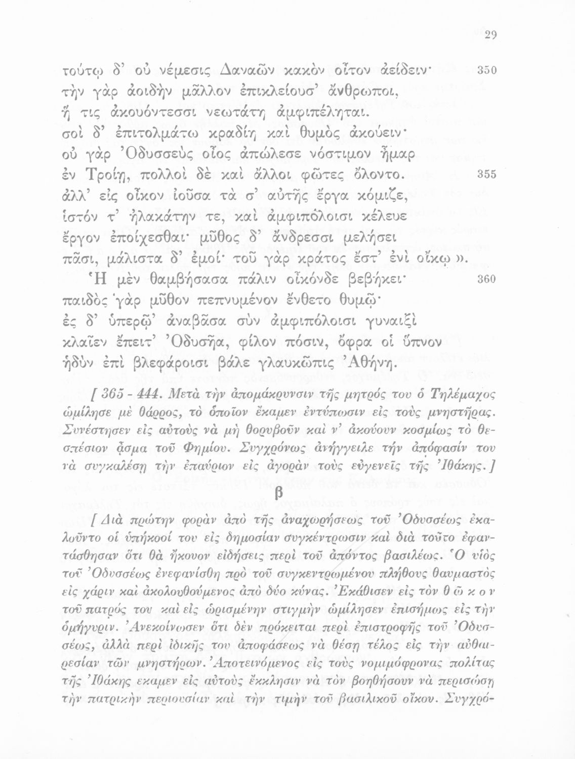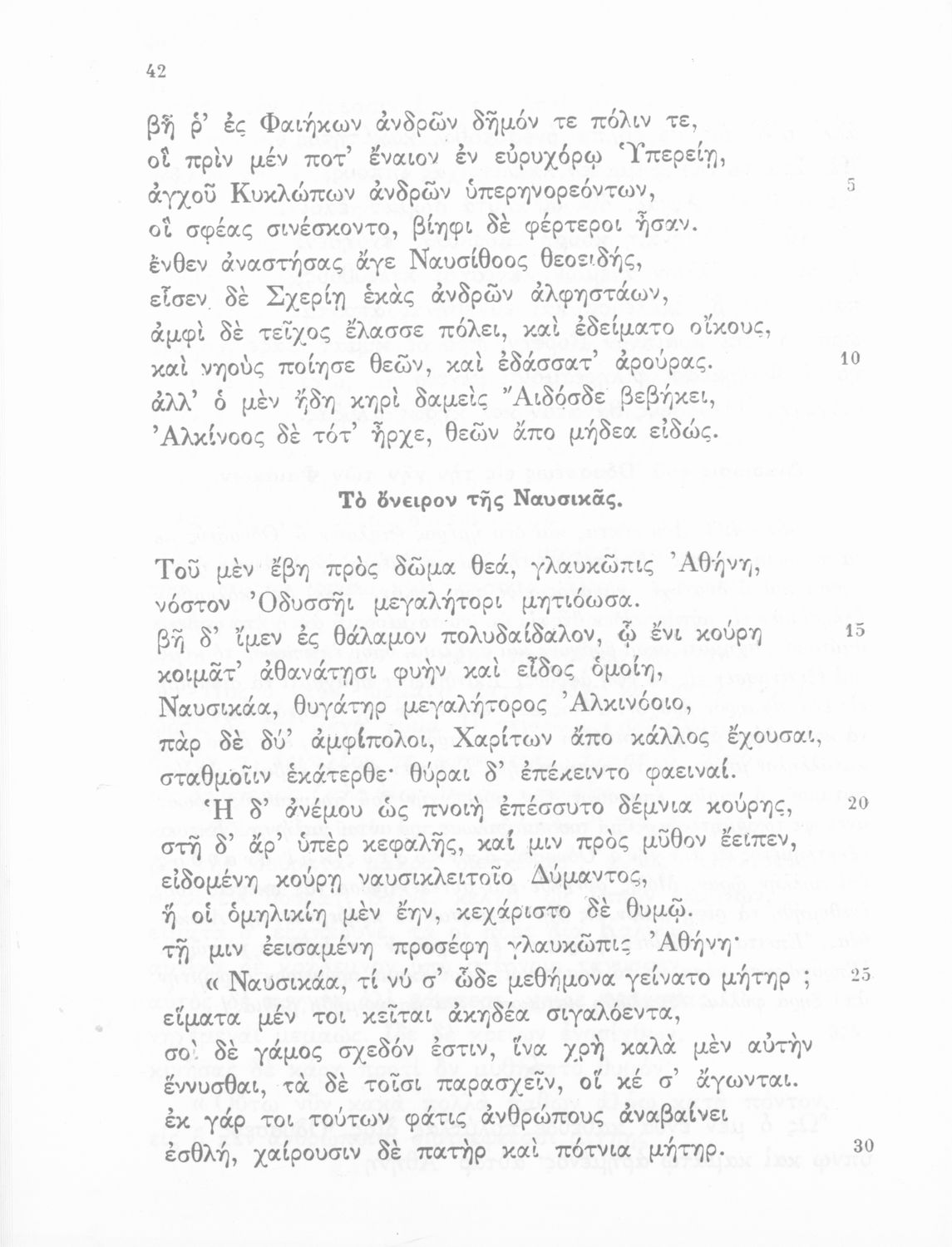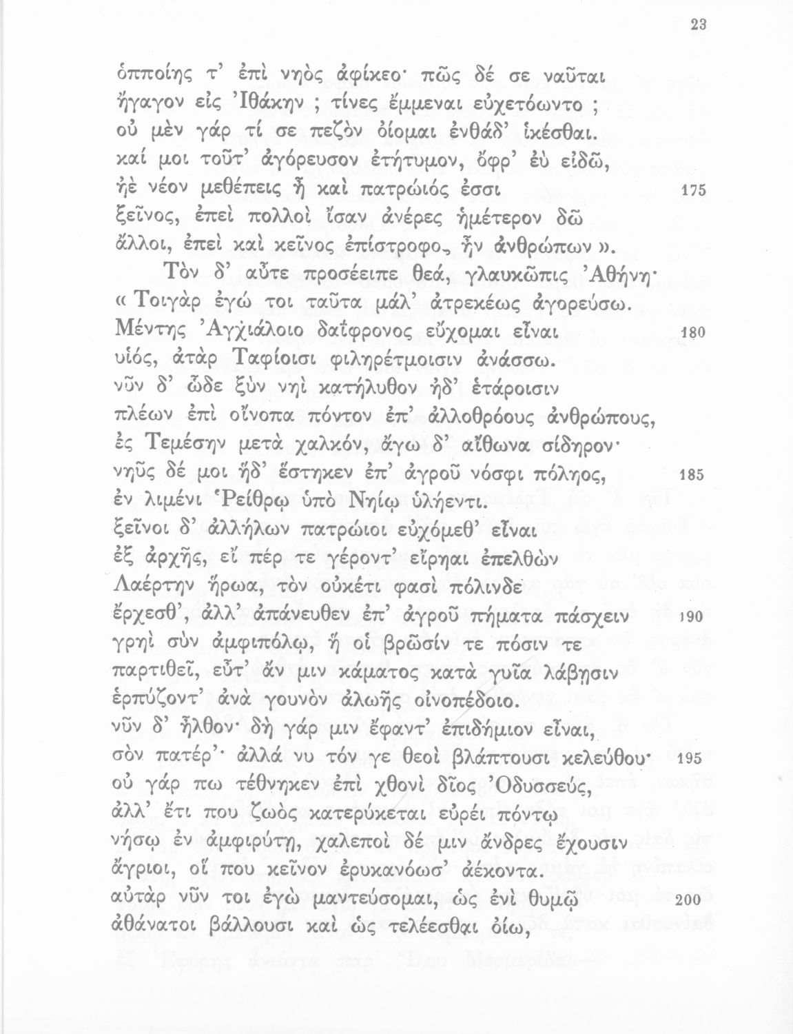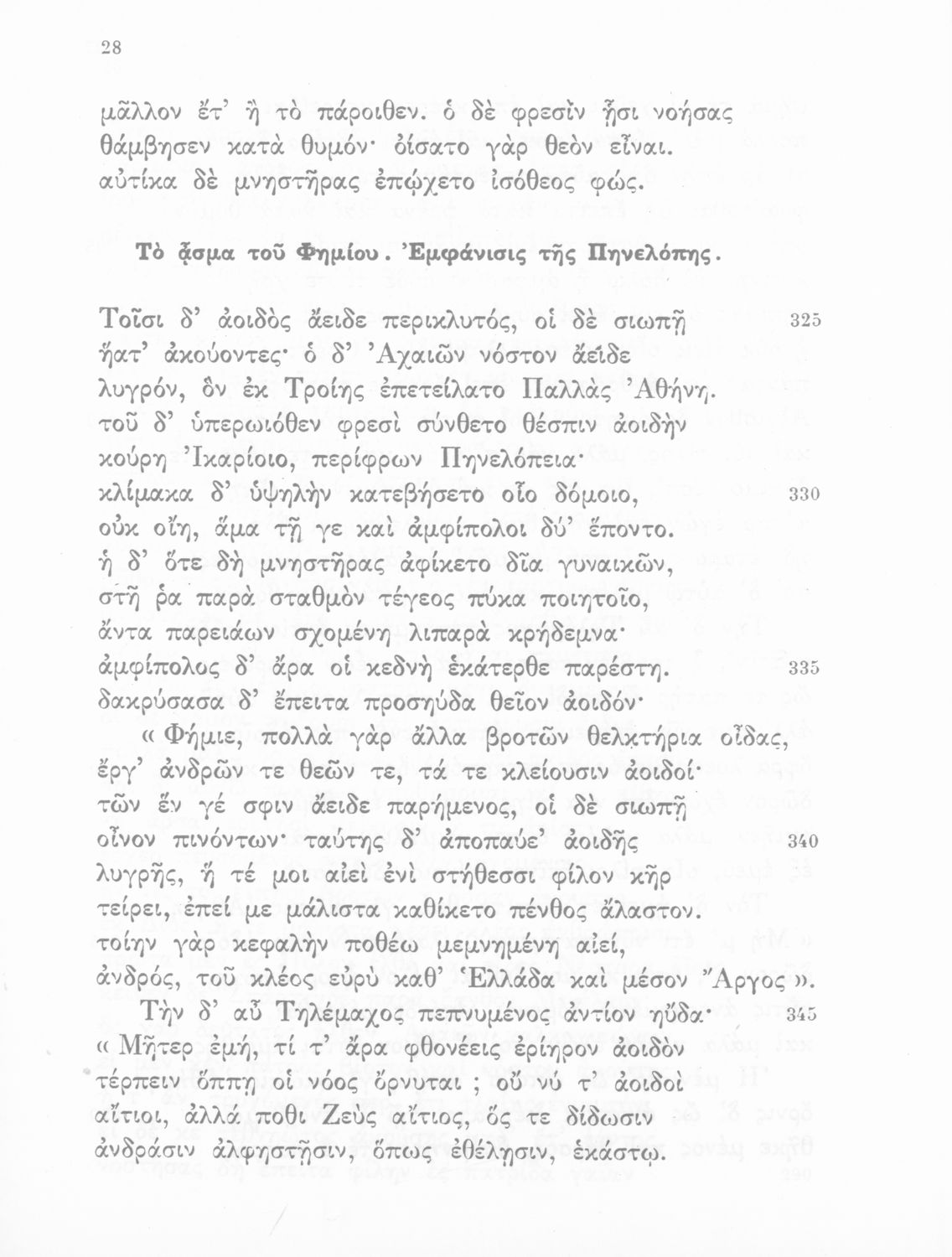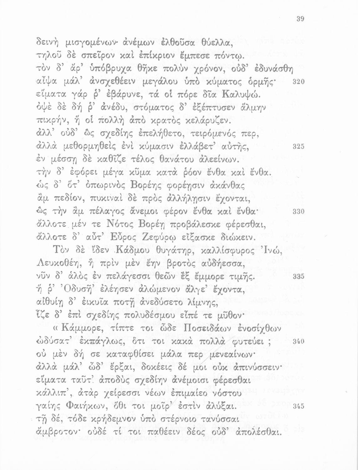 Σχολικό εγχειρίδιο Αρχαίων Ελληνικών. Το βιβλίο περιλαμβάνει εισαγωγή σχετικά με την ελληνική ποίηση και τα ομηρικά έπη. Περιλαμβάνονται αποσπάσματα από το πρωτότυπο κείμενο της Οδύσσειας και ακολουθούν ερμηνευτικές σημειώσεις (σημασιολογικές, γραμματικές, πραγματολογικές) και παράρτημα εικόνων.