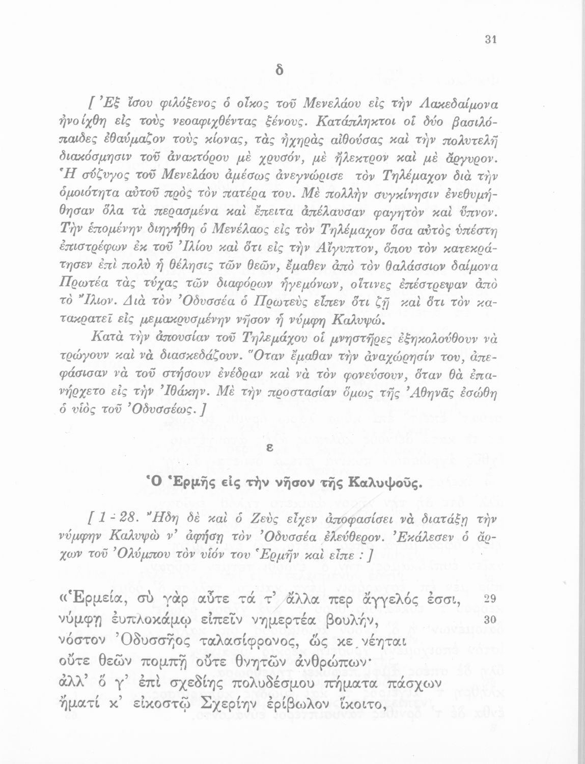 Ομήρου Οδύσσεια (Εκλογαί) Δ' Γυμνασίου
