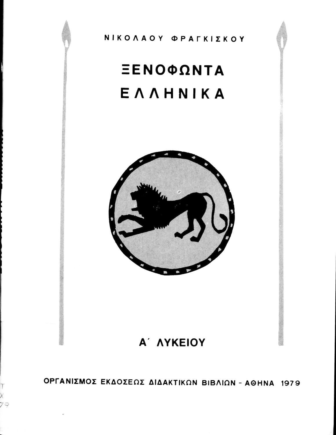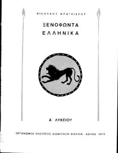 Σχολικό εγχειρίδιο Αρχαίων Ελληνικών Α΄ Λυκείου που περιλαμβάνεται εισαγωγή στη ζωή και το έργο του Ξενοφώντα, και αποσπάσματα από τα Ελληνικά.