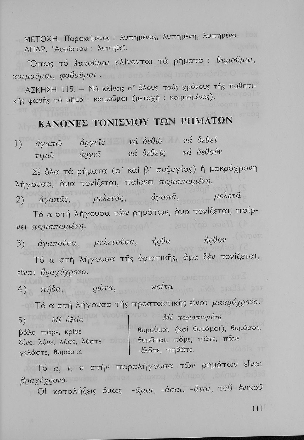 Σχολικό εγχειρίδιο Γλώσσας Γ΄ και Δ΄ Δημοτικού που περιλαμβάνει τους κανόνες γραμματικής και τη δομή της νέας ελληνικής και είναι χωρισμένο στο φωνητικό, τυπικό και παραγωγικό μέρος.