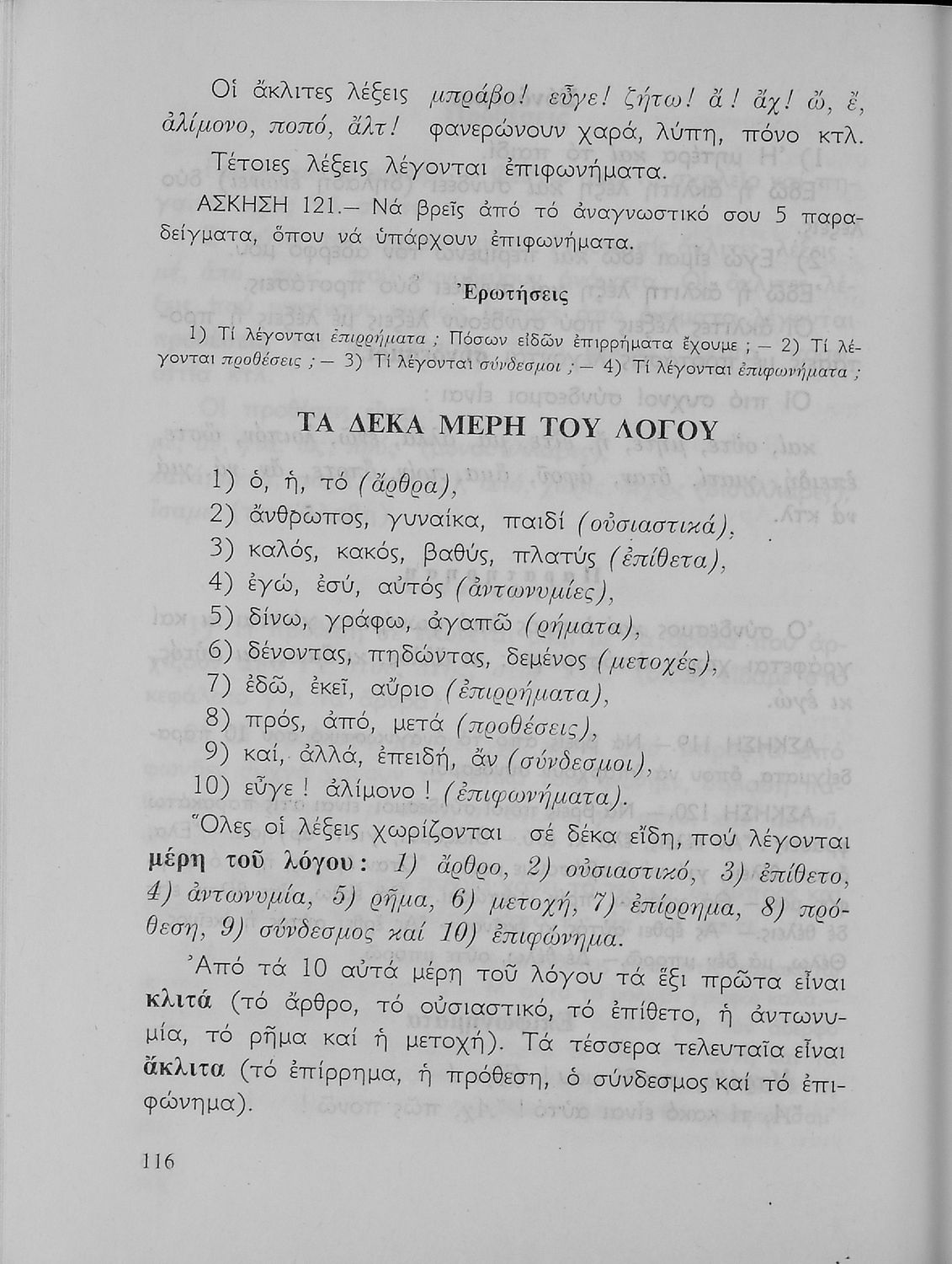 Σχολικό εγχειρίδιο Γ΄ και Δ΄ Δημοτικού που περιλαμβάνει τους κανόνες γραμματικής και τη δομή της νέας ελληνικής και είναι χωρισμένο στο φωνητικό, τυπικό και παραγωγικό μέρος.