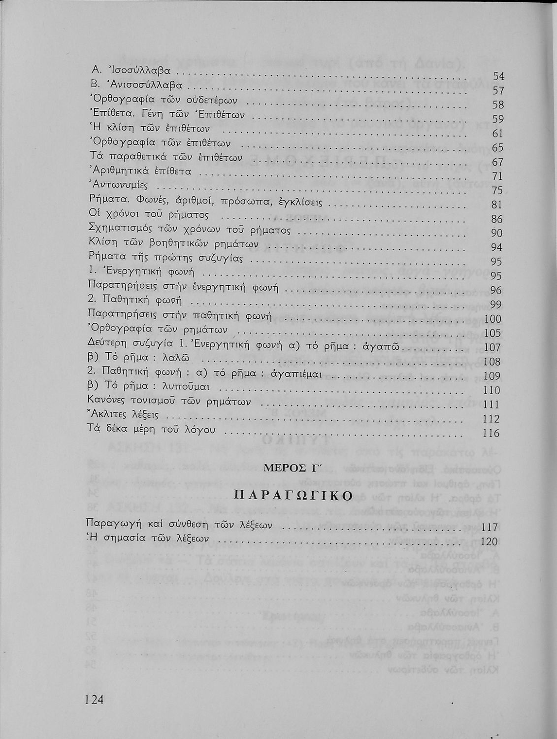 Σχολικό εγχειρίδιο Γλώσσας Γ΄ και Δ΄ Δημοτικού που περιλαμβάνει τους κανόνες γραμματικής και τη δομή της νέας ελληνικής και είναι χωρισμένο στο φωνητικό, τυπικό και παραγωγικό μέρος.
