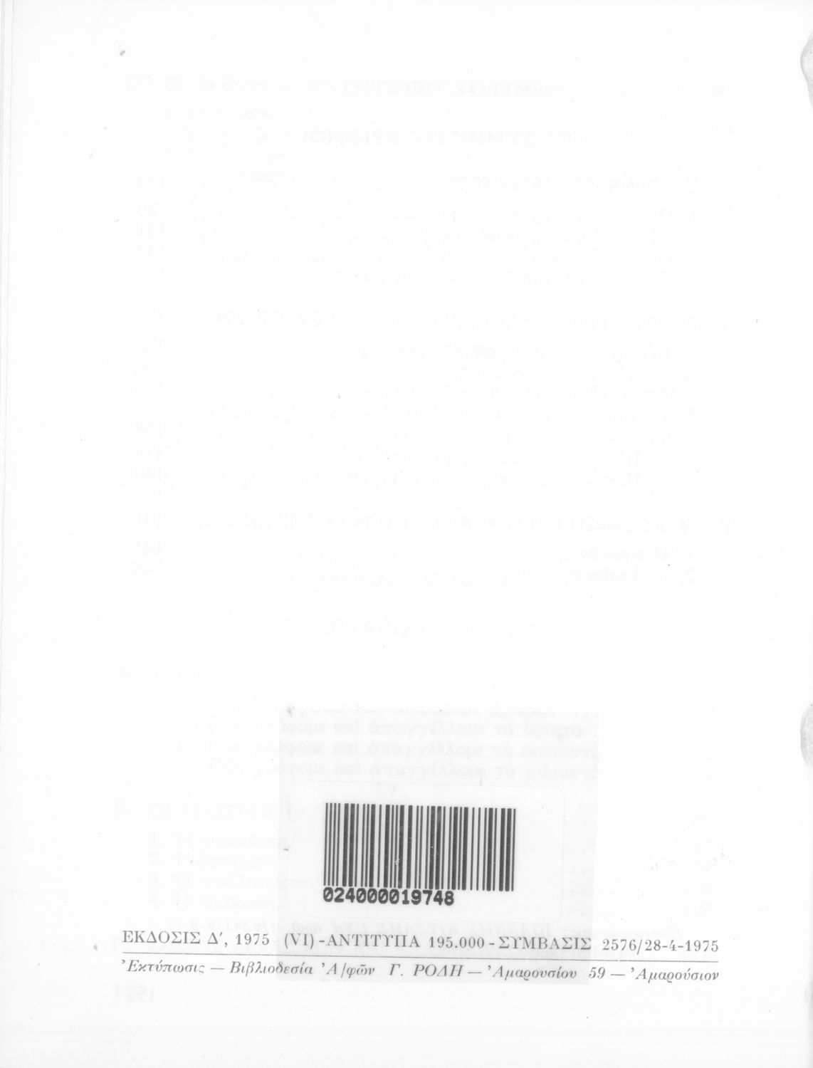 Εκδότης: Οργανισμός Εκδόσεως Διδακτικών Βιβλίων Έτος έκδοσης: 1975 Τόπος έκδοσης: Αθήνα Έκδοση: 4η Υπουργική απόφαση / Σύμβαση: 2576/28-4-1975 Έτος έγκρισης: 1975 |