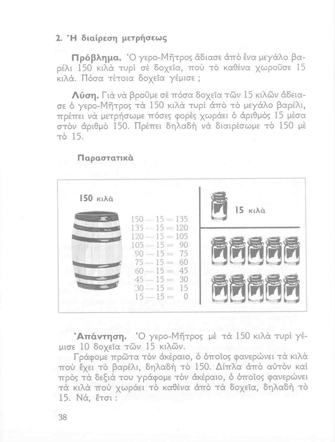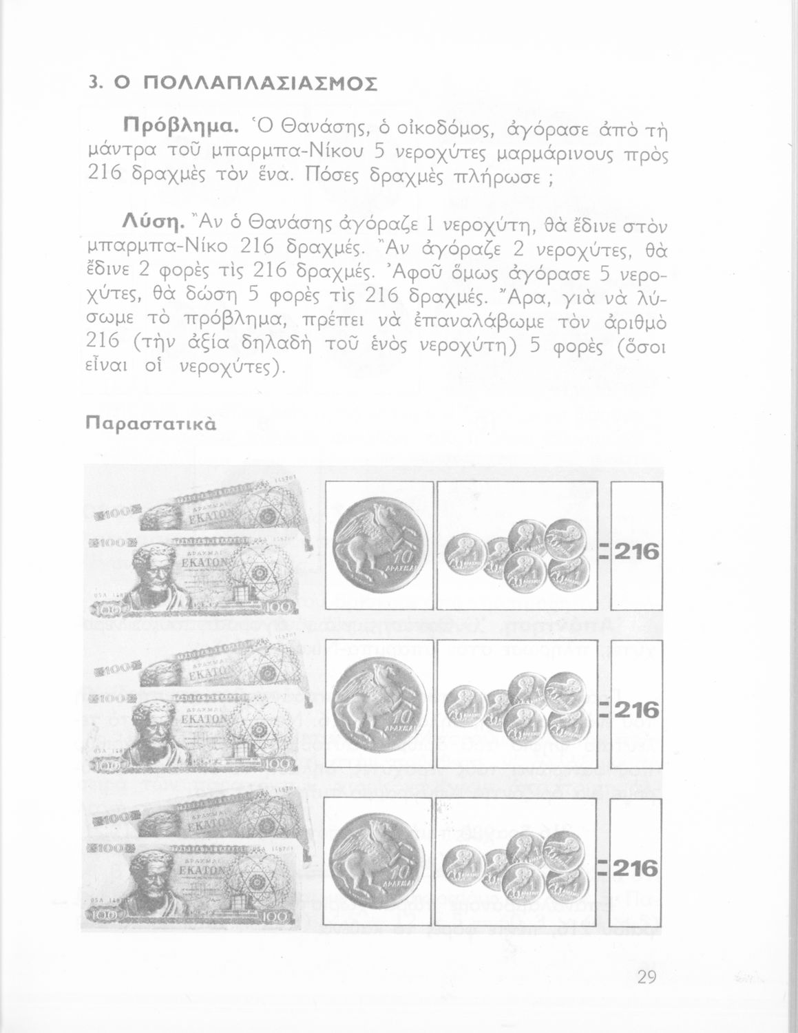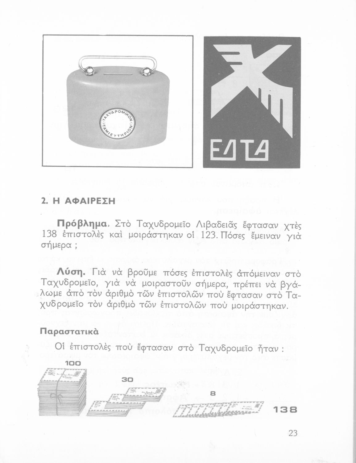 Σχολικό εγχειρίδιο Αριθμητικής Δ΄ Δημοτικού χωρισμένο σε πρακτικά προβλήματα και τις λύσεις τους που περιλαμβάνει και κάποια στοιχεία Γεωμετρίας.