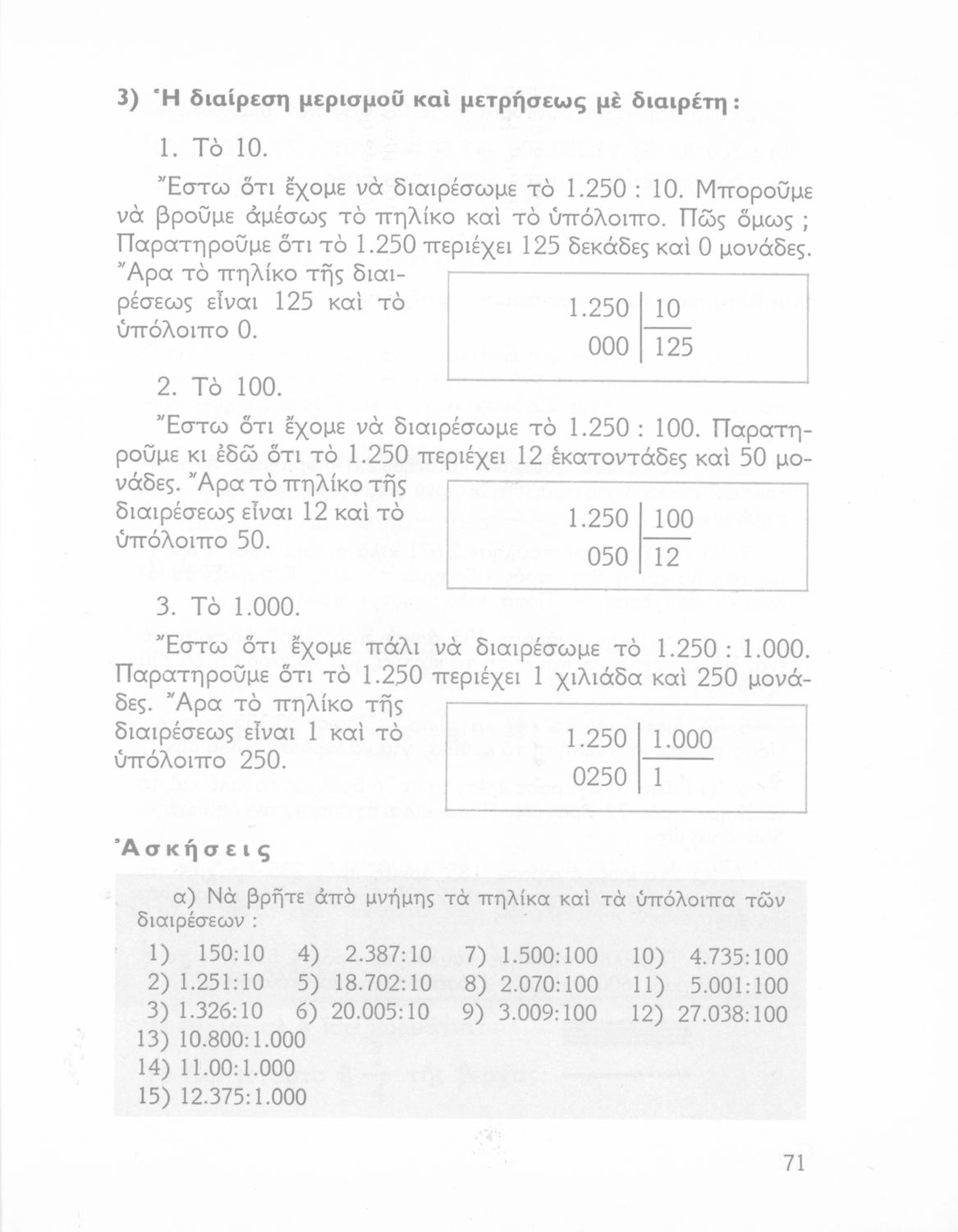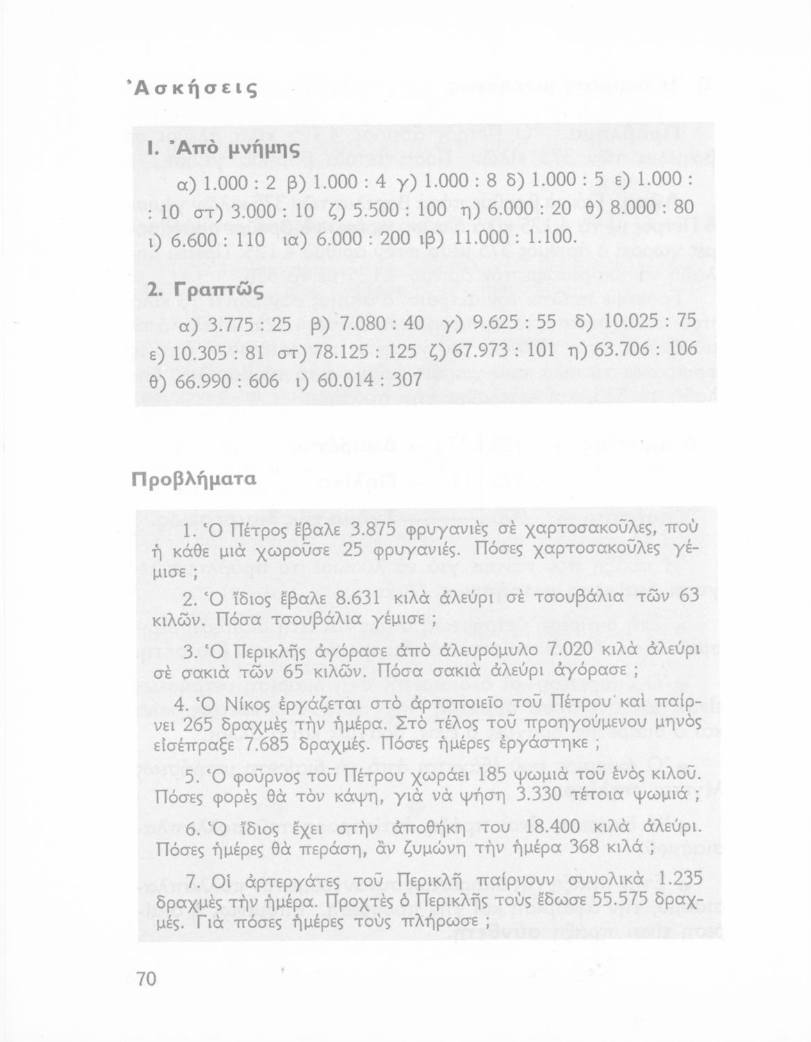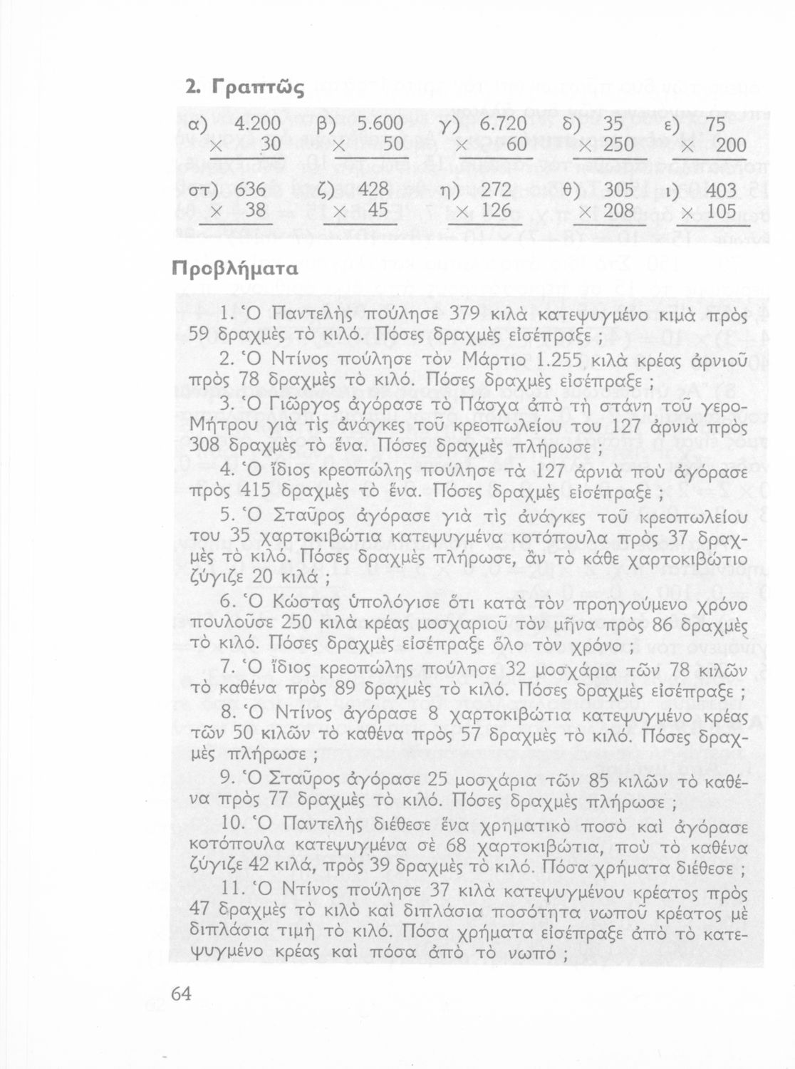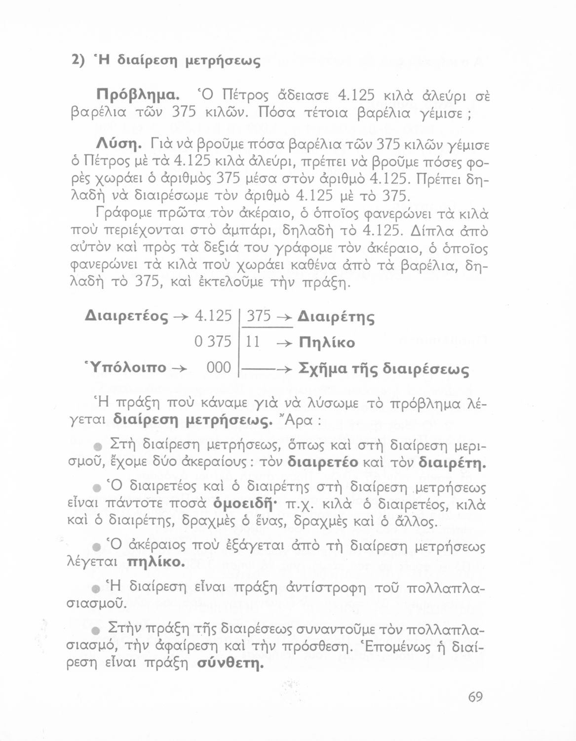 Σχολικό εγχειρίδιο Αριθμητικής Δ΄ Δημοτικού χωρισμένο σε πρακτικά προβλήματα και τις λύσεις τους που περιλαμβάνει και κάποια στοιχεία Γεωμετρίας.