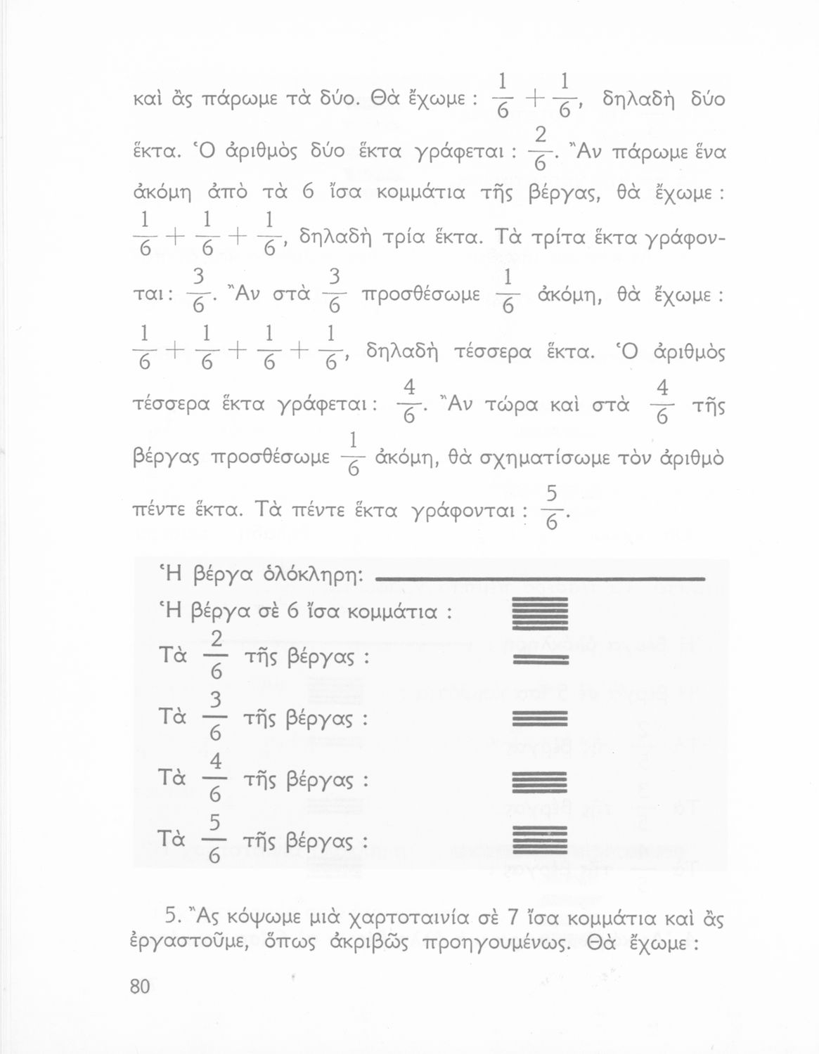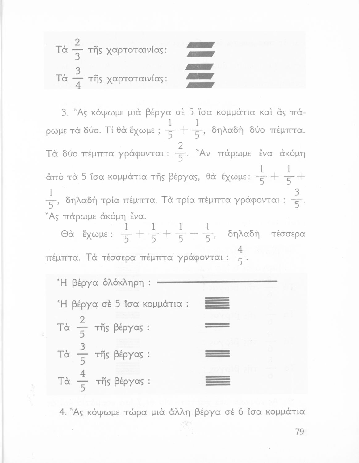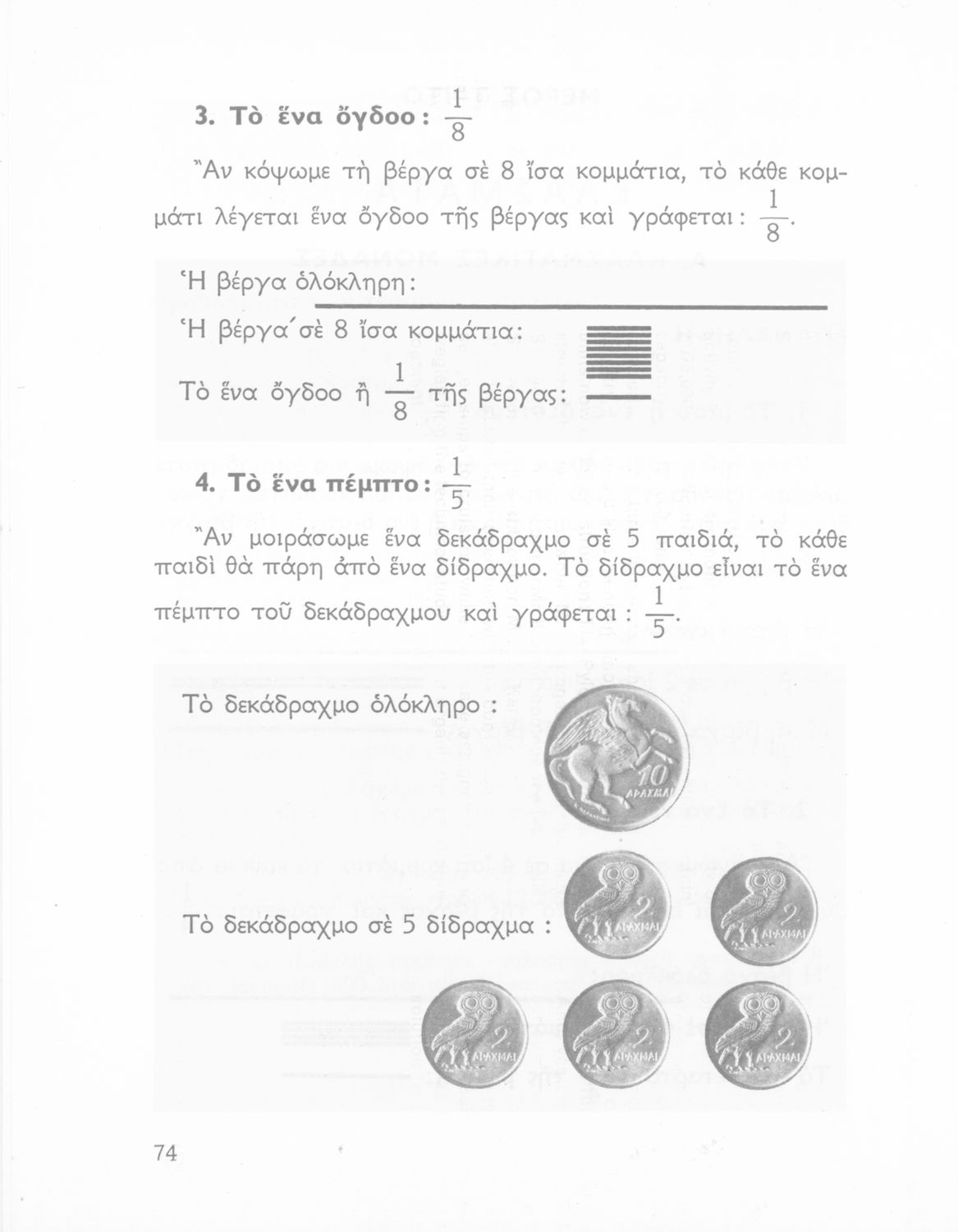 Σχολικό εγχειρίδιο Αριθμητικής Δ΄ Δημοτικού χωρισμένο σε πρακτικά προβλήματα και τις λύσεις τους που εστιάζει στις πράξεις με ακέραιους και συμμιγείς αριθμούς και περιλαμβάνει στοιχεία Γεωμετρίας.