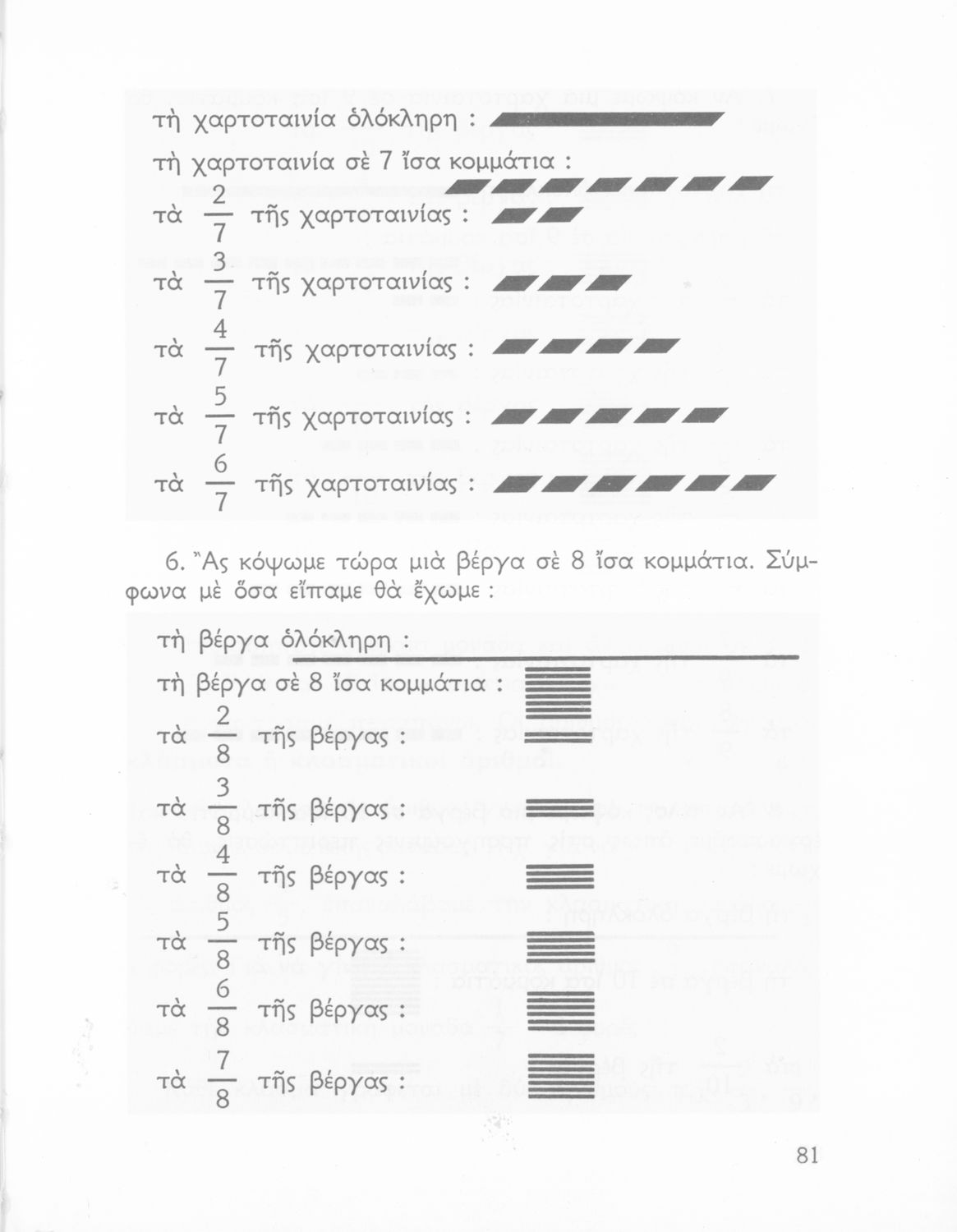 Σχολικό εγχειρίδιο Μαθηματικών ΣΤ΄ Δημοτικού που περιλαμβάνει ασκήσεις λογιστικού χαρακτήρα και ασκήσεις μέτρησης γεωμετρικών σχημάτων. Φέρει το σύμβολο της δικτατορίας.