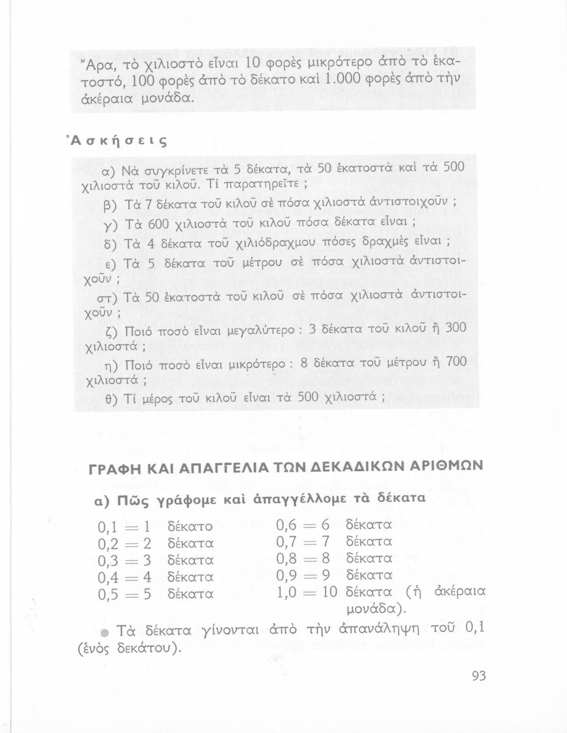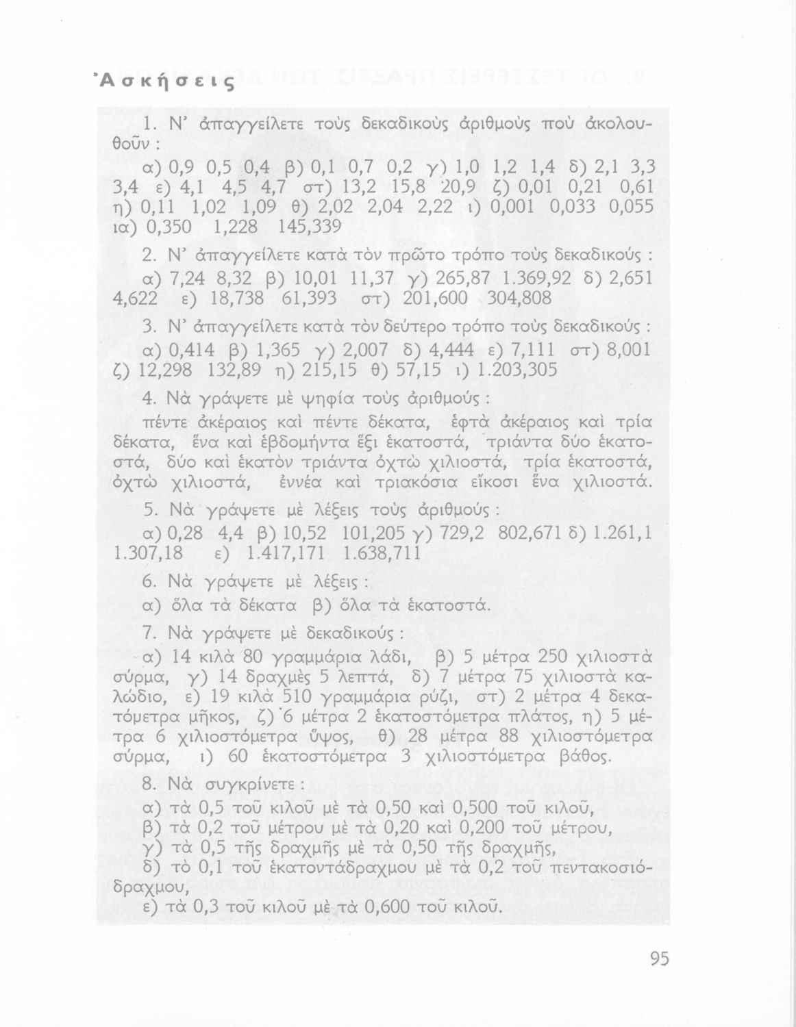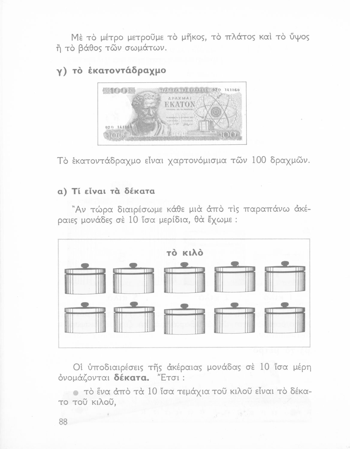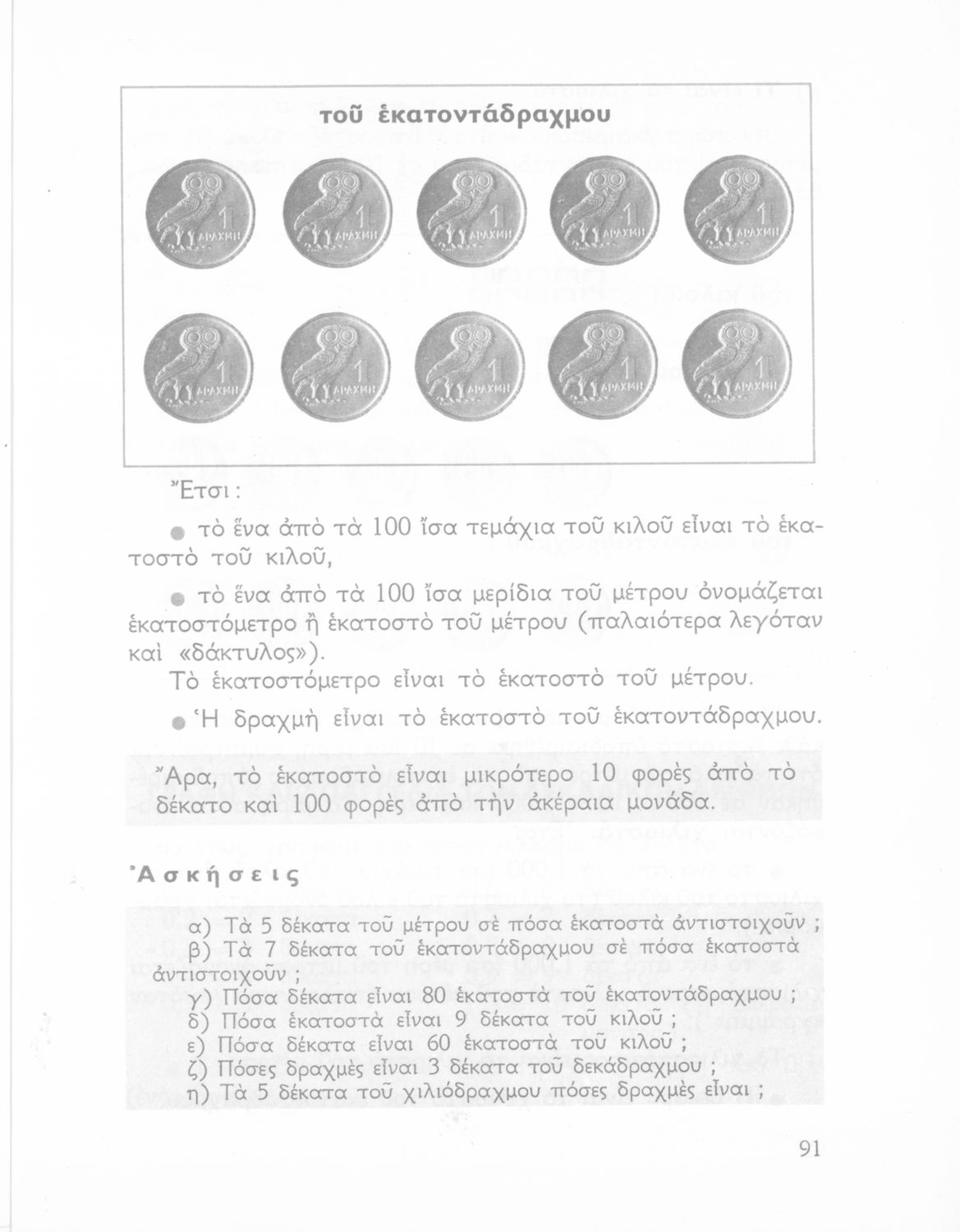Σχολικό εγχειρίδιο Αριθμητικής Δ΄ Δημοτικού χωρισμένο σε πρακτικά προβλήματα και τις λύσεις τους που εστιάζει στις πράξεις με ακέραιους και συμμιγείς αριθμούς και περιλαμβάνει στοιχεία Γεωμετρίας.