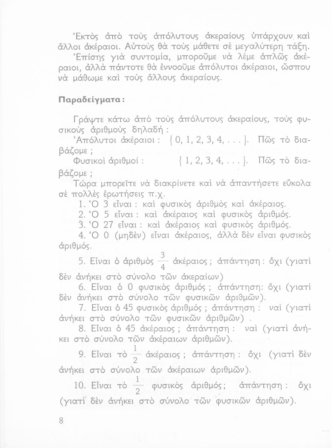 Σχολικό εγχειρίδιο Αριθμητικής Δ΄ Δημοτικού χωρισμένο σε πρακτικά προβλήματα και τις λύσεις τους που εστιάζει στις πράξεις με ακέραιους και συμμιγείς αριθμούς και περιλαμβάνει στοιχεία Γεωμετρίας.