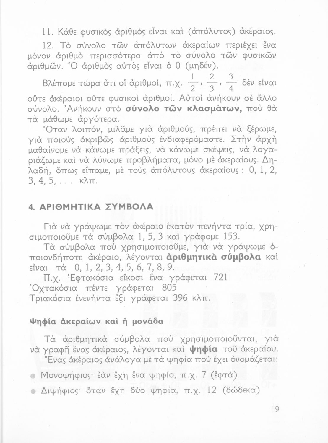 Σχολικό εγχειρίδιο Μαθηματικών Δ ΄ Δημοτικού που αποτελεί εισαγωγή στους βασικούς αριθμούς και τις αριθμητικές πράξεις ακέραιων και κλασματικών αριθμών.