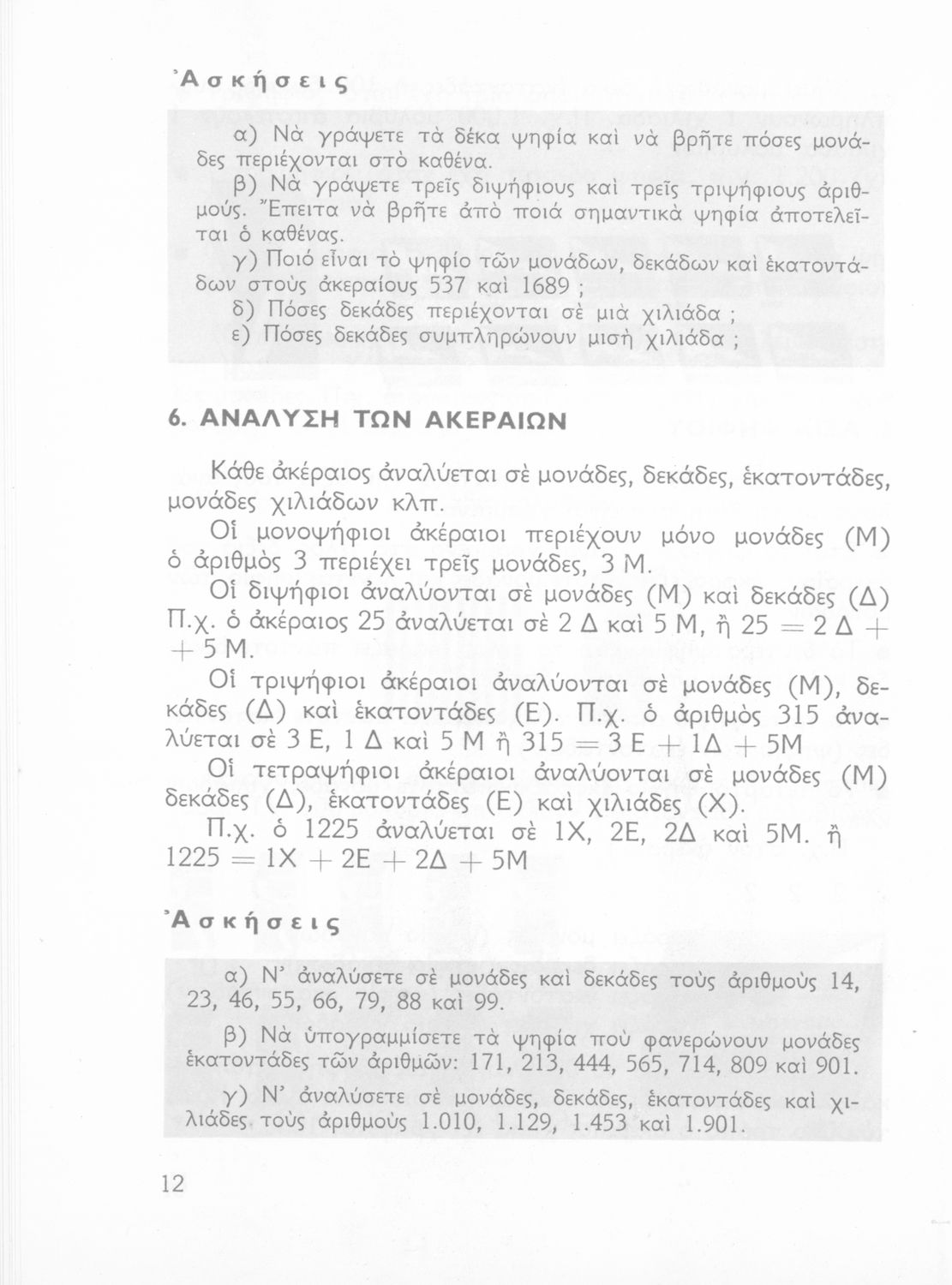 Σχολικό εγχειρίδιο Μαθηματικών ΣΤ΄ Δημοτικού που περιλαμβάνει ασκήσεις λογιστικού χαρακτήρα και ασκήσεις μέτρησης γεωμετρικών σχημάτων. Φέρει το σύμβολο της δικτατορίας.