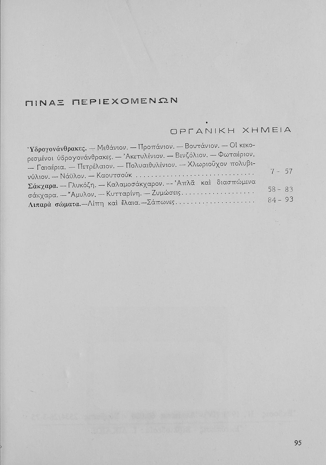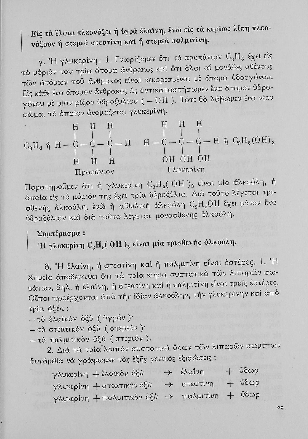 Σχολικό εγχειρίδιο Χημείας Γ΄ Γυμνασίου που περιέχει εισαγωγή στην οργανική χημεία και εστιάζει στους υδρογονάνθρακες, τα σάκχαρα και τα λιπαρά σώματα. Φέρει το σύμβολο της δικτατορίας.