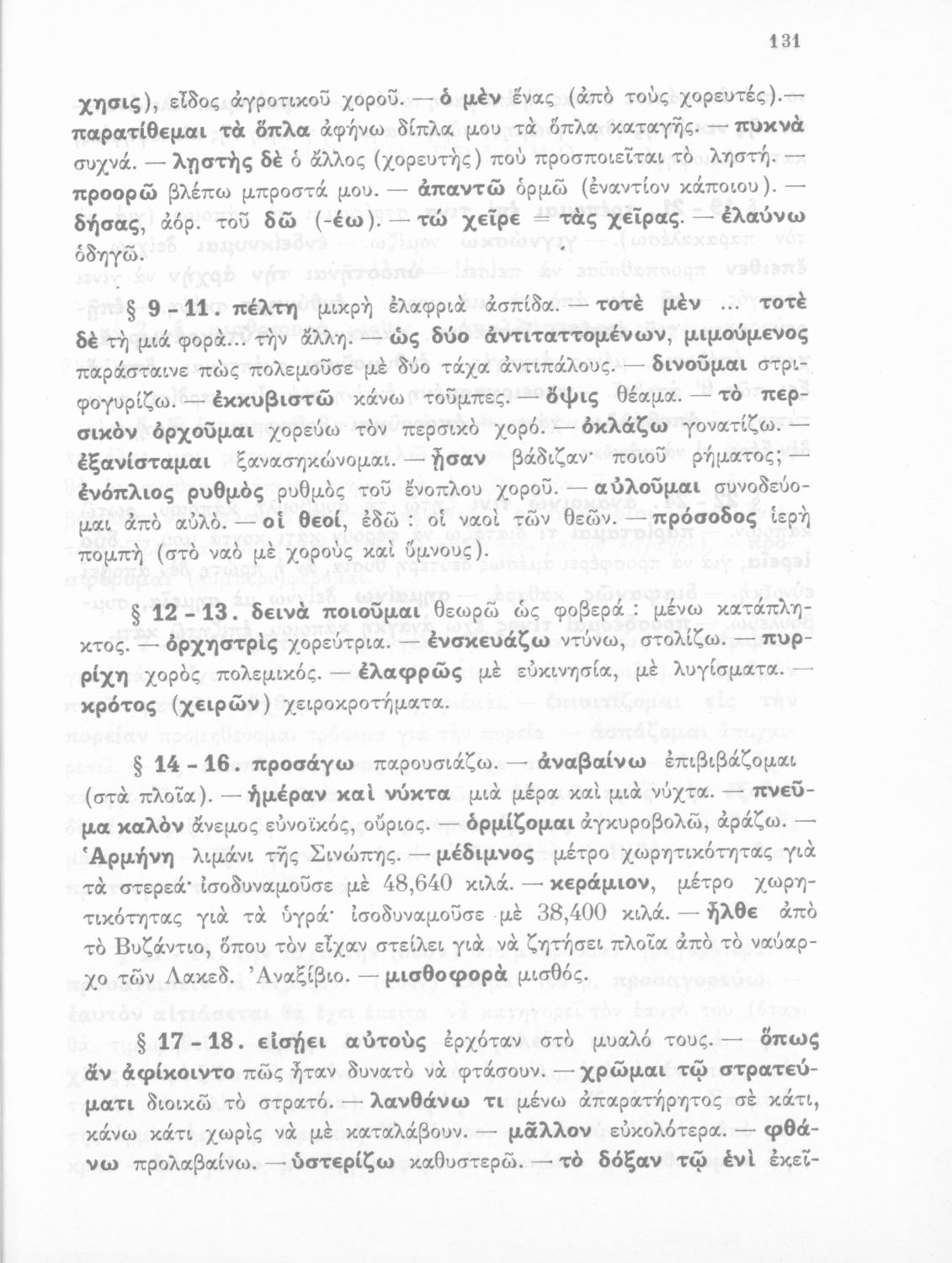 Σχολικό εγχειρίδιο Αρχαίων Ελληνικών. Η εισαγωγή, οι περιλήψεις και οι ερμηνευτικές σημειώσεις μεταγλωττίστηκαν από το Σύμβουλο του Κ.Ε.Μ.Ε. Ι. Αρβανίτη. Στο βιβλίο περιλαμβάνονται τα πρωτότυπα κείμενα από τα Ιστορικά του Ξενοφώντα "Κύρου Ανάβασις" και συγκεκριμένα η εκστρατεία του Κύρου κατά του αδελφού του Αρταξέρξη και κυρίως η κάθοδος (η επιστροφή) των Μυρίων. Ακολουθούν σχεδιαγράμματα της πορείας και διάταξης του στρατού. Στο δεύτερο μέρος του βιβλίου περιλαμβάνονται επιλογές από τα "Ελληνικά" του Ξενοφώντα σε πρωτότυπο κείμενο και ακολουθούν ερμηνευτικές σημειώσεις και σχεδιαγράμματα.