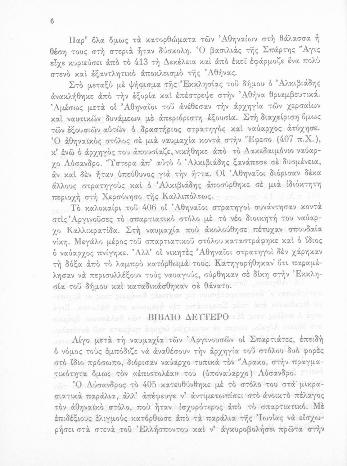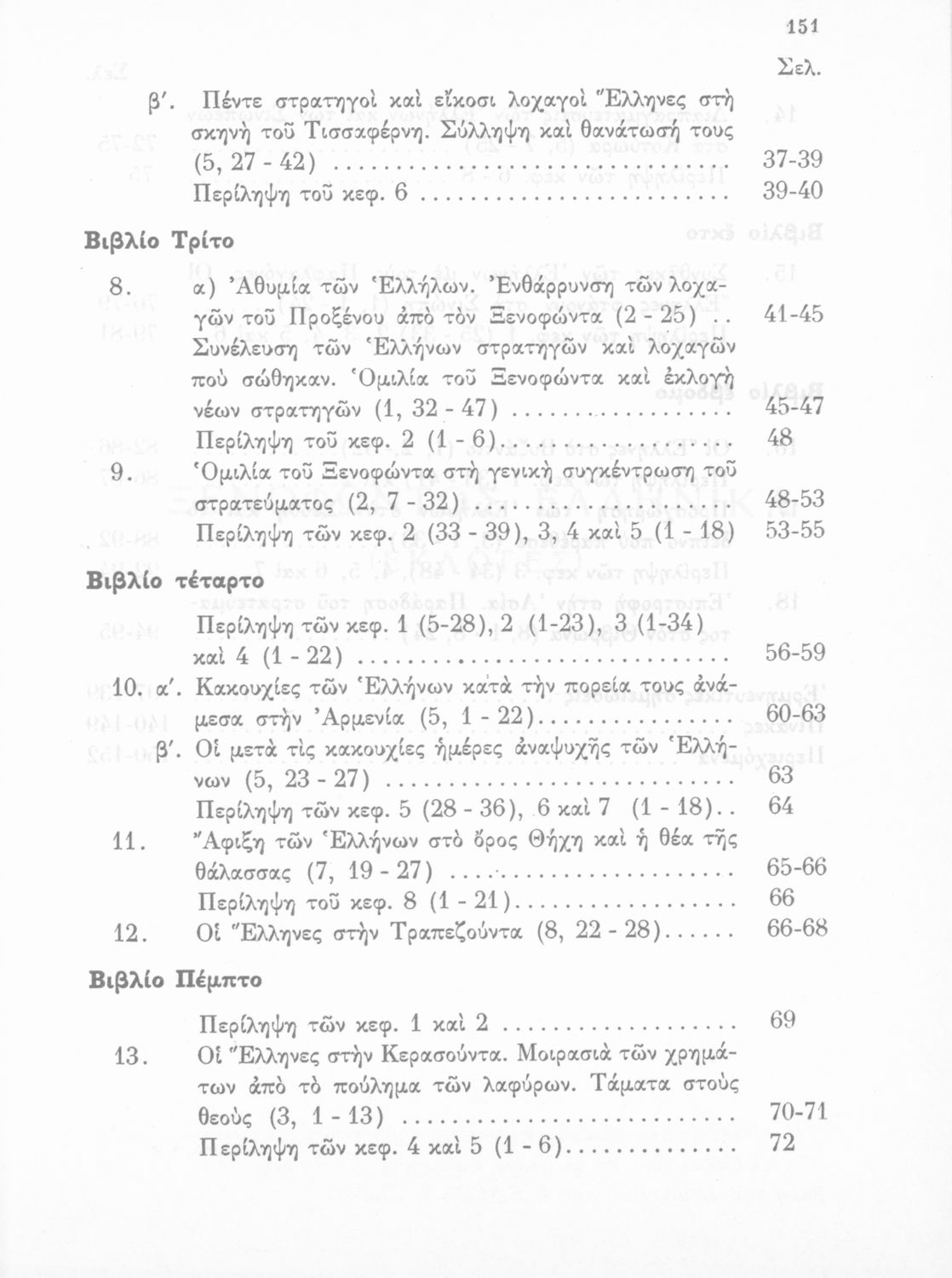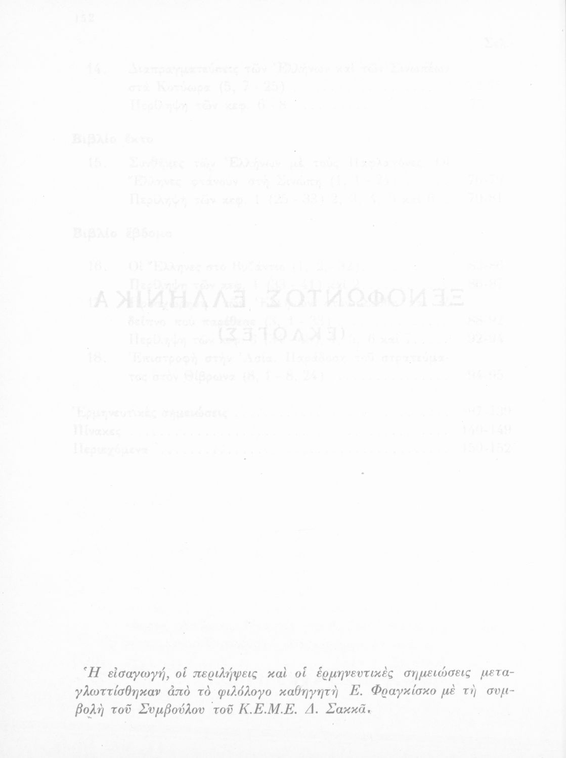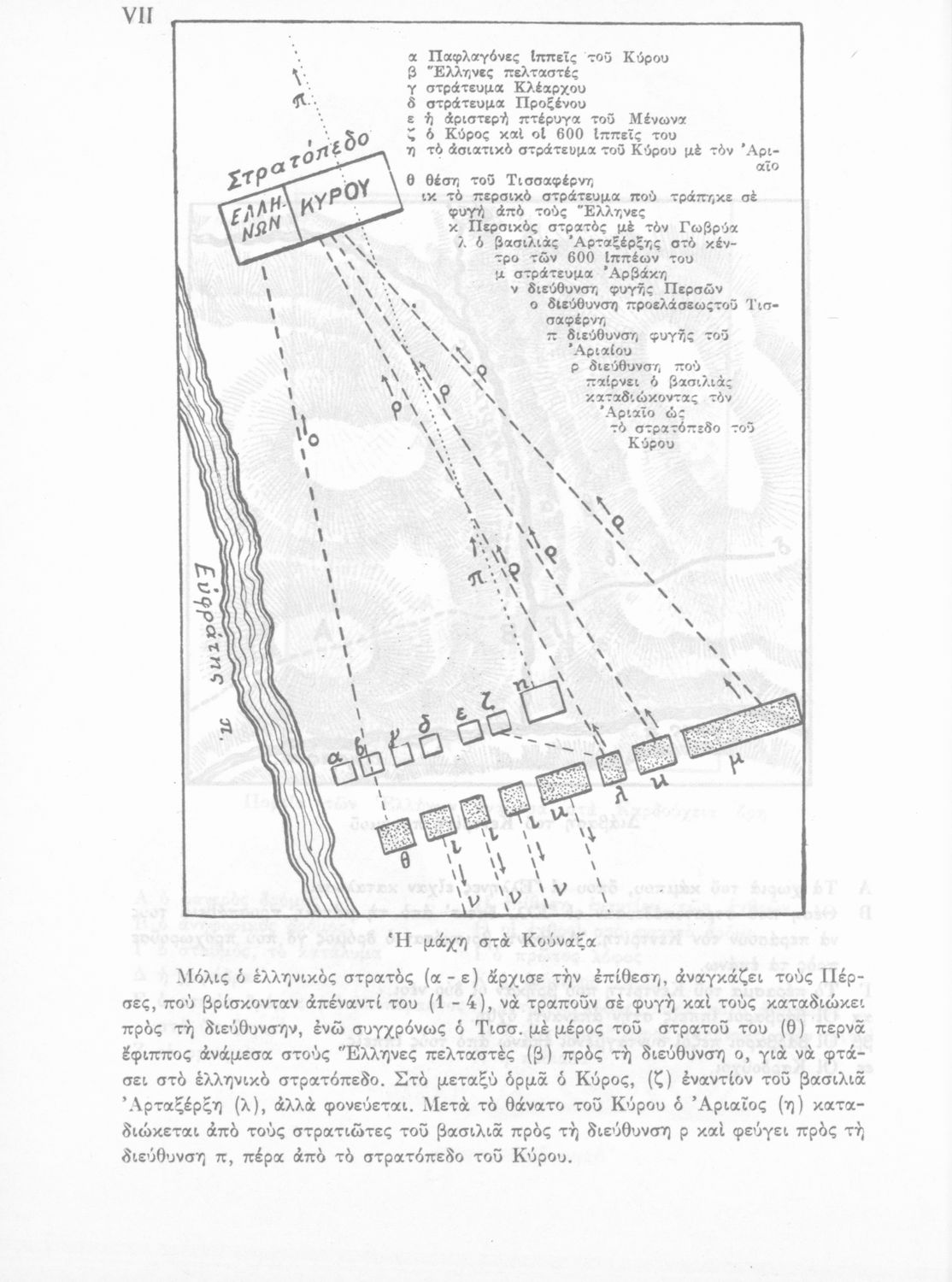 Σχολικό εγχειρίδιο Αρχαίων Ελληνικών. Η εισαγωγή, οι περιλήψεις και οι ερμηνευτικές σημειώσεις μεταγλωττίστηκαν από το Σύμβουλο του Κ.Ε.Μ.Ε. Ι. Αρβανίτη. Στο βιβλίο περιλαμβάνονται τα πρωτότυπα κείμενα από τα Ιστορικά του Ξενοφώντα "Κύρου Ανάβασις" και συγκεκριμένα η εκστρατεία του Κύρου κατά του αδελφού του Αρταξέρξη και κυρίως η κάθοδος (η επιστροφή) των Μυρίων. Ακολουθούν σχεδιαγράμματα της πορείας και διάταξης του στρατού. Στο δεύτερο μέρος του βιβλίου περιλαμβάνονται επιλογές από τα "Ελληνικά" του Ξενοφώντα σε πρωτότυπο κείμενο και ακολουθούν ερμηνευτικές σημειώσεις και σχεδιαγράμματα.