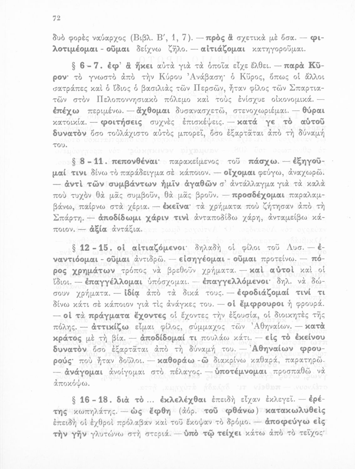Σχολικό εγχειρίδιο Αρχαίων Ελληνικών Β΄ Γυμνασίου που περιέχει αποσπάσματα από τα έργα του Ξενοφώντα Ελληνικά και Κύρου Ανάβασις, λεξιλογικές παρατηρήσεις, ερμηνευτικά, πραγματολογικά σχόλια και γραμματικές ...