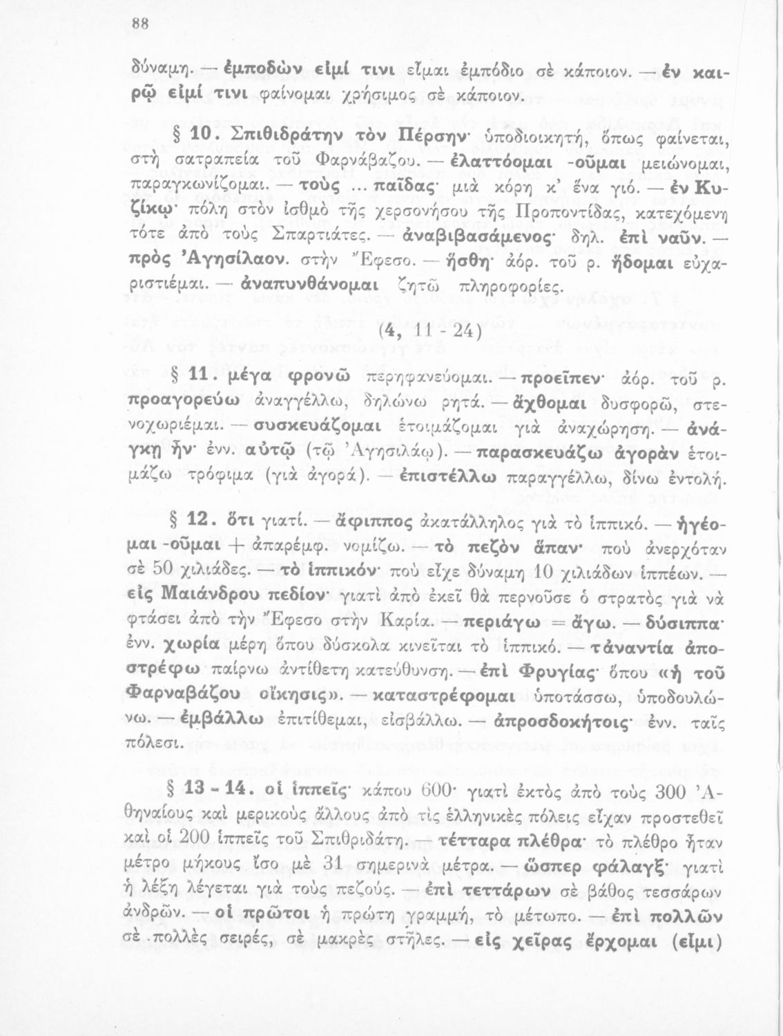 Σχολικό εγχειρίδιο Αρχαίων Ελληνικών. Η εισαγωγή, οι περιλήψεις και οι ερμηνευτικές σημειώσεις μεταγλωττίστηκαν από το Σύμβουλο του Κ.Ε.Μ.Ε. Ι. Αρβανίτη. Στο βιβλίο περιλαμβάνονται τα πρωτότυπα κείμενα από τα Ιστορικά του Ξενοφώντα "Κύρου Ανάβασις" και συγκεκριμένα η εκστρατεία του Κύρου κατά του αδελφού του Αρταξέρξη και κυρίως η κάθοδος (η επιστροφή) των Μυρίων. Ακολουθούν σχεδιαγράμματα της πορείας και διάταξης του στρατού. Στο δεύτερο μέρος του βιβλίου περιλαμβάνονται επιλογές από τα "Ελληνικά" του Ξενοφώντα σε πρωτότυπο κείμενο και ακολουθούν ερμηνευτικές σημειώσεις και σχεδιαγράμματα.