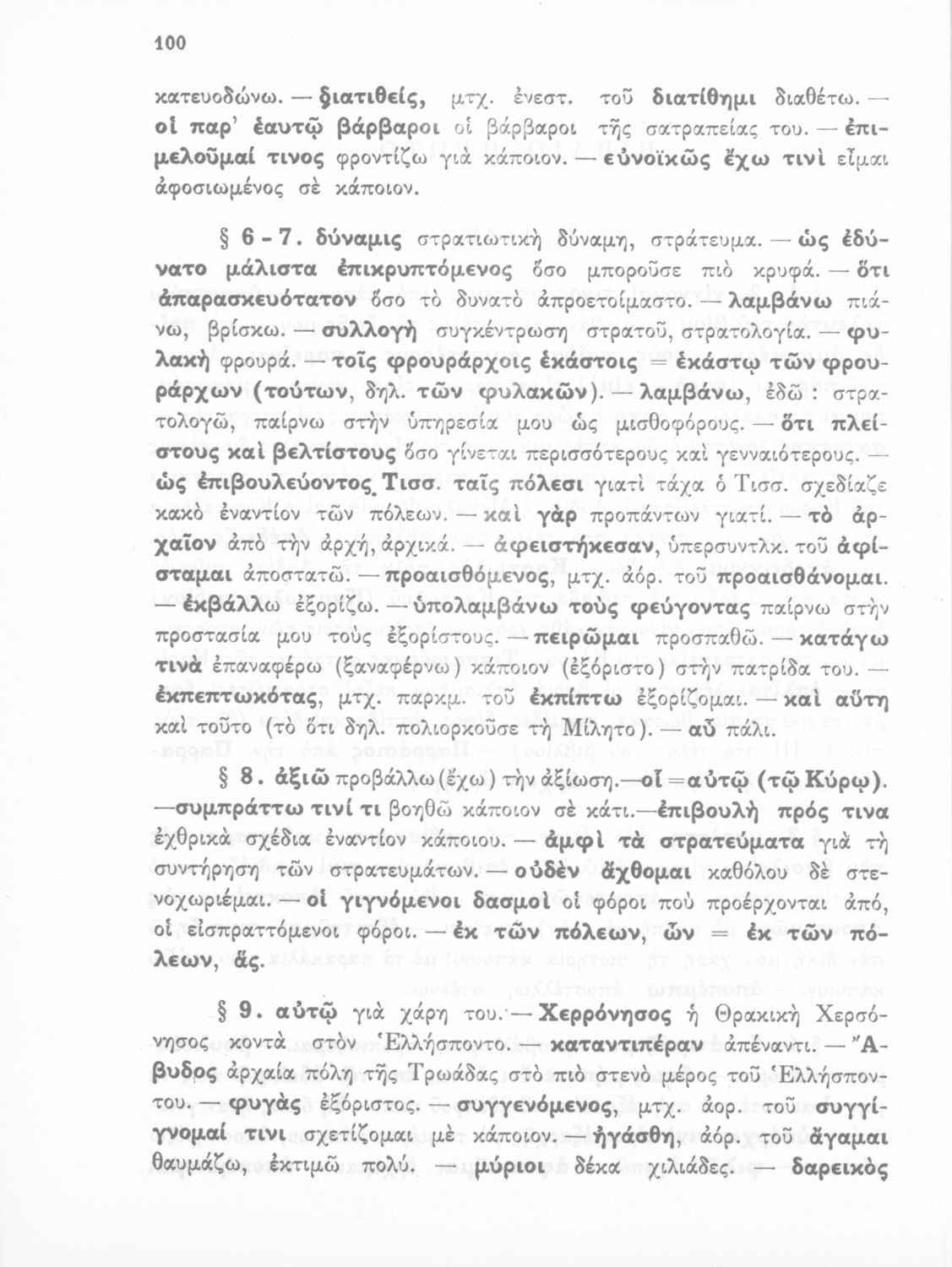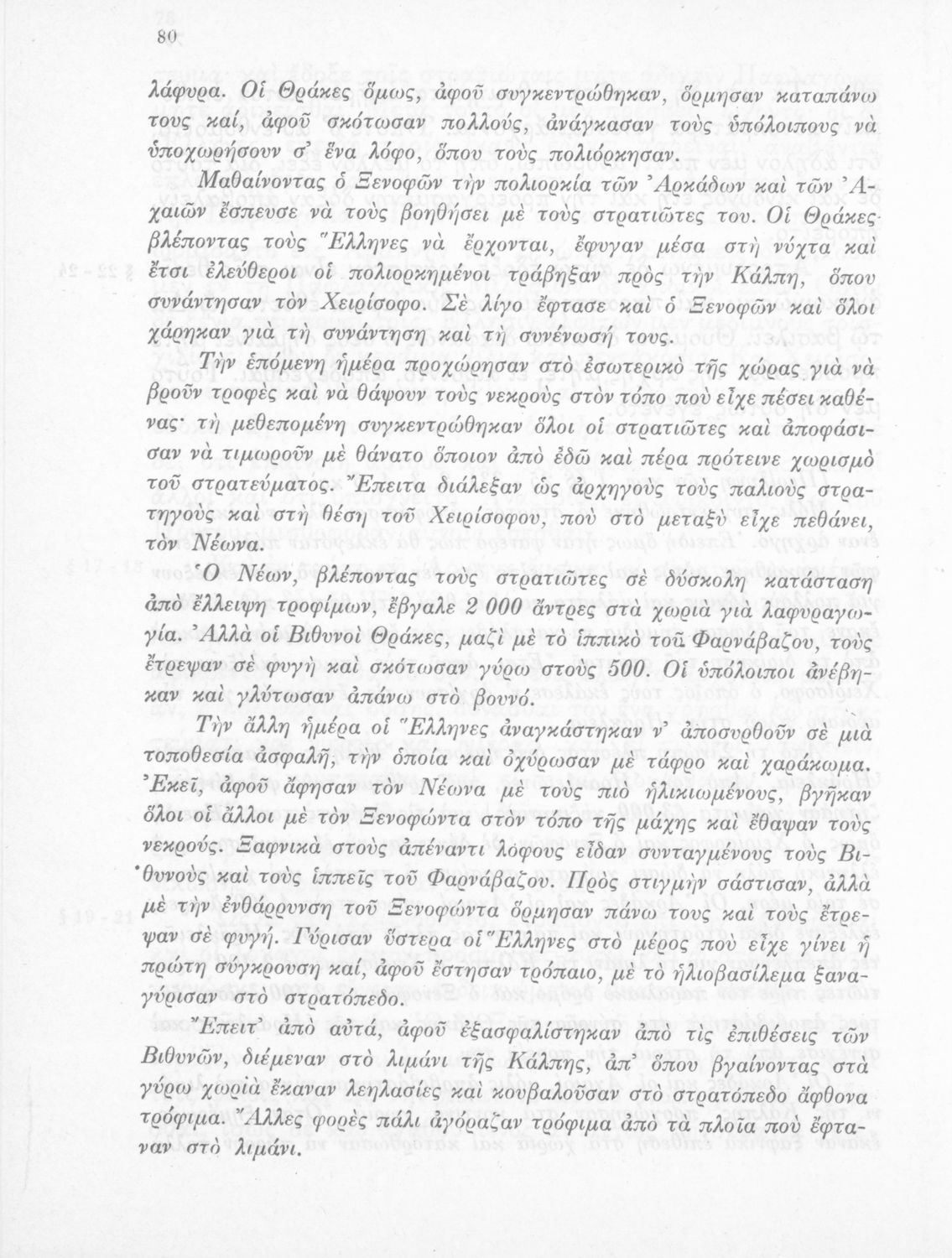 Σχολικό εγχειρίδιο Αρχαίων Ελληνικών. Η εισαγωγή, οι περιλήψεις και οι ερμηνευτικές σημειώσεις μεταγλωττίστηκαν από το Σύμβουλο του Κ.Ε.Μ.Ε. Ι. Αρβανίτη. Στο βιβλίο περιλαμβάνονται τα πρωτότυπα κείμενα από τα Ιστορικά του Ξενοφώντα "Κύρου Ανάβασις" και συγκεκριμένα η εκστρατεία του Κύρου κατά του αδελφού του Αρταξέρξη και κυρίως η κάθοδος (η επιστροφή) των Μυρίων. Ακολουθούν σχεδιαγράμματα της πορείας και διάταξης του στρατού. Στο δεύτερο μέρος του βιβλίου περιλαμβάνονται επιλογές από τα "Ελληνικά" του Ξενοφώντα σε πρωτότυπο κείμενο και ακολουθούν ερμηνευτικές σημειώσεις και σχεδιαγράμματα.