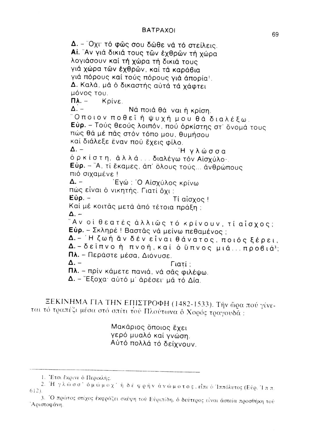 Ηλ. Σπυρόπουλος (εισαγωγή ), Ευ. Ρούσσος, Βασ. Τσακατίκας (σημειώσεις)