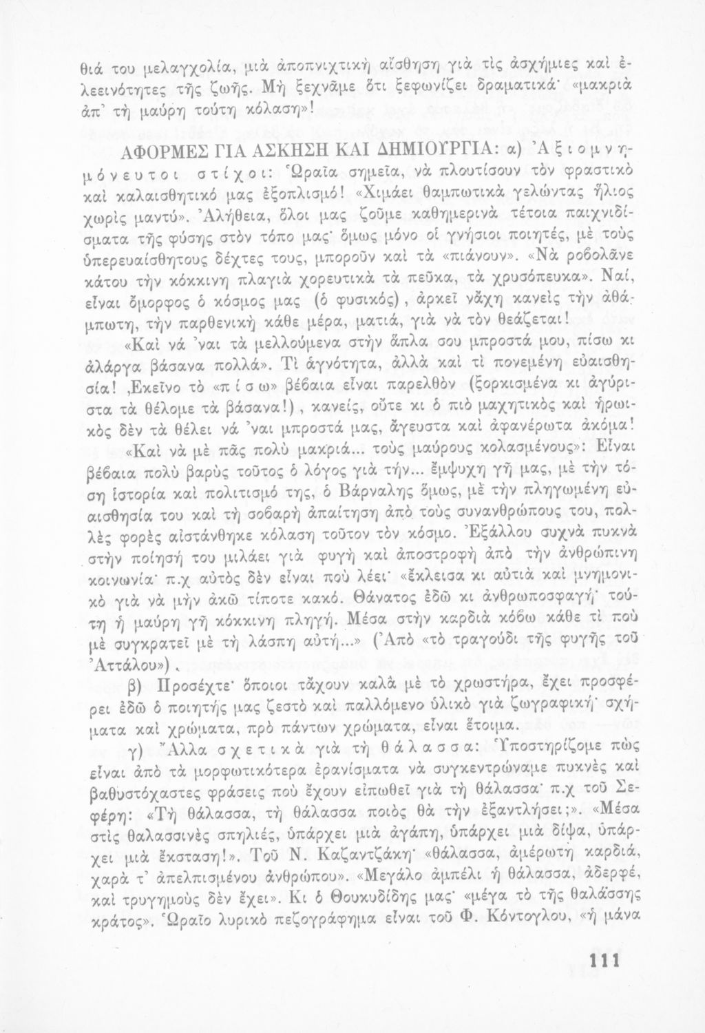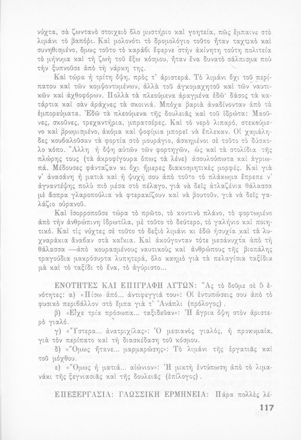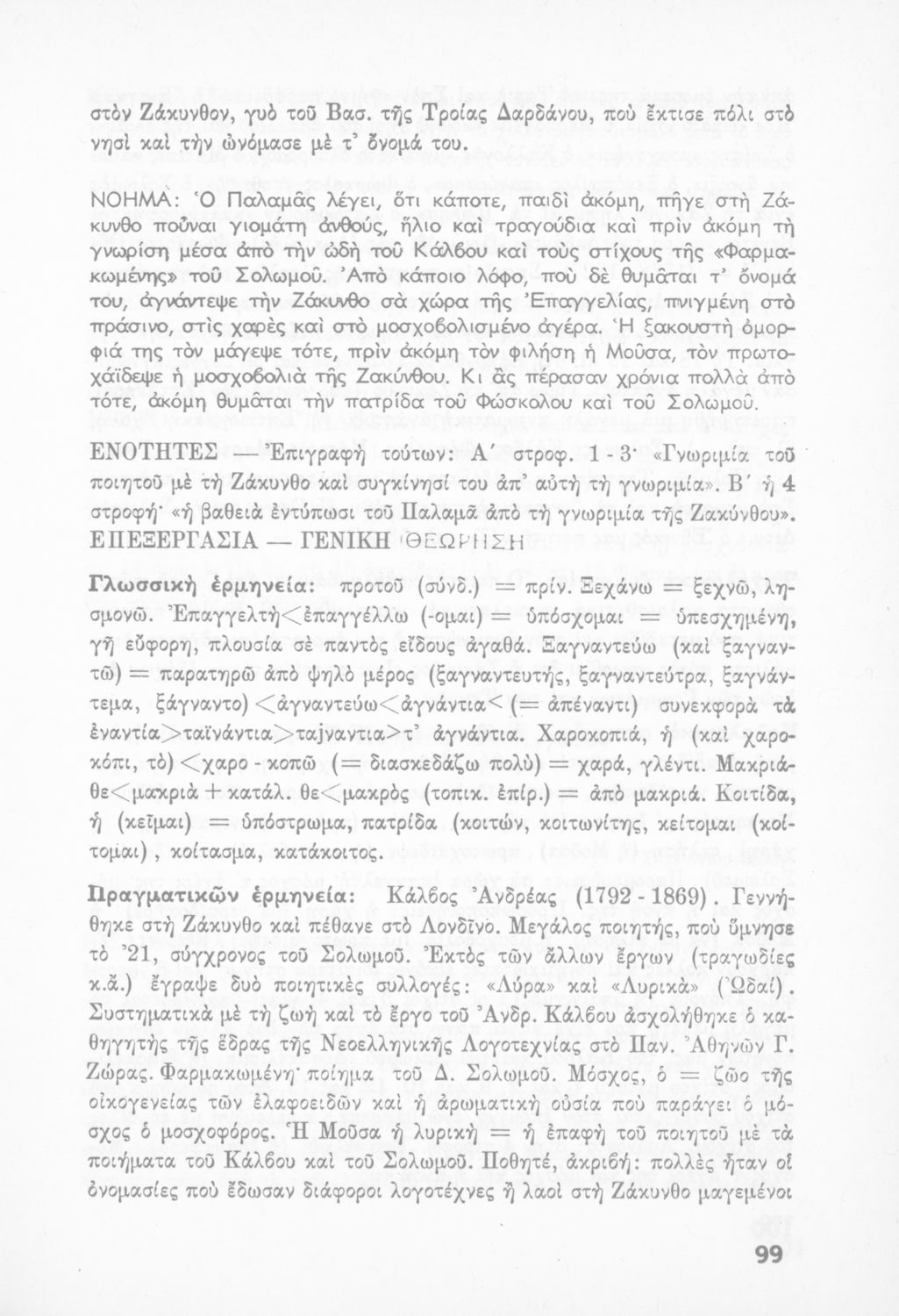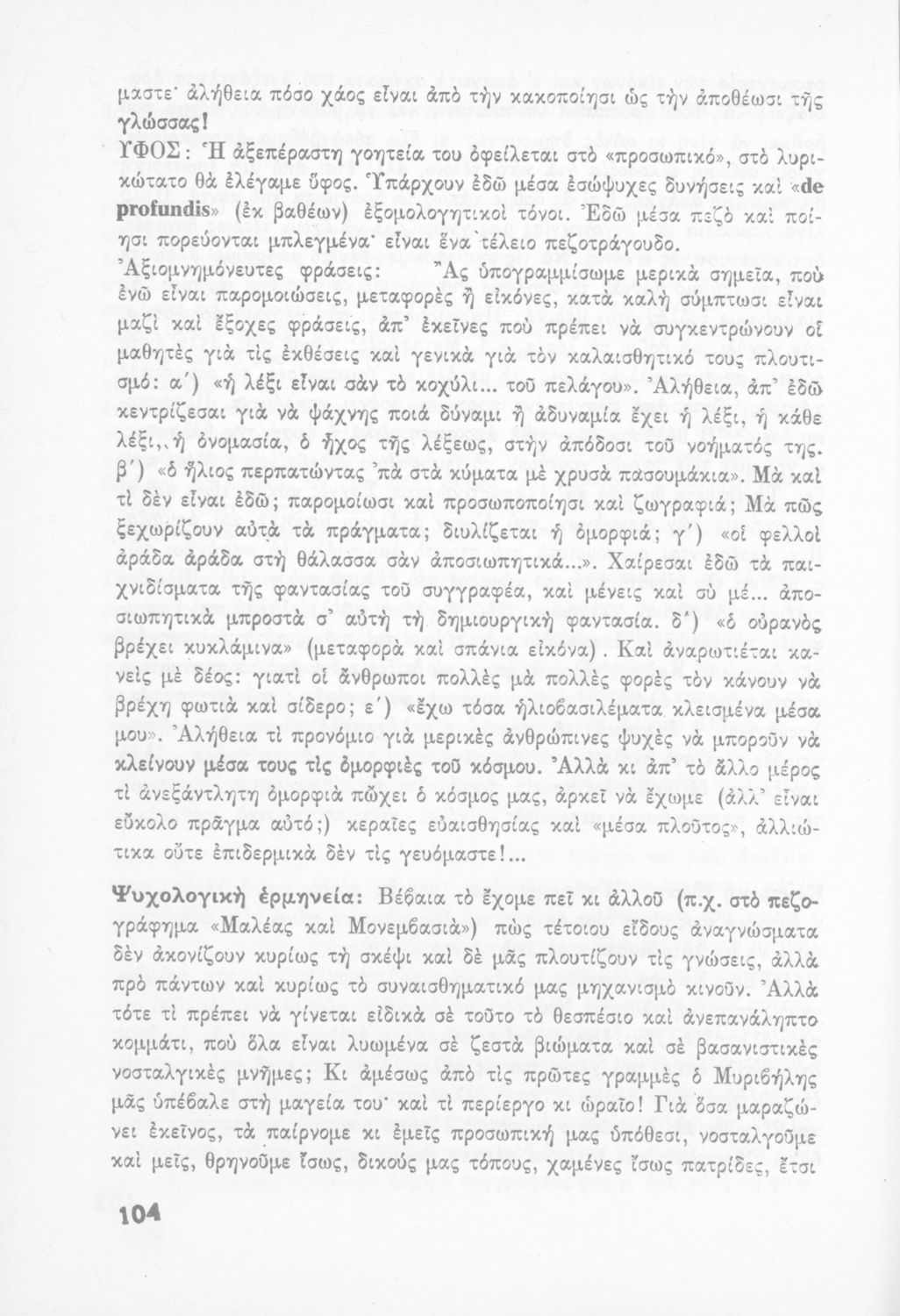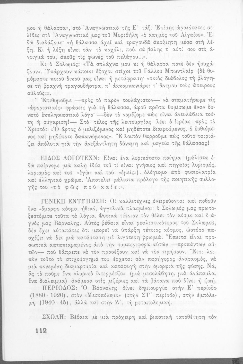 Σχολικό εγχειρίδιο Νέων Ελληνικών Δ΄ Γυμνασίου και Β΄ Αστικού Σχολείου που περιέχει πεζά και ποιήματα Ελλήνων συγγραφέων εμπνευσμένα από τη θρησκευτική και κοινωνική ζωή, την ελληνική μυθολογία, την αρχαία και