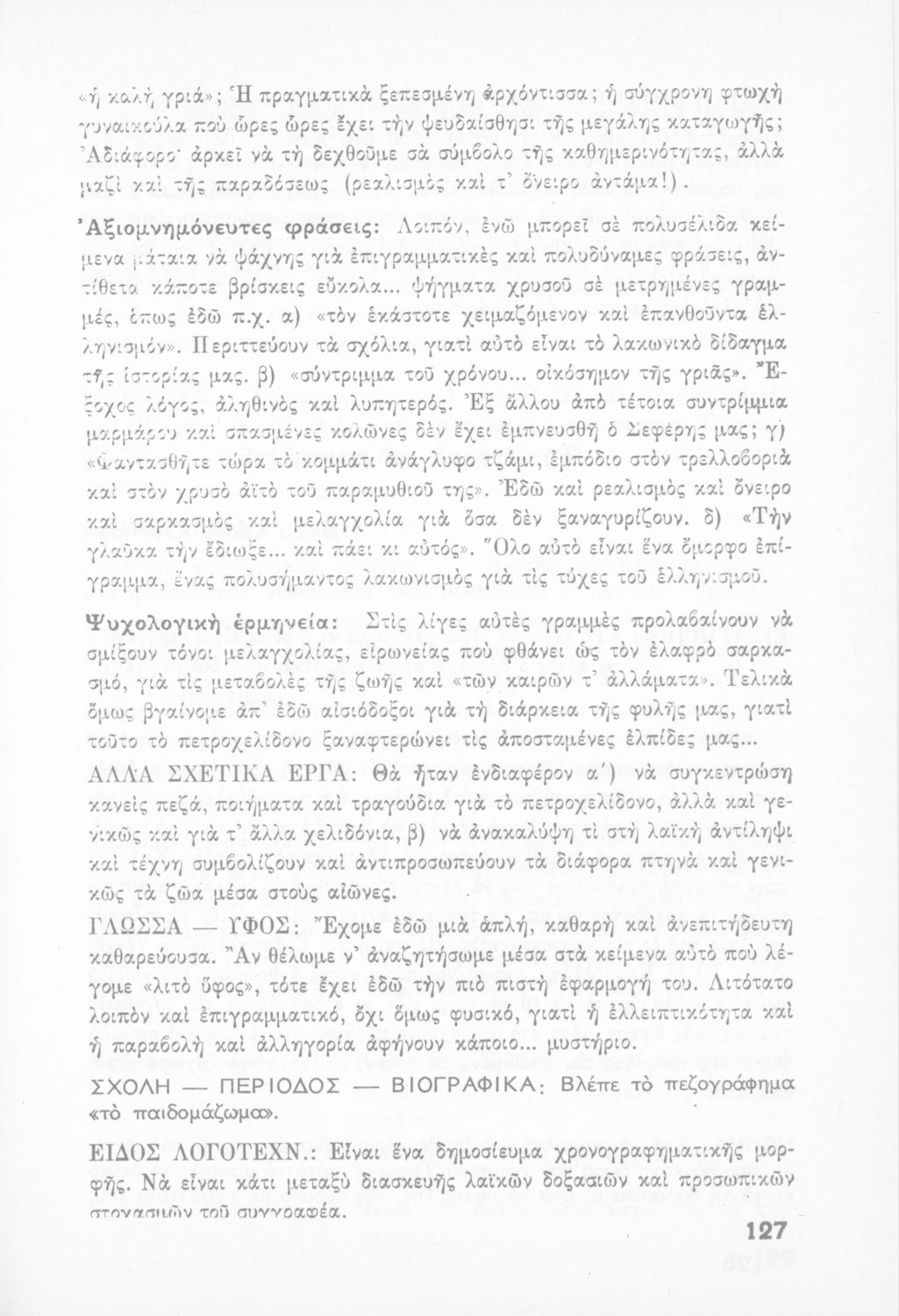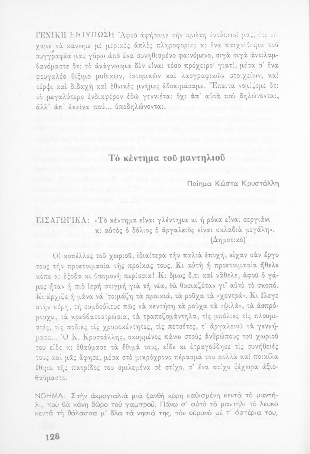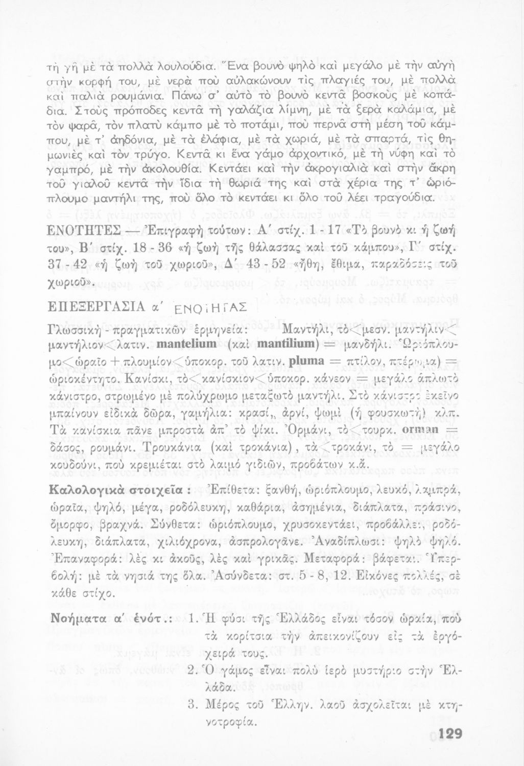 Σχολικό εγχειρίδιο Νέων Ελληνικών Δ΄ Γυμνασίου και Β΄ Αστικού Σχολείου που περιέχει πεζά και ποιήματα Ελλήνων συγγραφέων εμπνευσμένα από τη θρησκευτική και κοινωνική ζωή, την ελληνική μυθολογία, την αρχαία και