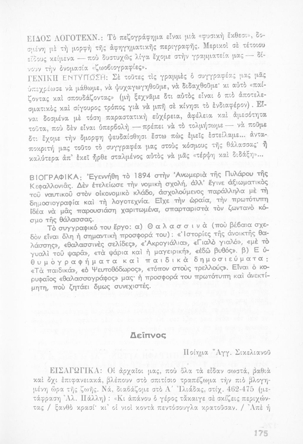Σχολικό εγχειρίδιο Νέων Ελληνικών Δ΄ Γυμνασίου και Β΄ Αστικού Σχολείου που περιέχει πεζά και ποιήματα Ελλήνων συγγραφέων εμπνευσμένα από τη θρησκευτική και κοινωνική ζωή, την ελληνική μυθολογία, την αρχαία και