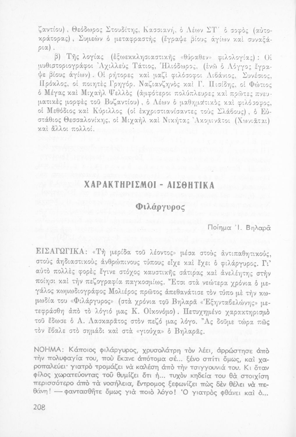 Σχολικό εγχειρίδιο Νέων Ελληνικών Δ΄ Γυμνασίου και Β΄ Αστικού Σχολείου που περιέχει πεζά και ποιήματα Ελλήνων συγγραφέων εμπνευσμένα από τη θρησκευτική και κοινωνική ζωή, την ελληνική μυθολογία, την αρχαία και