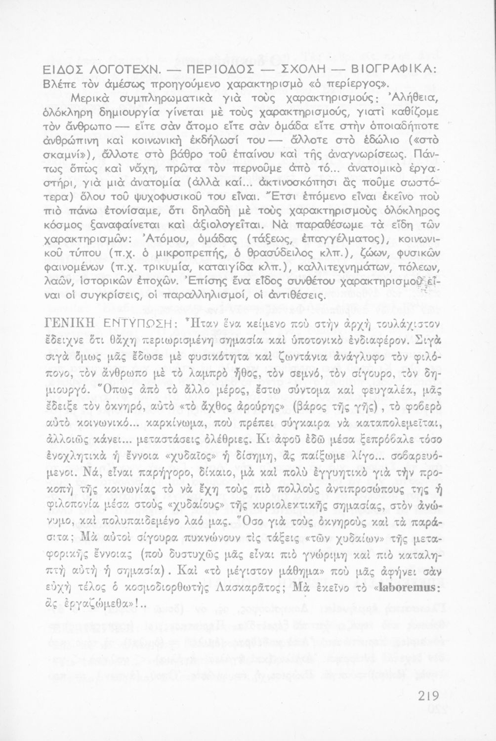 Τάξη:  Γ' Γυμνασίου / Δ' Γυμνασίου/ Β' Διδασκαλείου / Γ' Διδασκαλείου