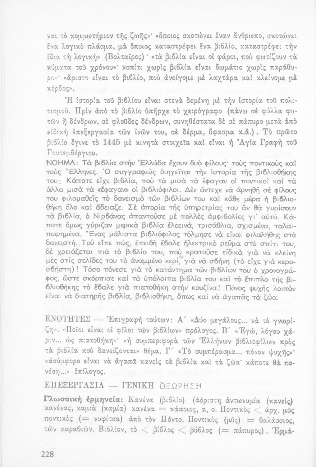 Σχολικό εγχειρίδιο Νέων Ελληνικών Δ΄ Γυμνασίου και Β΄ Αστικού Σχολείου που περιέχει πεζά και ποιήματα Ελλήνων συγγραφέων εμπνευσμένα από τη θρησκευτική και κοινωνική ζωή, την ελληνική μυθολογία, την αρχαία και