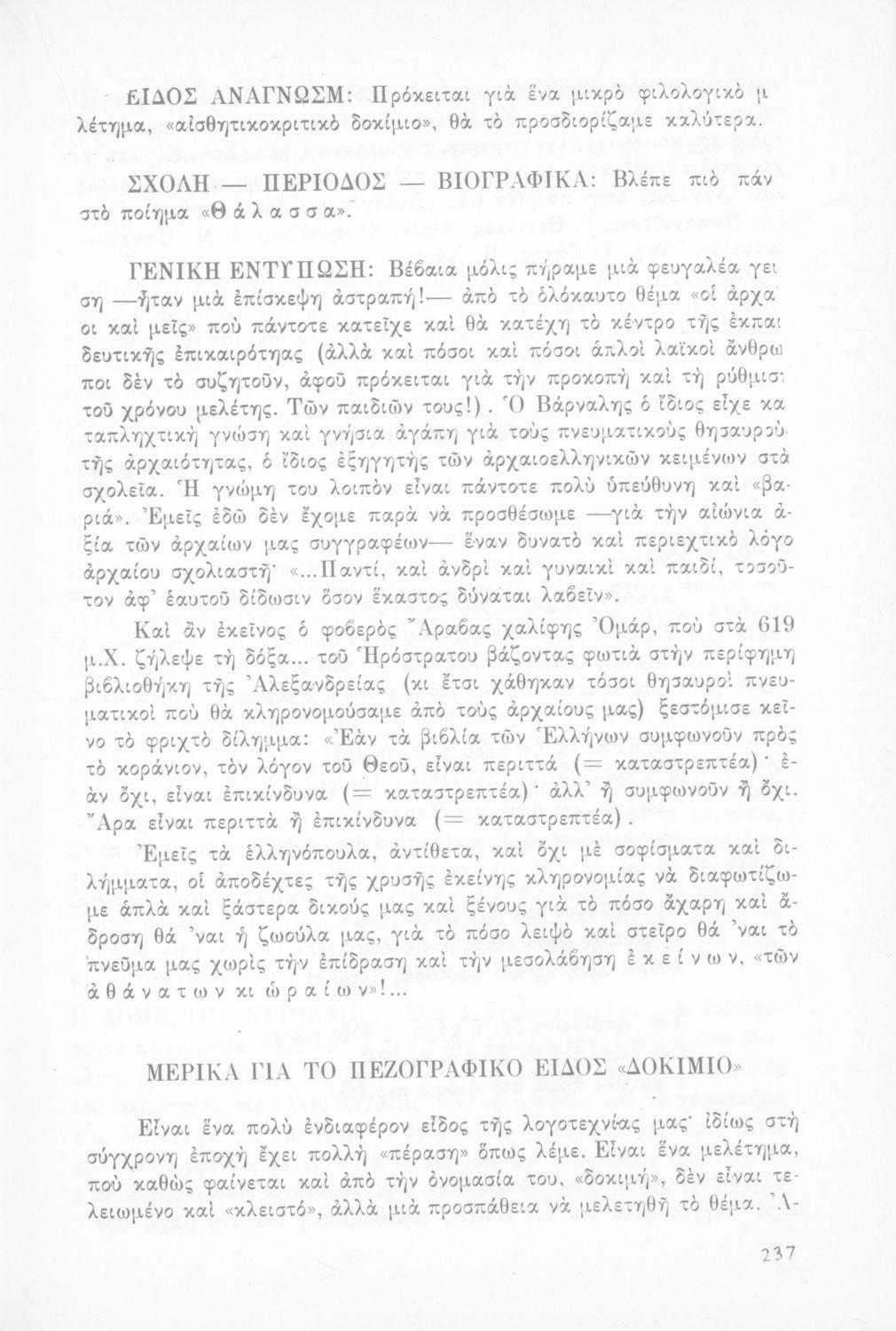 Τάξη:  Γ' Γυμνασίου / Δ' Γυμνασίου/ Β' Διδασκαλείου / Γ' Διδασκαλείου