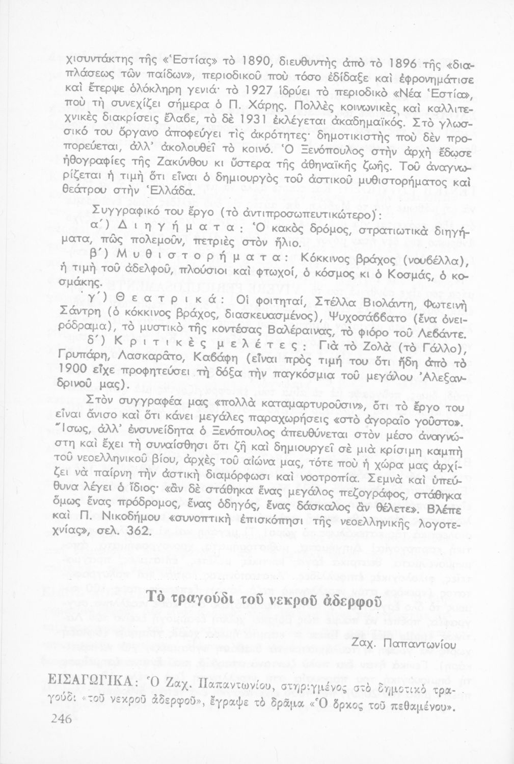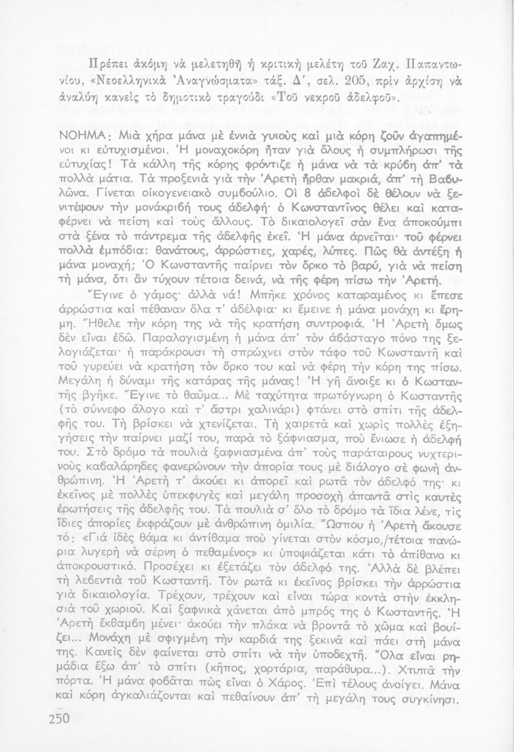 Σχολικό εγχειρίδιο Νέων Ελληνικών Δ΄ Γυμνασίου και Β΄ Αστικού Σχολείου που περιέχει πεζά και ποιήματα Ελλήνων συγγραφέων εμπνευσμένα από τη θρησκευτική και κοινωνική ζωή, την ελληνική μυθολογία, την αρχαία και