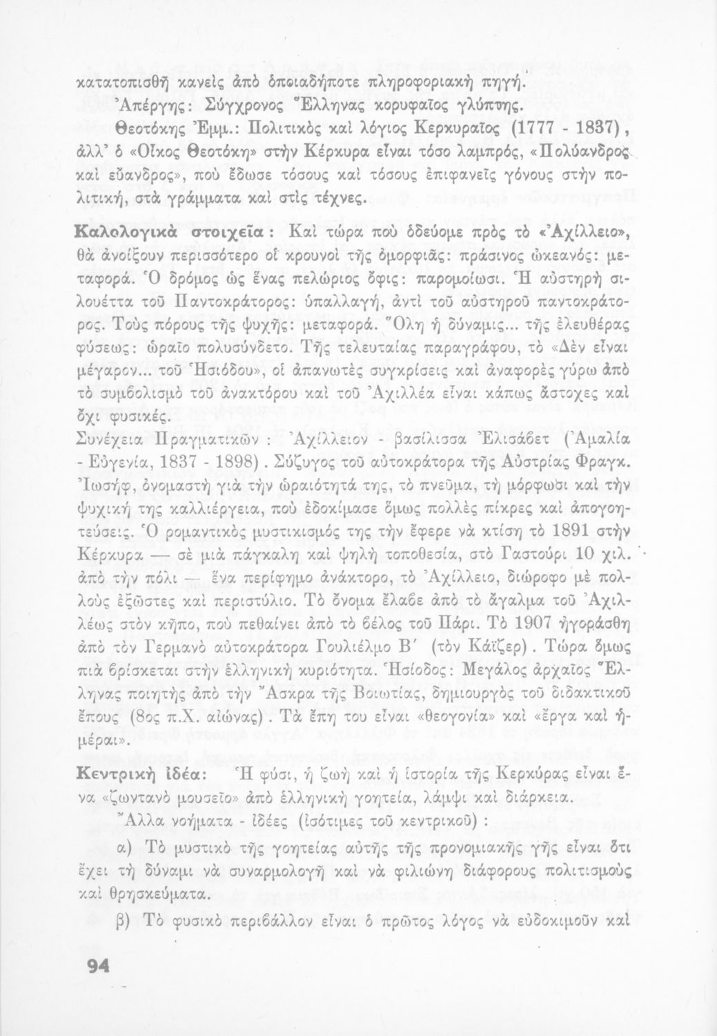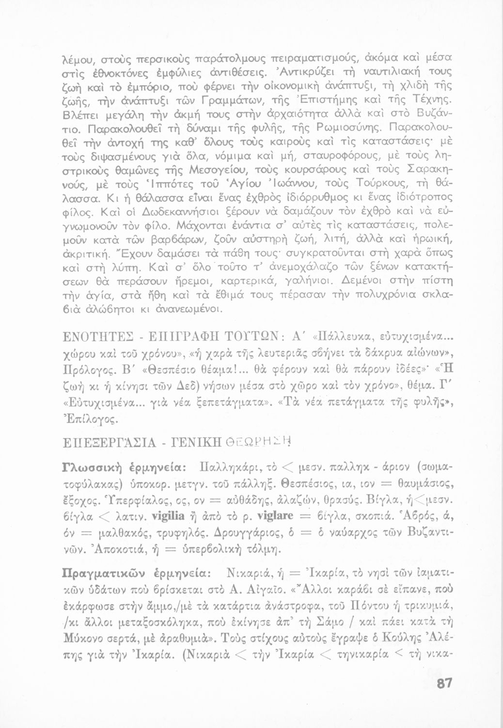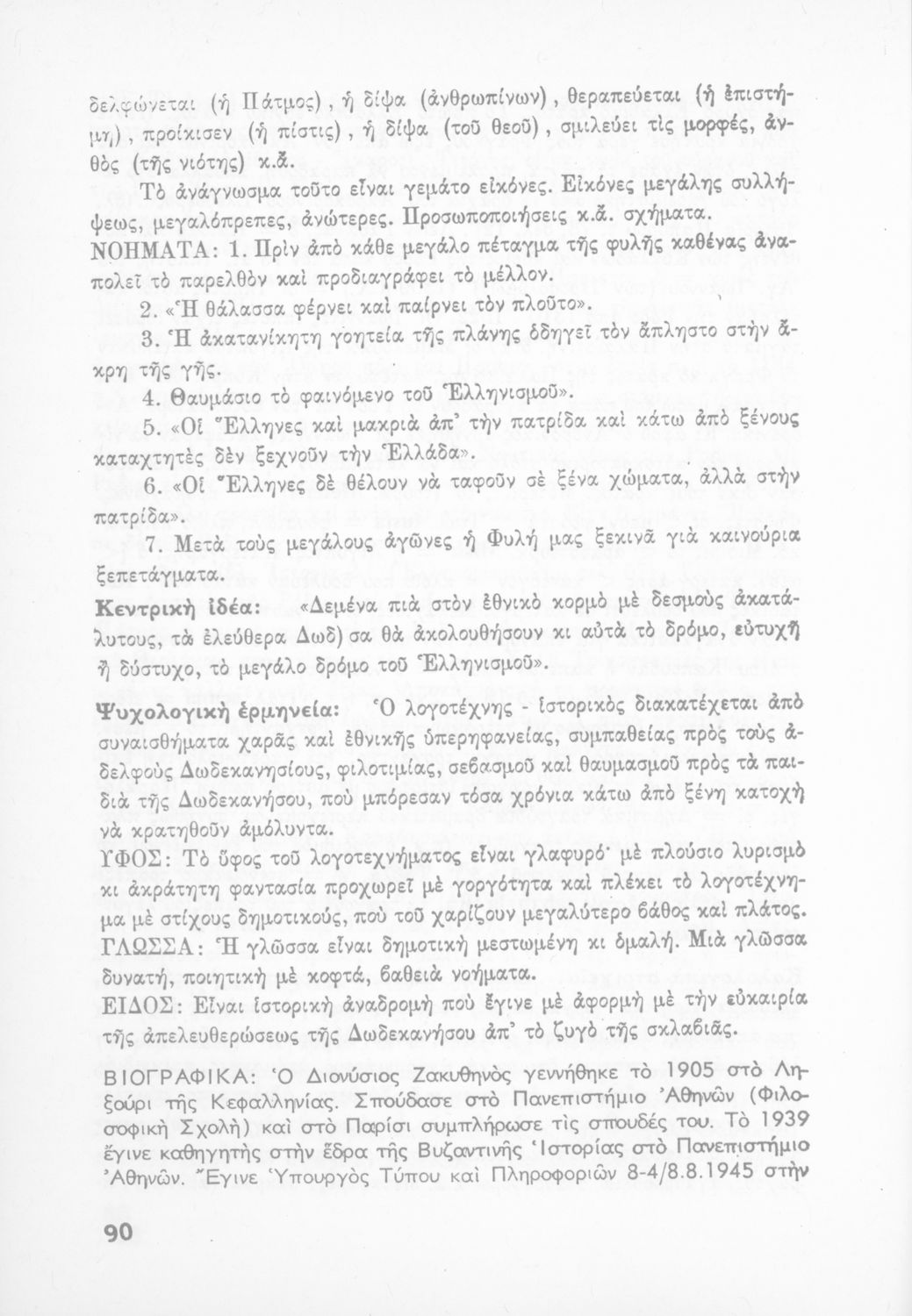 Σχολικό εγχειρίδιο Νέων Ελληνικών Δ΄ Γυμνασίου και Β΄ Αστικού Σχολείου που περιέχει πεζά και ποιήματα Ελλήνων συγγραφέων εμπνευσμένα από τη θρησκευτική και κοινωνική ζωή, την ελληνική μυθολογία, την αρχαία και