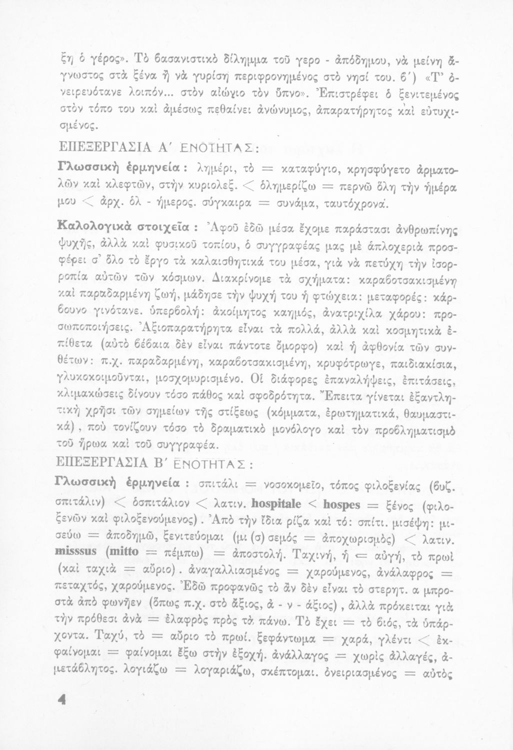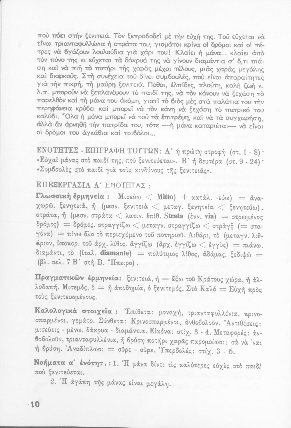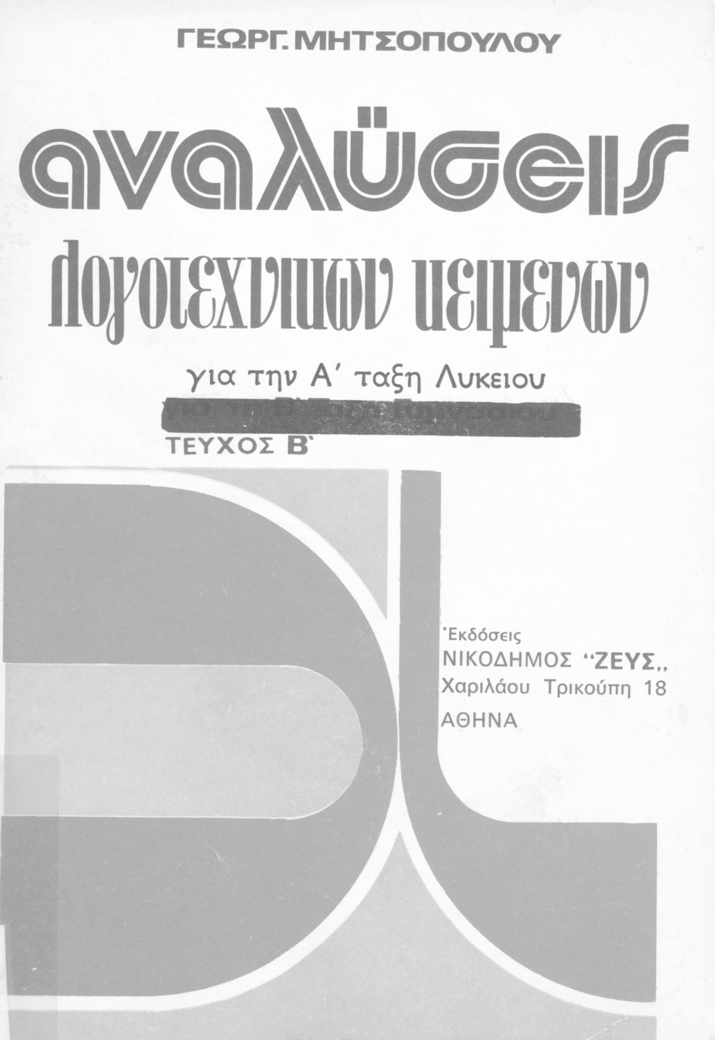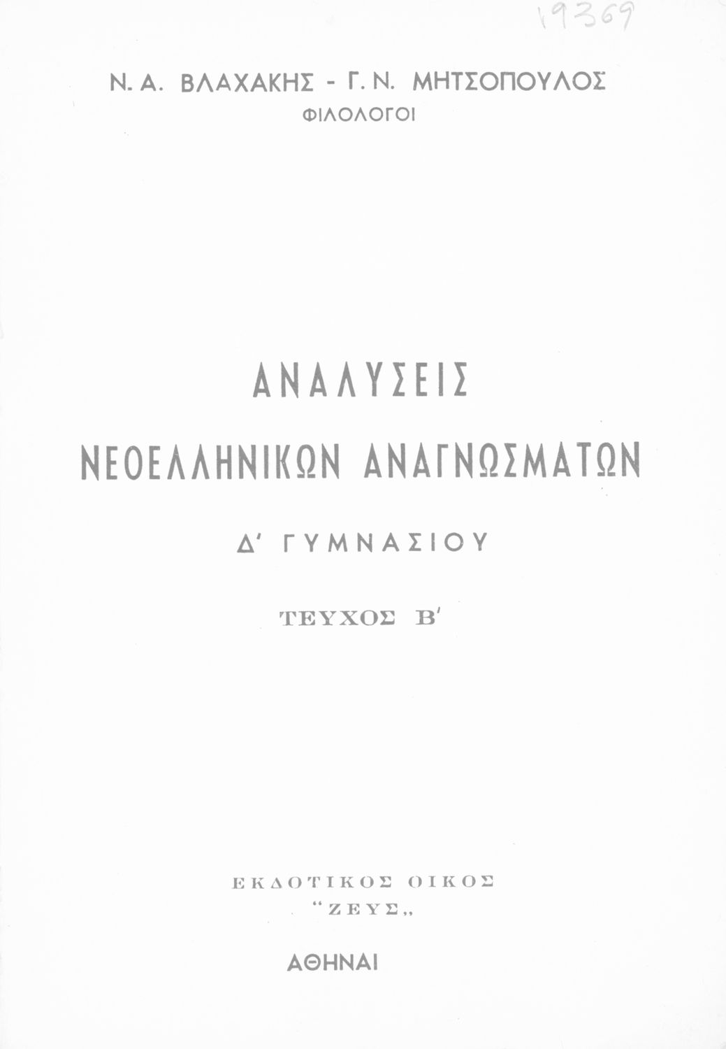 Σχολικό εγχειρίδιο Νέων Ελληνικών Δ΄ Γυμνασίου και Β΄ Αστικού Σχολείου που περιέχει πεζά και ποιήματα Ελλήνων συγγραφέων εμπνευσμένα από τη θρησκευτική και κοινωνική ζωή, την ελληνική μυθολογία, την αρχαία και