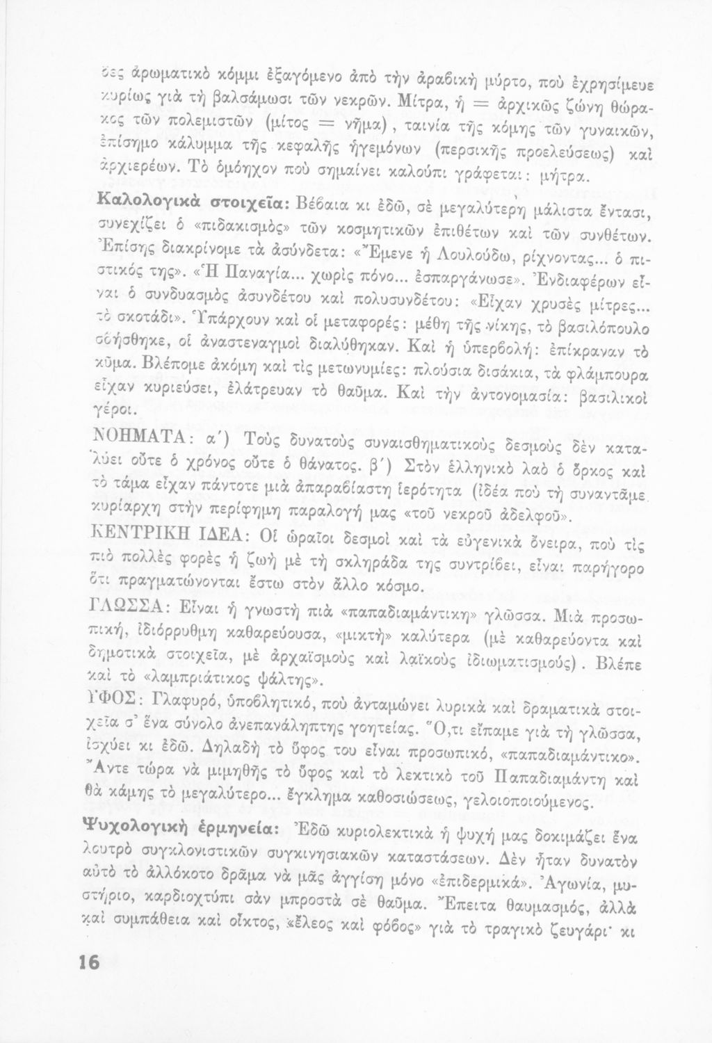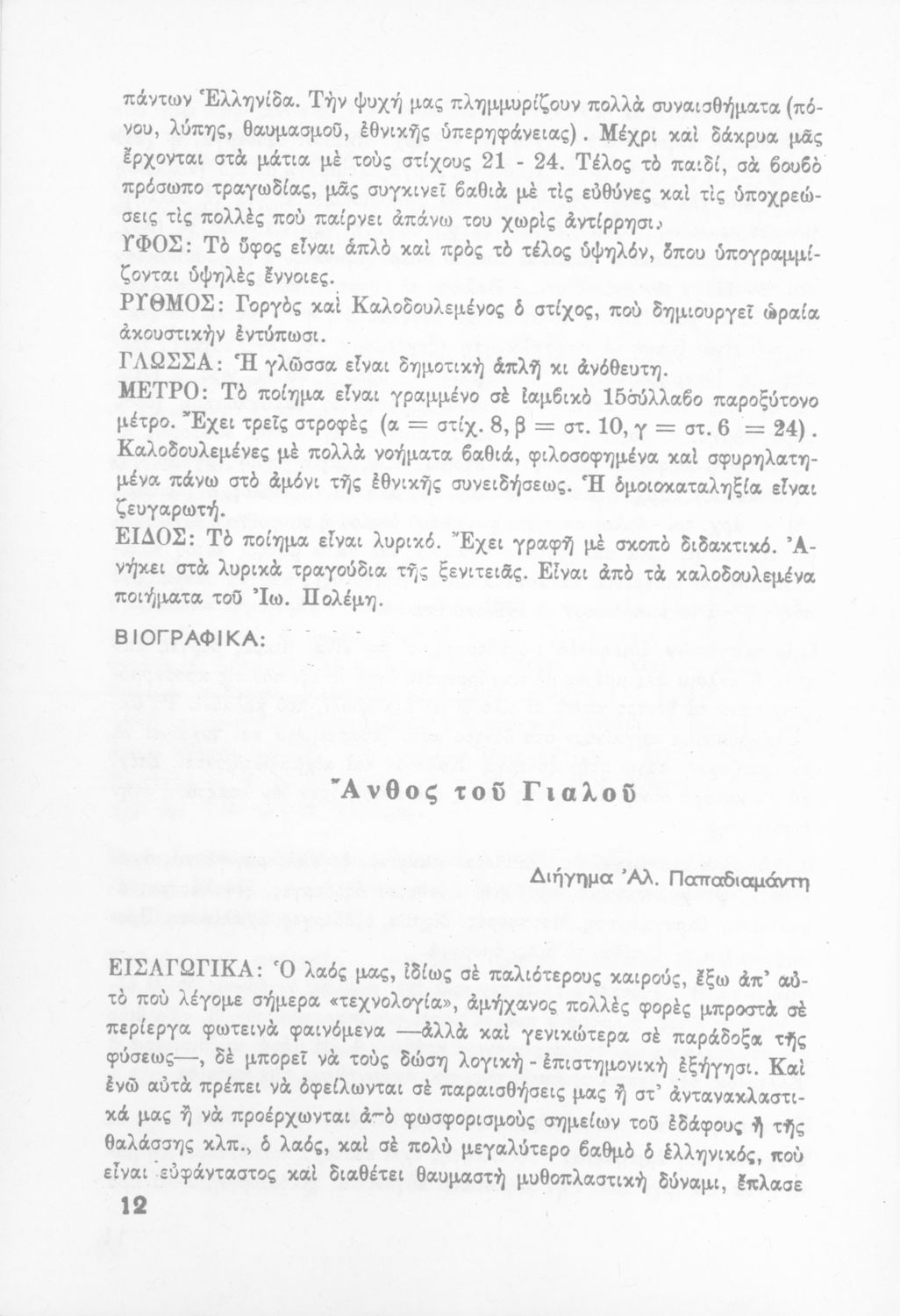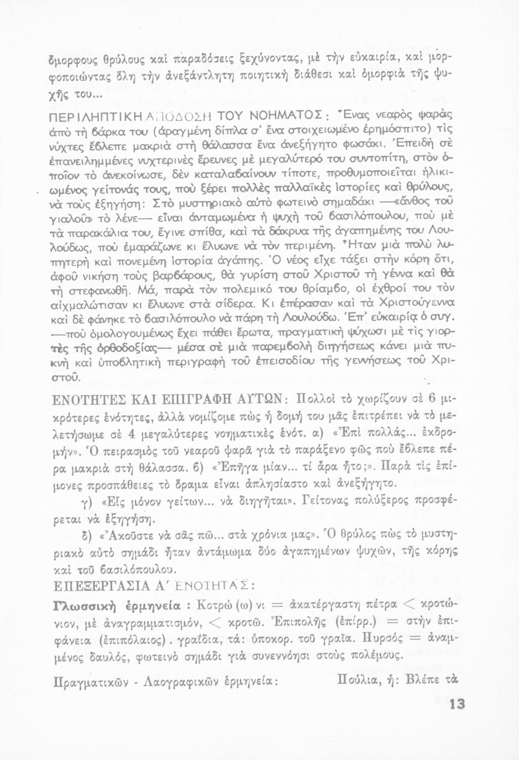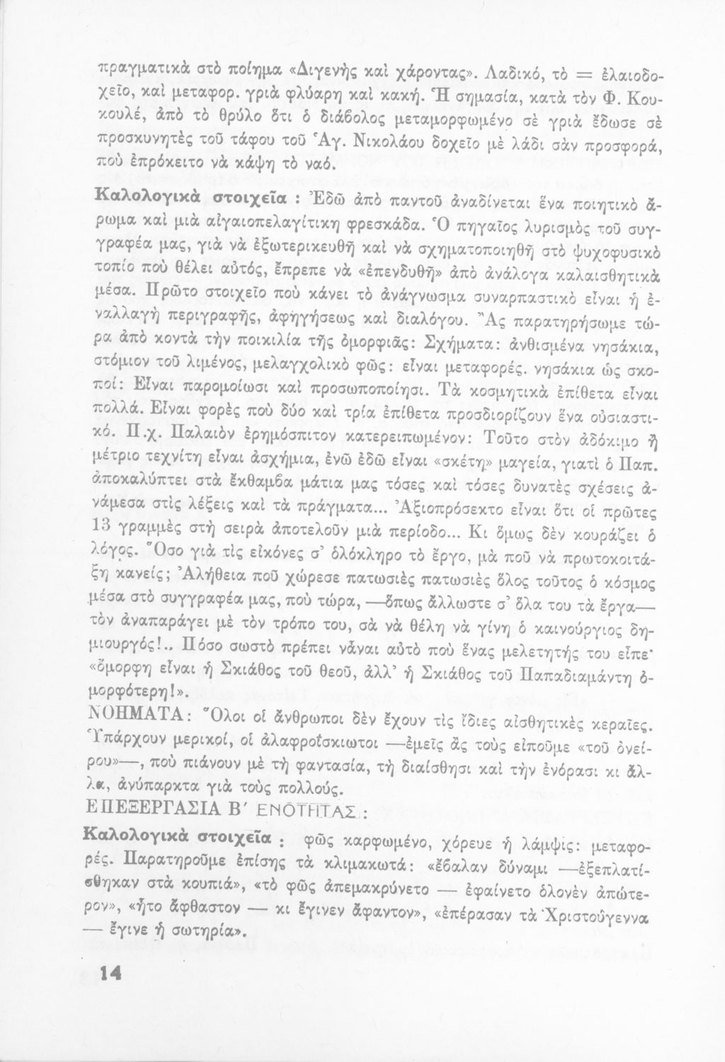 Σχολικό εγχειρίδιο Νέων Ελληνικών Δ΄ Γυμνασίου και Β΄ Αστικού Σχολείου που περιέχει πεζά και ποιήματα Ελλήνων συγγραφέων εμπνευσμένα από τη θρησκευτική και κοινωνική ζωή, την ελληνική μυθολογία, την αρχαία και