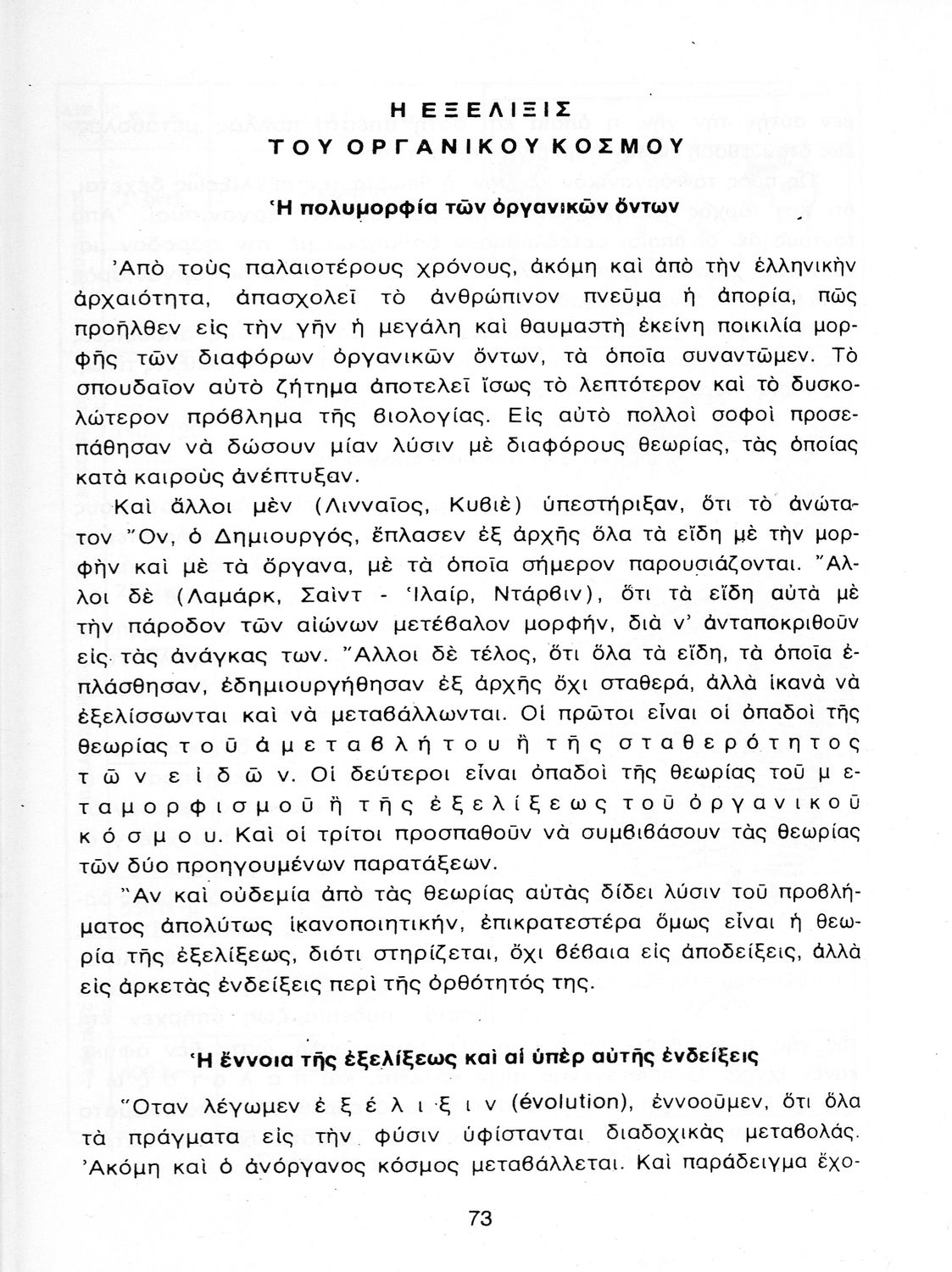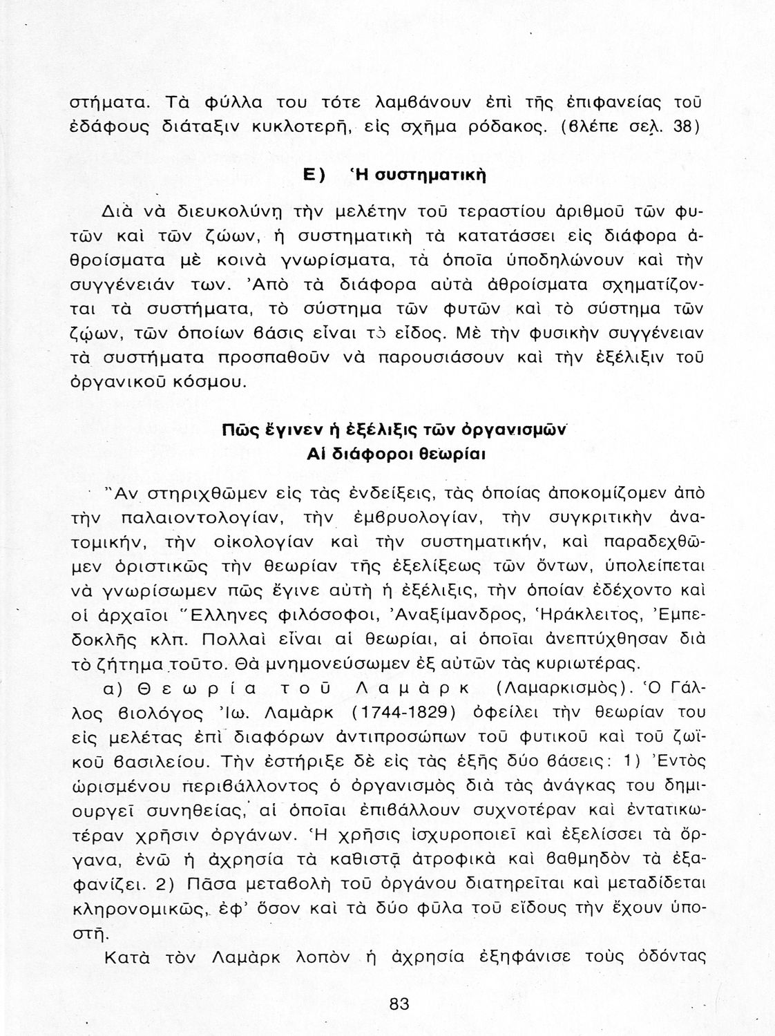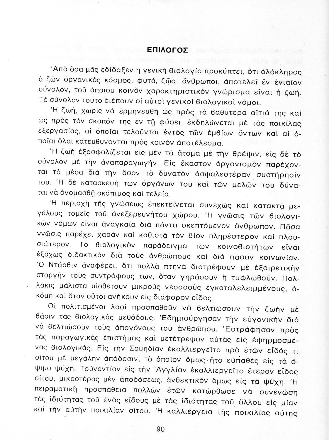 Σχολικό εγχειρίδιο Βιολογίας Δ΄ Γυμνασίου που εστιάζει στις συνθήκες γέννησης, μεταβολής και θανάτου των έμβιων οργανισμών. Ο συγγραφέας ήταν καθηγητής της γενικής Βιολογίας στο Πανεπιστήμιο Αθηνών.