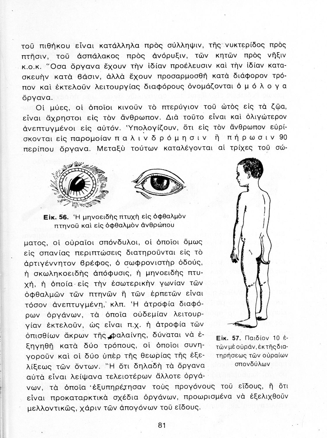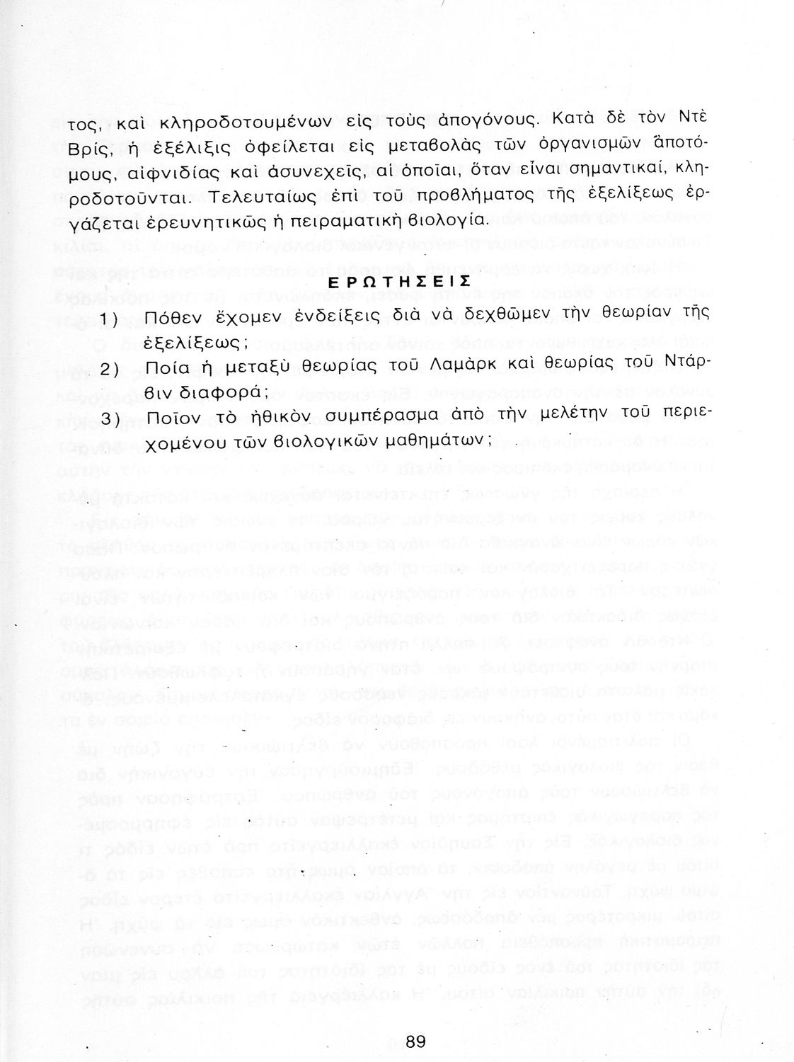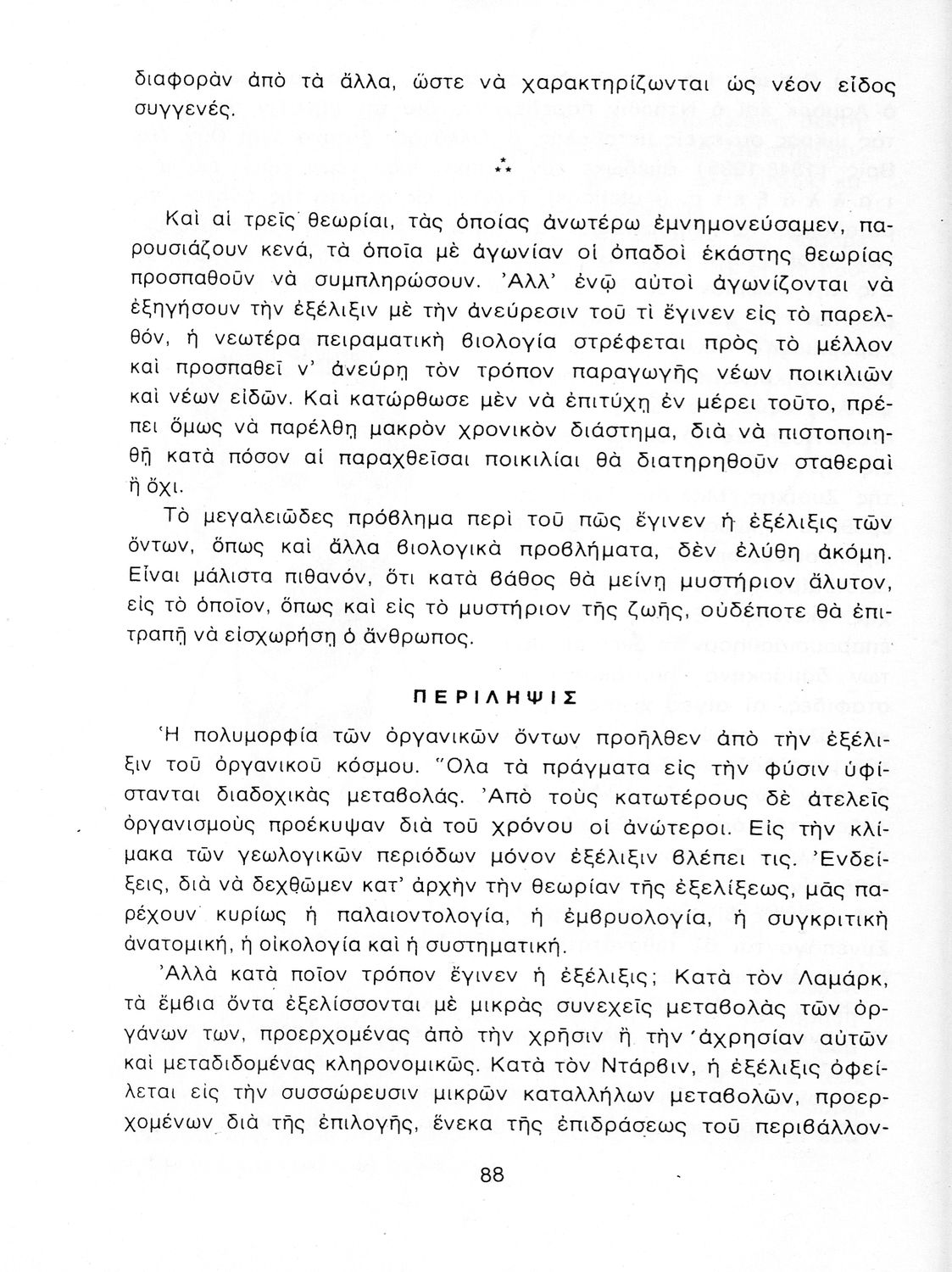 Σχολικό εγχειρίδιο Βιολογίας Δ΄ Γυμνασίου που εστιάζει στις συνθήκες γέννησης, μεταβολής και θανάτου των έμβιων οργανισμών. Ο συγγραφέας ήταν καθηγητής της γενικής Βιολογίας στο Πανεπιστήμιο Αθηνών.