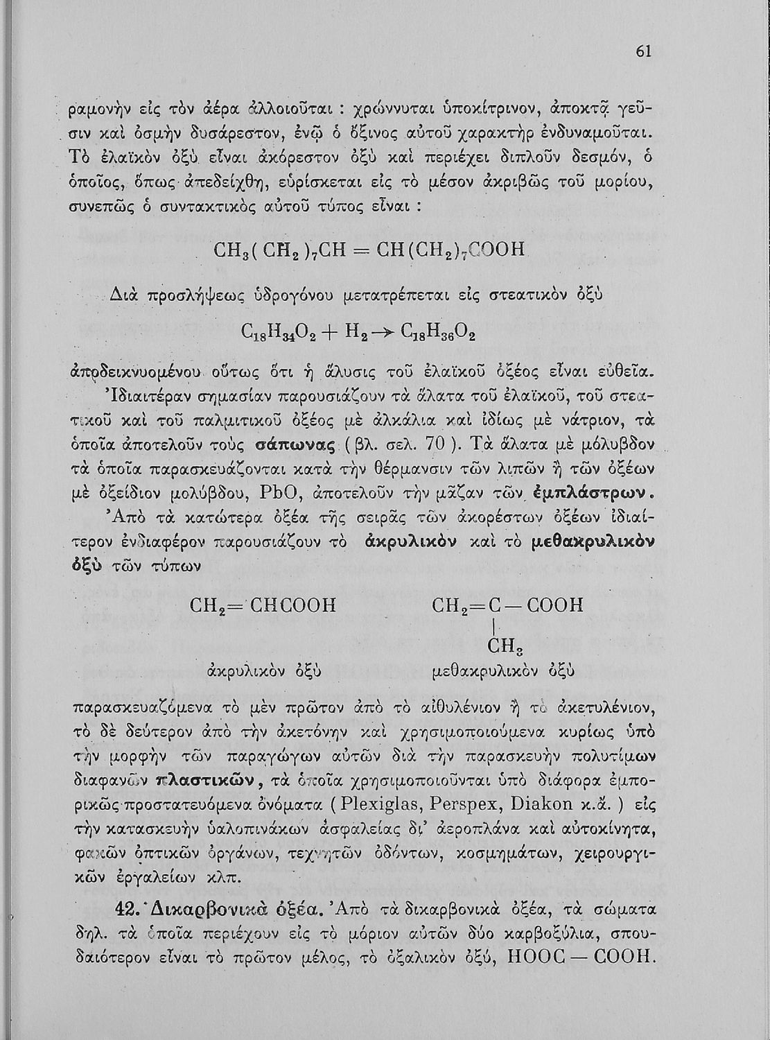 Σχολικό εγχειρίδιο Χημείας που προσδιορίζει τη σύσταση οργανικών ουσιών και τη μοριακή σύσταση τους. Περιγράφονται αναλυτικά οι οργανικές ενώσεις, οι ιδιότητες και η παρασκευή των οξέων-ελαίων-λιπών, η σύσταση