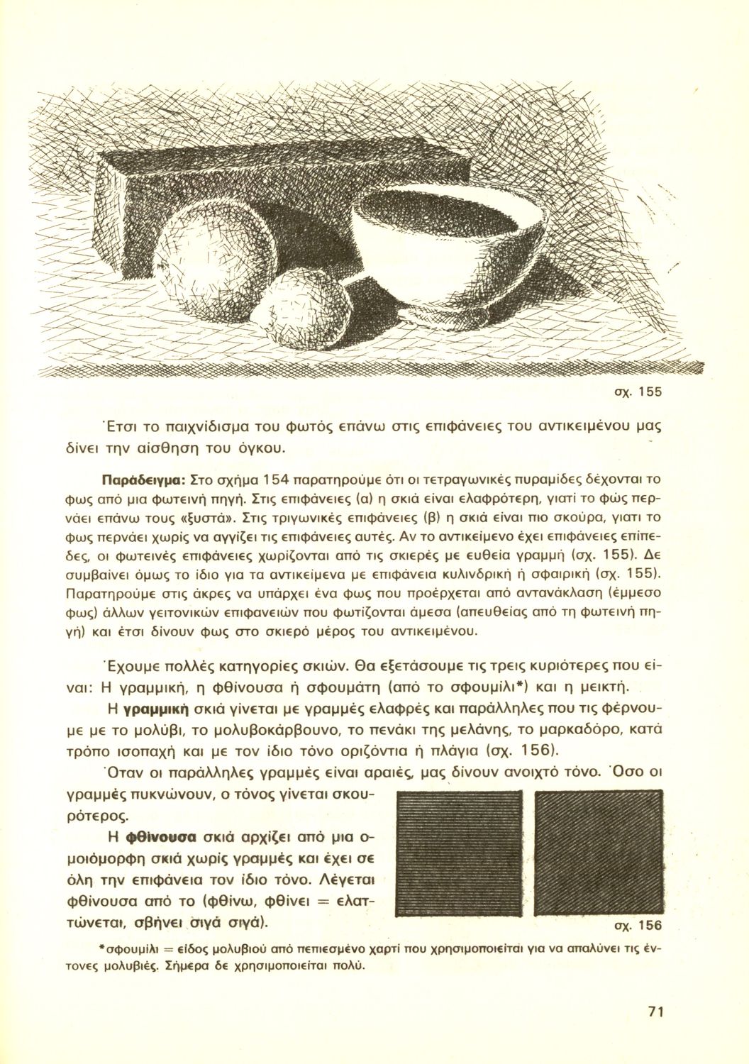 Παρουσίαση περιεχομένου: Σχολικό εγχειρίδιο εικαστικών Α΄ Λυκείου που εστιάζει στο σχέδιο και τη ζωγραφική.