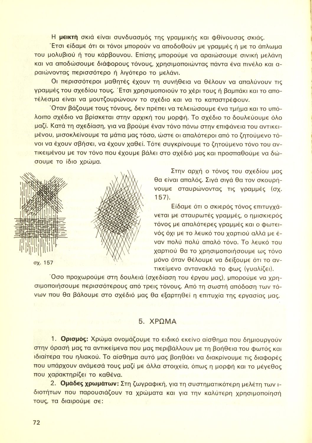 Σχολικό εγχειρίδιο εικαστικών Α΄ Λυκείου που εστιάζει στο σχέδιο και τη ζωγραφική.