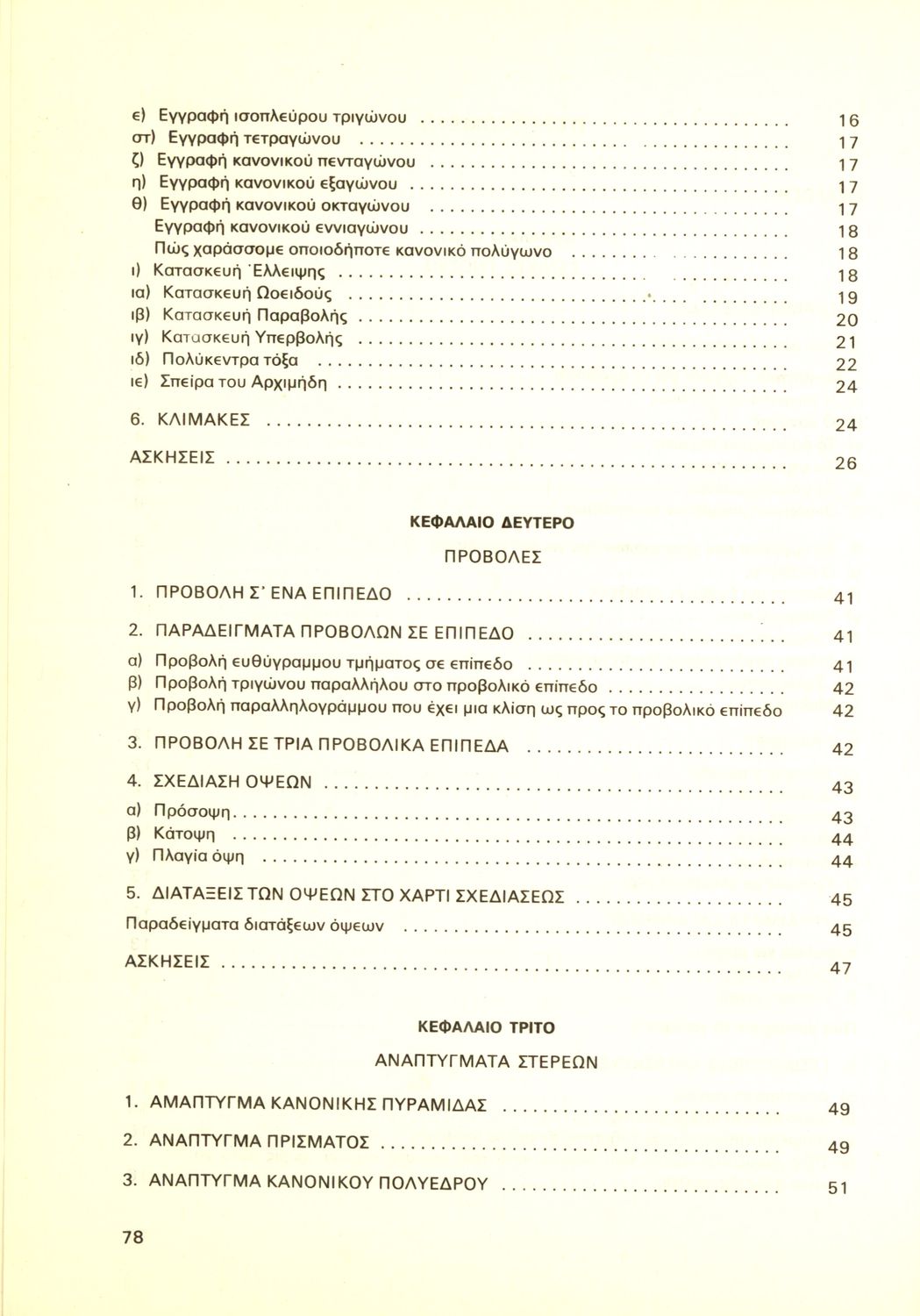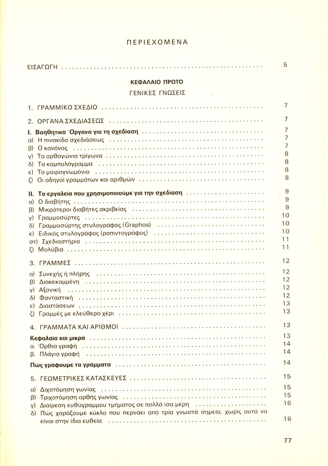 Σχολικό εγχειρίδιο Γεωμετρίας Α΄ Λυκείου χωρισμένο σε θεωρήματα, λυμένες ασκήσεις, ασκήσεις και επαναλήψεις κεφαλαίου. Περιέχει ένα παράρτημα με επαναληπτικά μαθήματα και ένα με ευρετήριο όρων.