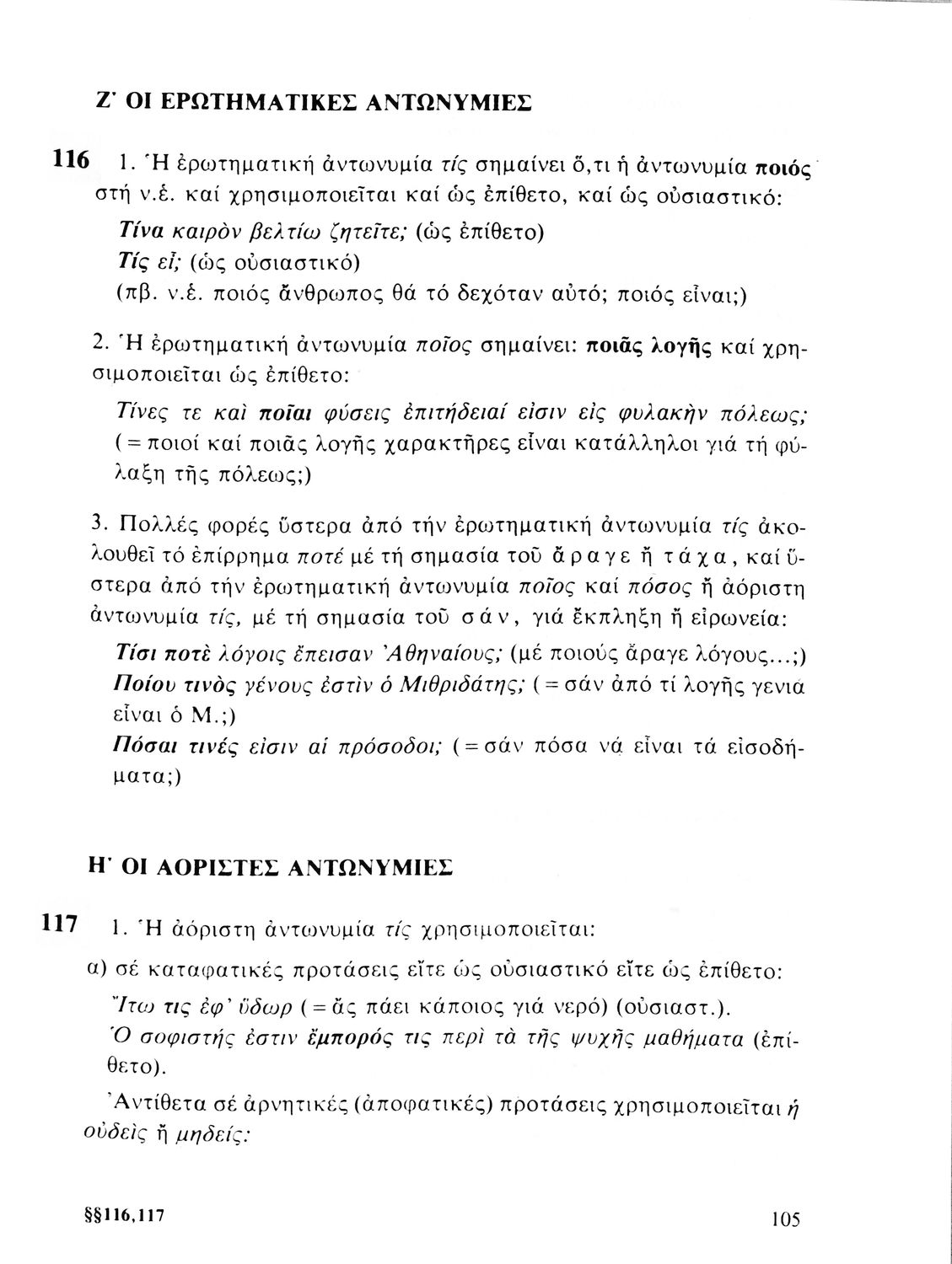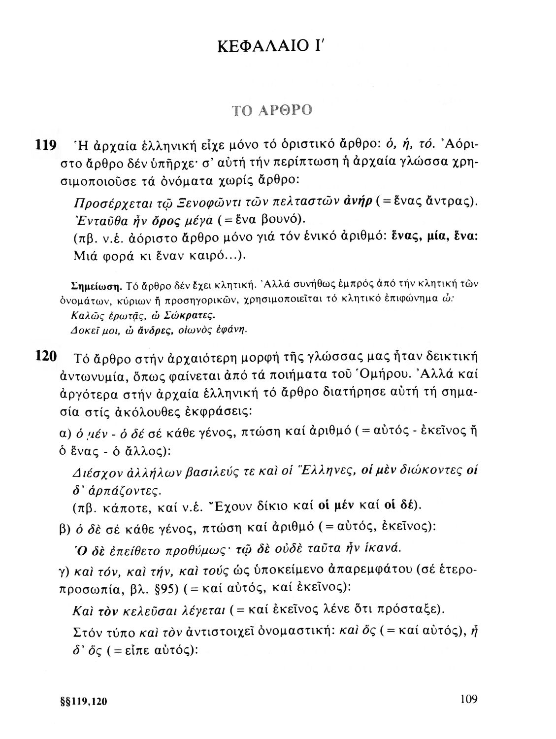 Σχολικό εγχειρίδιο Αρχαίων Ελληνικών Α', Β', και Γ' Γυμνασίου που περιέχει τους κανόνες γραμματικής και είναι χωρισμένο σε φθογγολογικό, τυπολογικό και ετυμολογικό μέρος. Περιέχει και κατάλογο ανωμάλων ρημάτων.