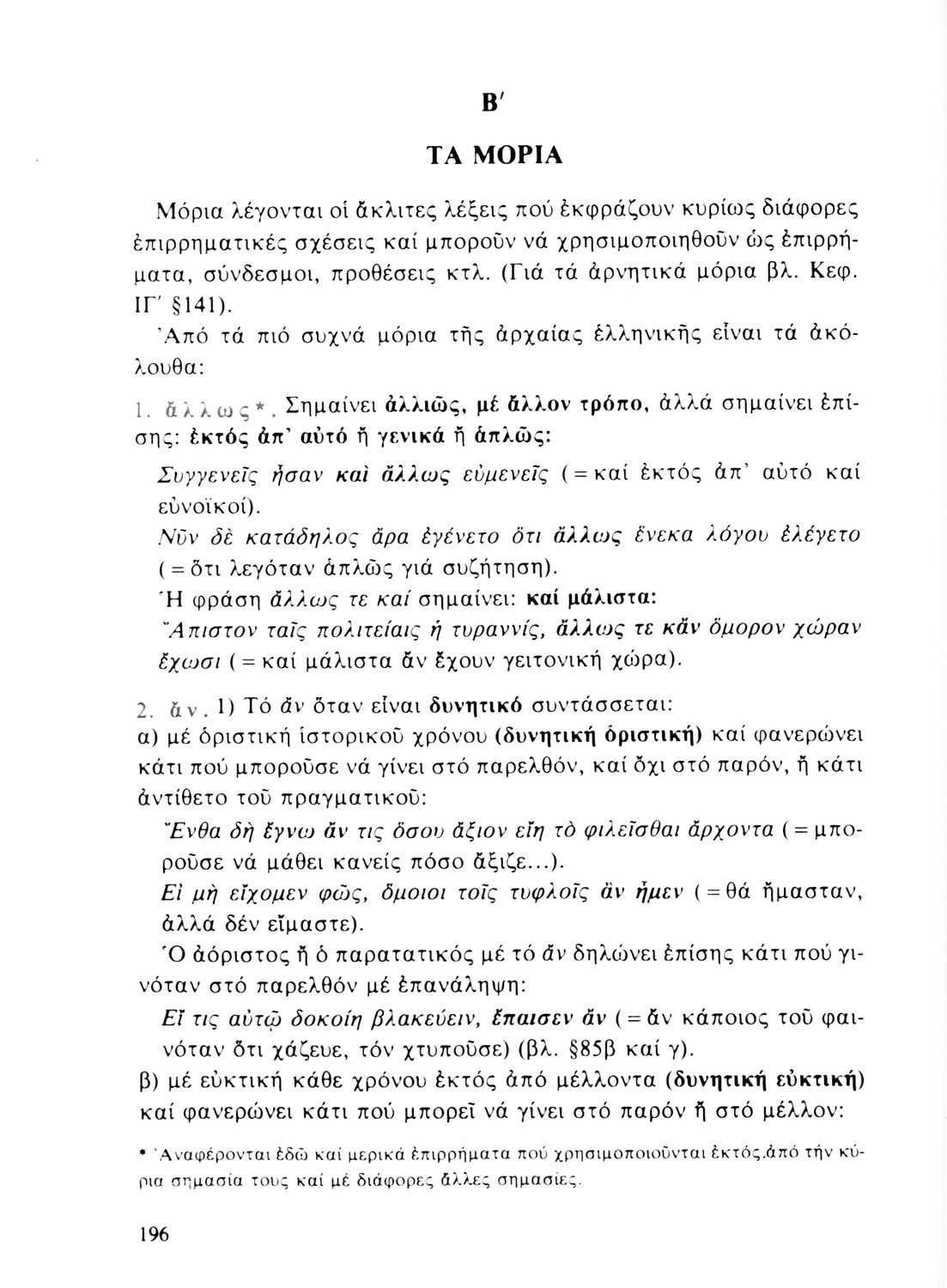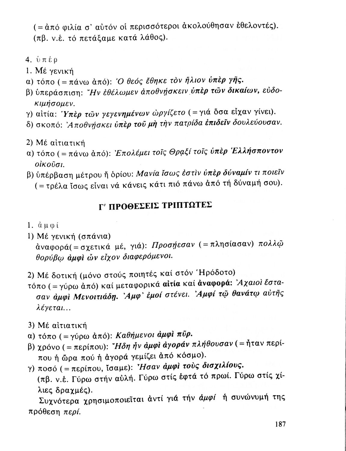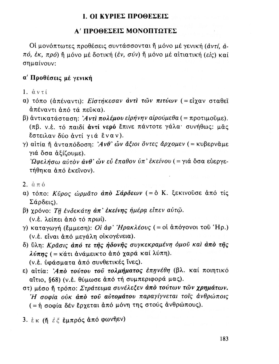 Σχολικό εγχειρίδιο Αρχαίων Ελληνικών Α', Β', και Γ' Γυμνασίου που περιέχει τους κανόνες γραμματικής και είναι χωρισμένο σε φθογγολογικό, τυπολογικό και ετυμολογικό μέρος. Περιέχει και κατάλογο ανωμάλων ρημάτων.